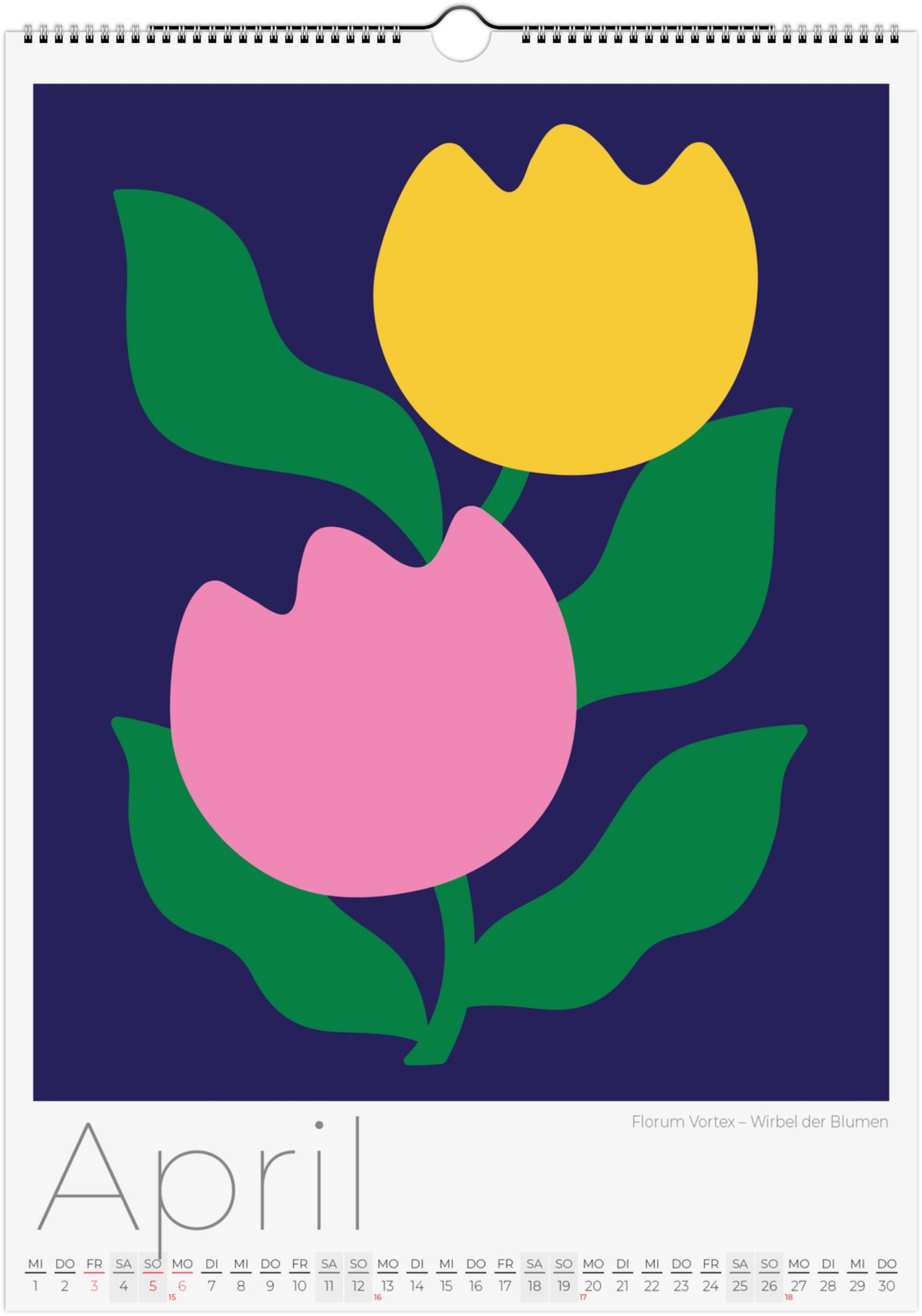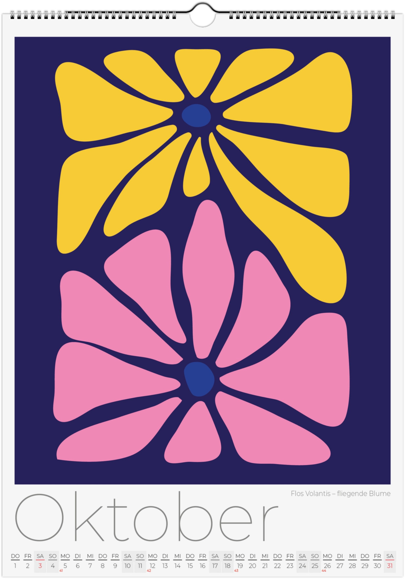 Der Abstrakte Flora Kalender 2026 zeigt 12 einzigartige Kunstwerke voller Blüten, Farben und Formen – modern, abstrakt und inspirierend. Jede Seite ist ein florales Kunstwerk, das Minimalismus und Natur auf neue Weise verbindet.