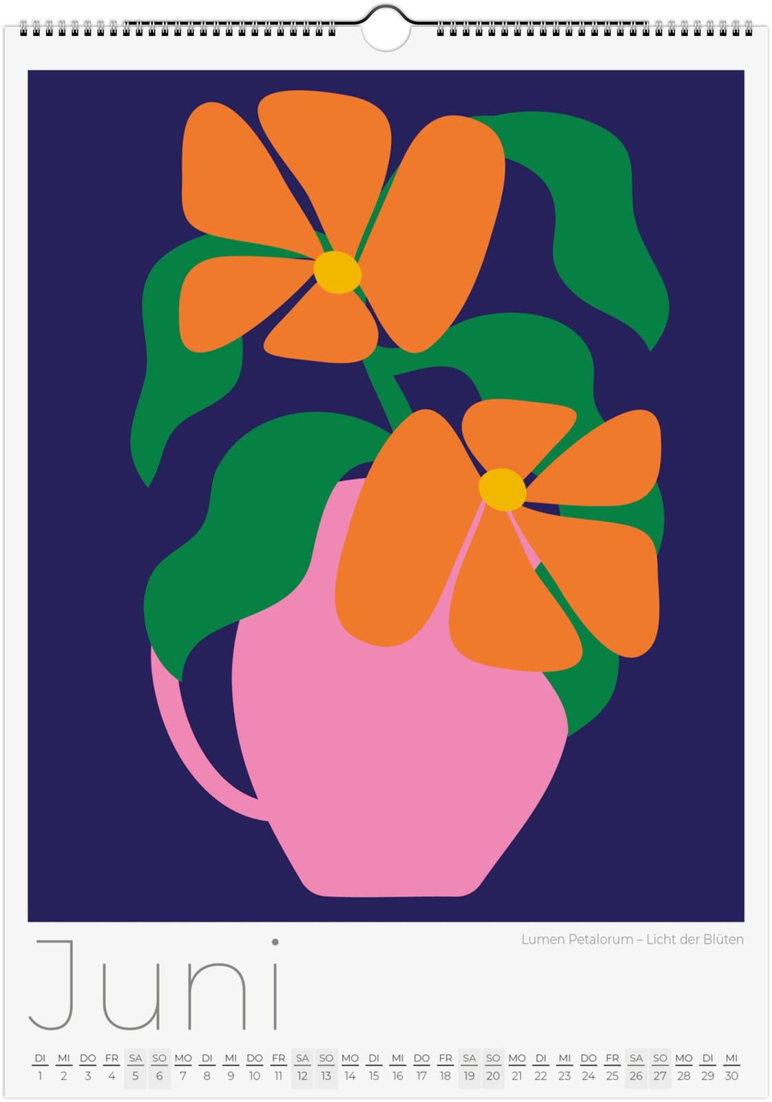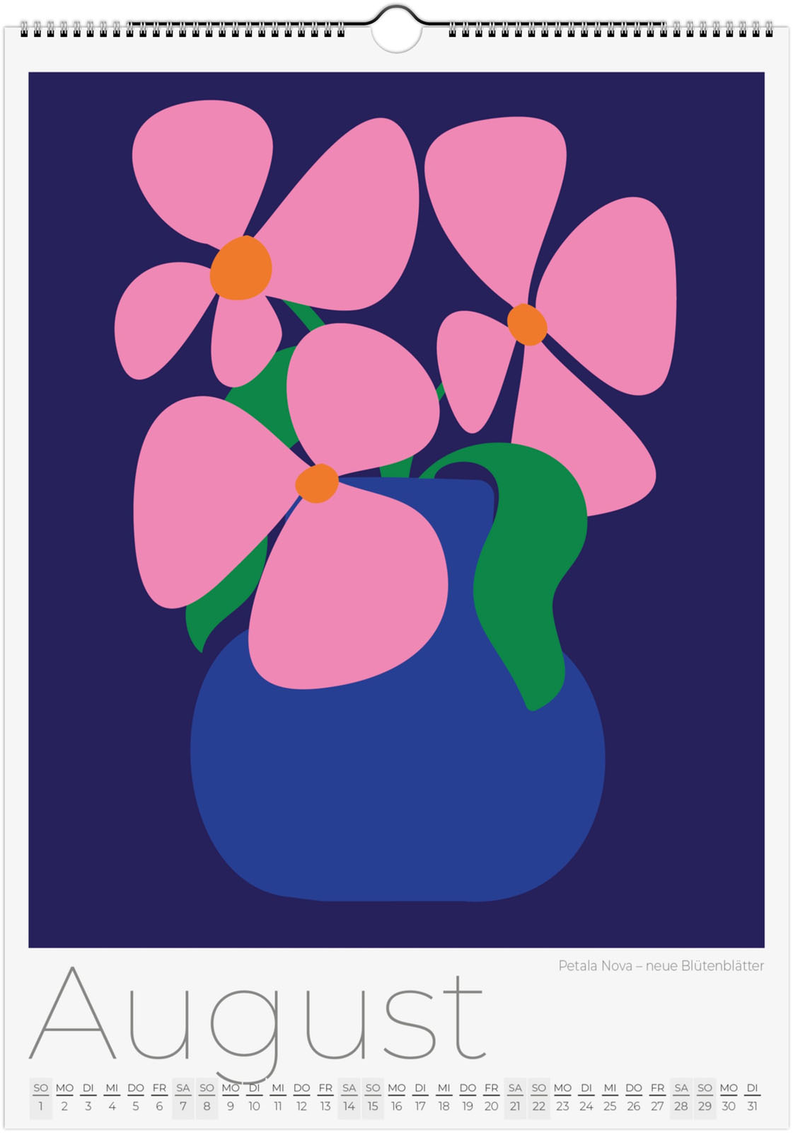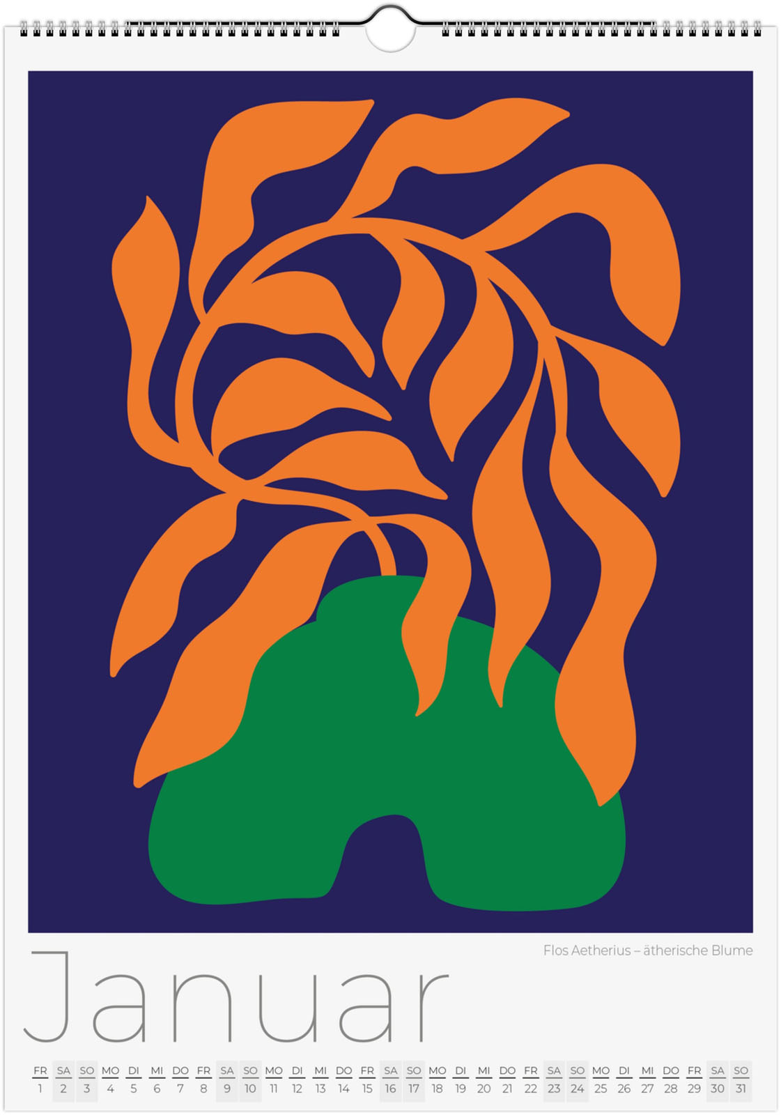 Der Blumenkalender 2027 'Abstrakte Flora' zeigt 12 moderne florale Illustrationen. Jede Seite ist ein florales Kunstwerk, das Minimalismus und Natur auf neue Weise verbindet.
