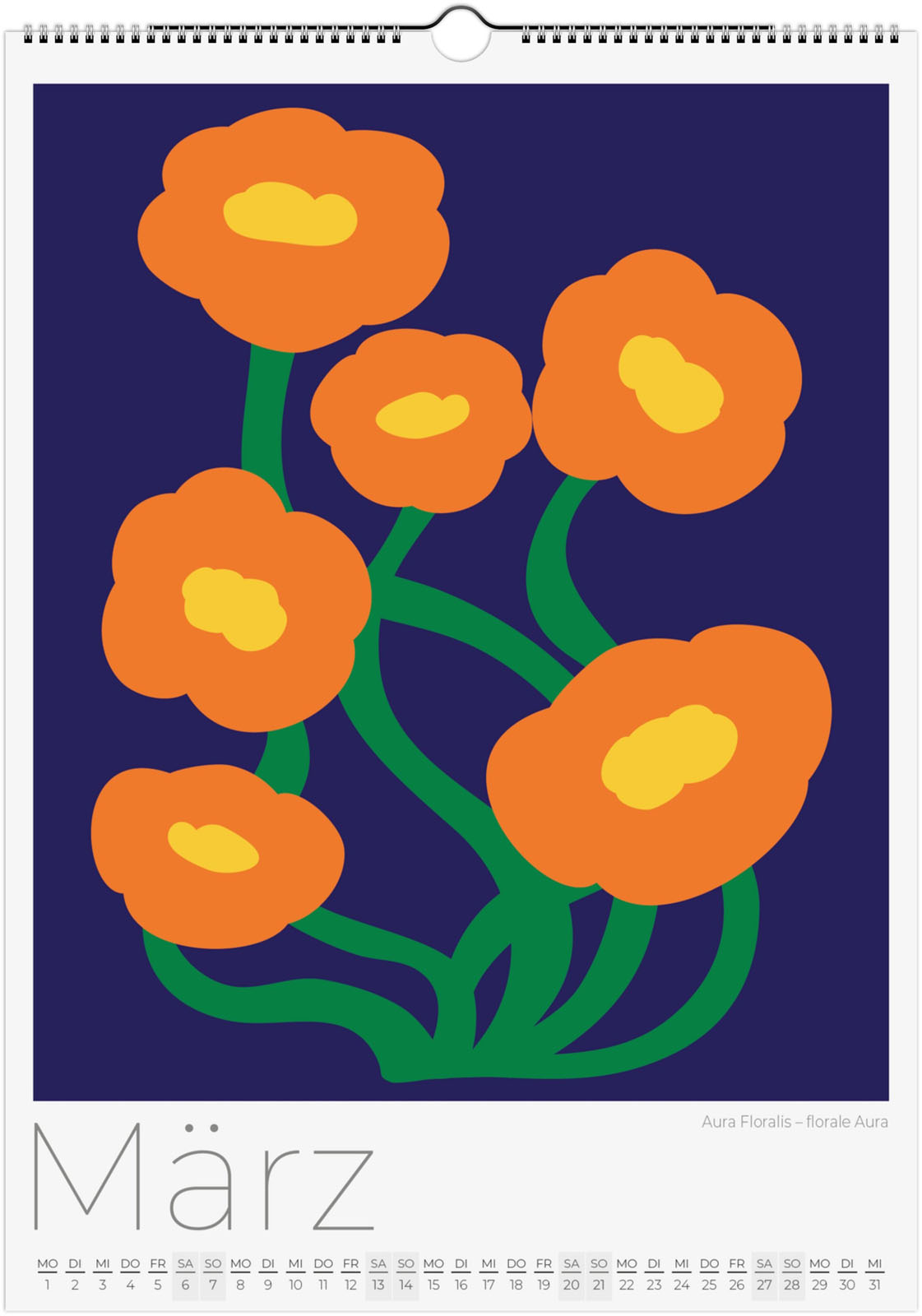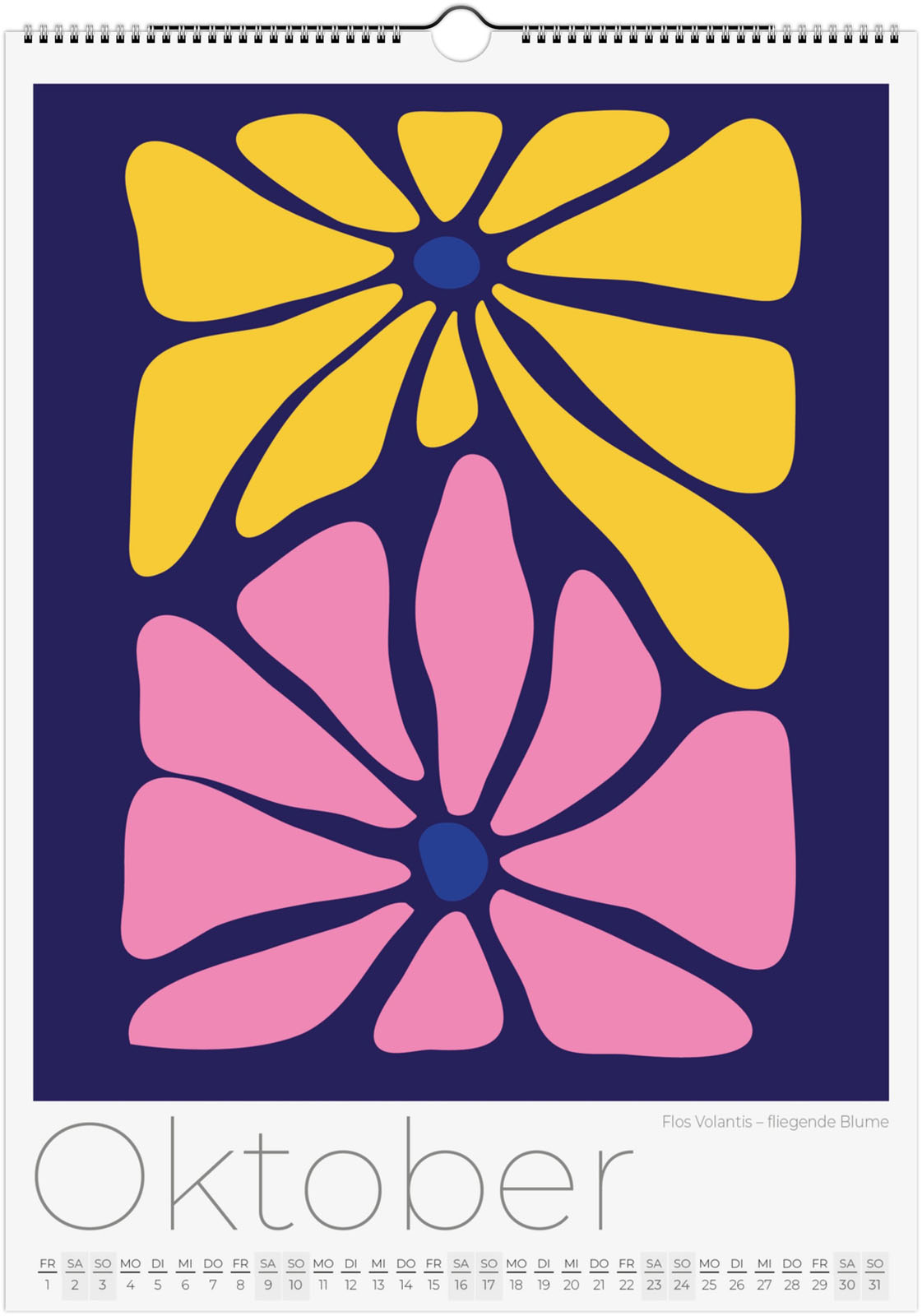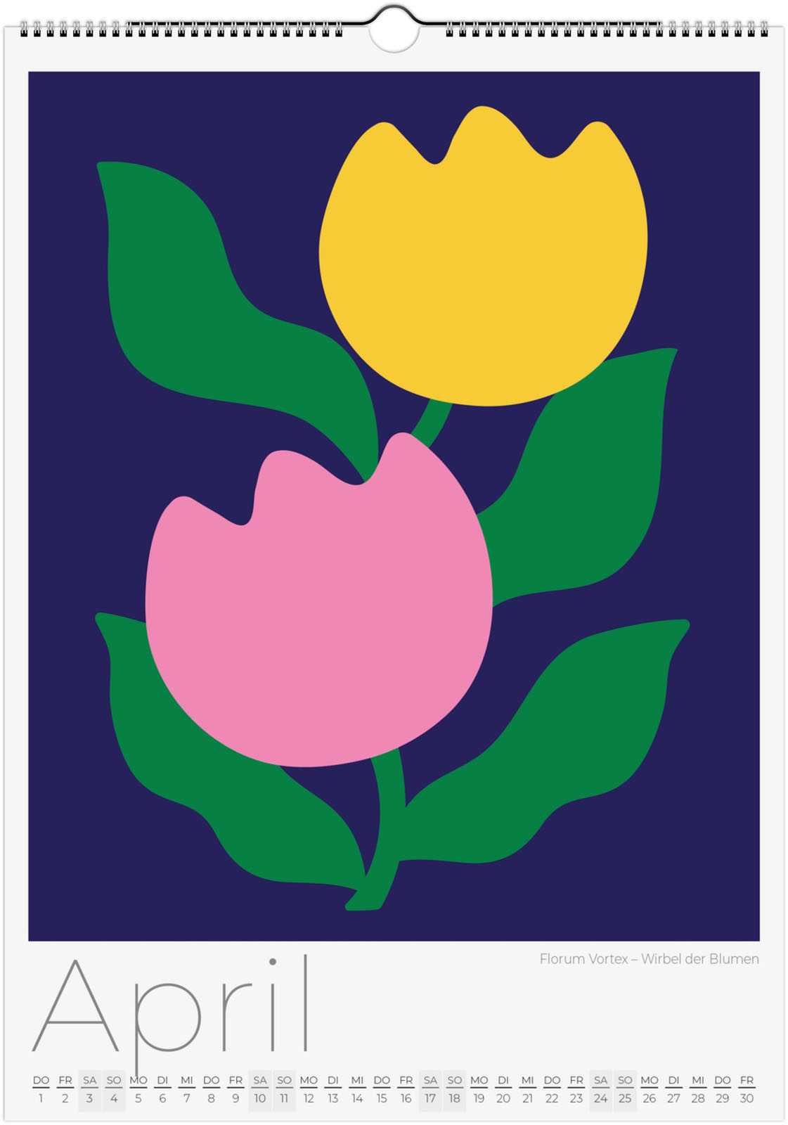 Der Blumenkalender 2027 'Abstrakte Flora' zeigt 12 moderne florale Illustrationen. Jede Seite ist ein florales Kunstwerk, das Minimalismus und Natur auf neue Weise verbindet.