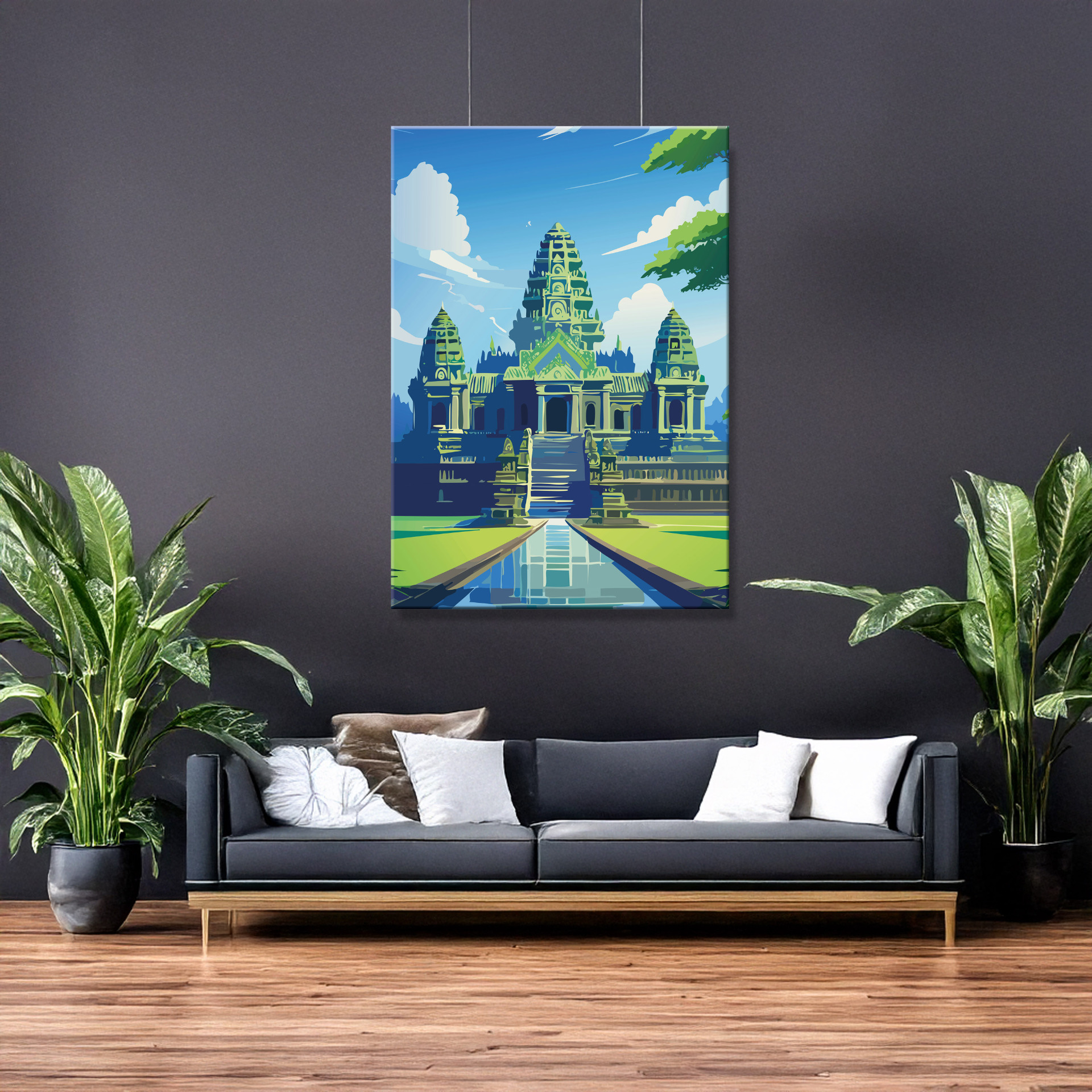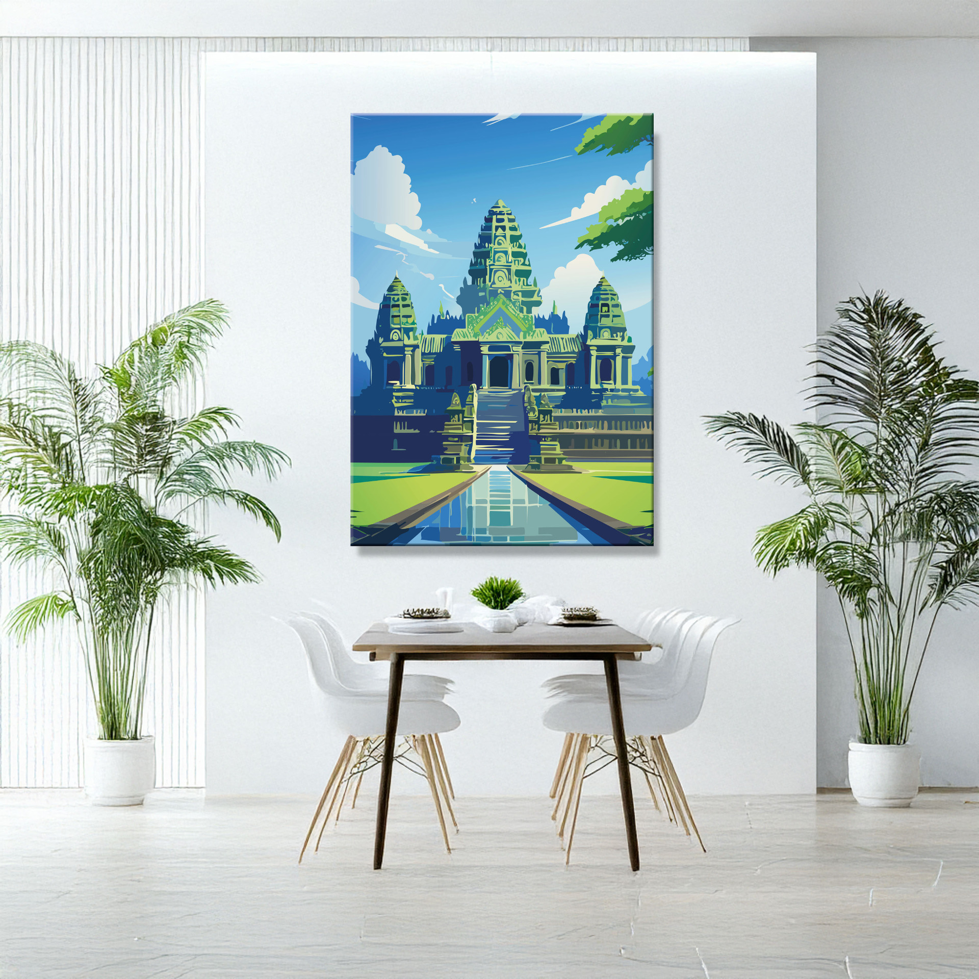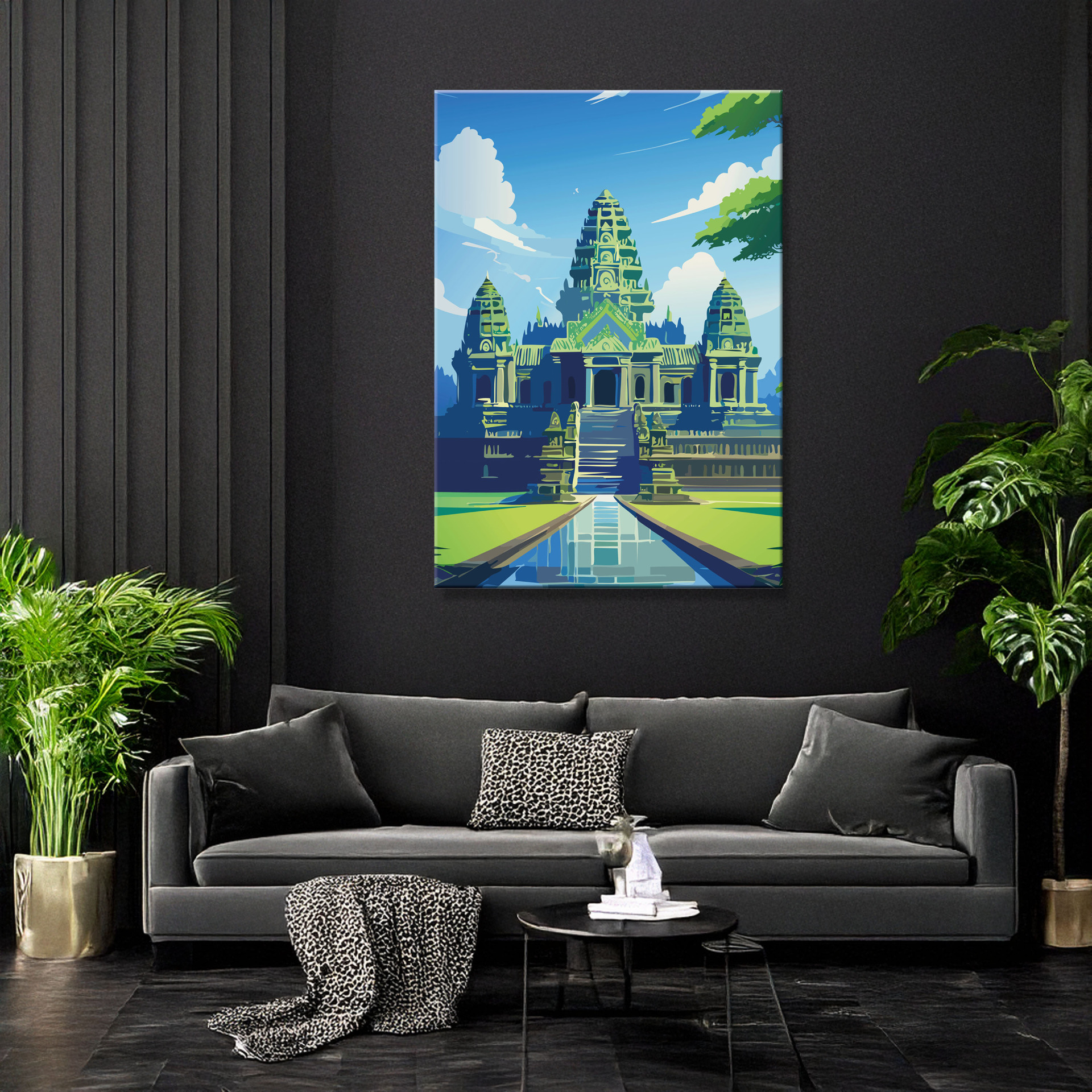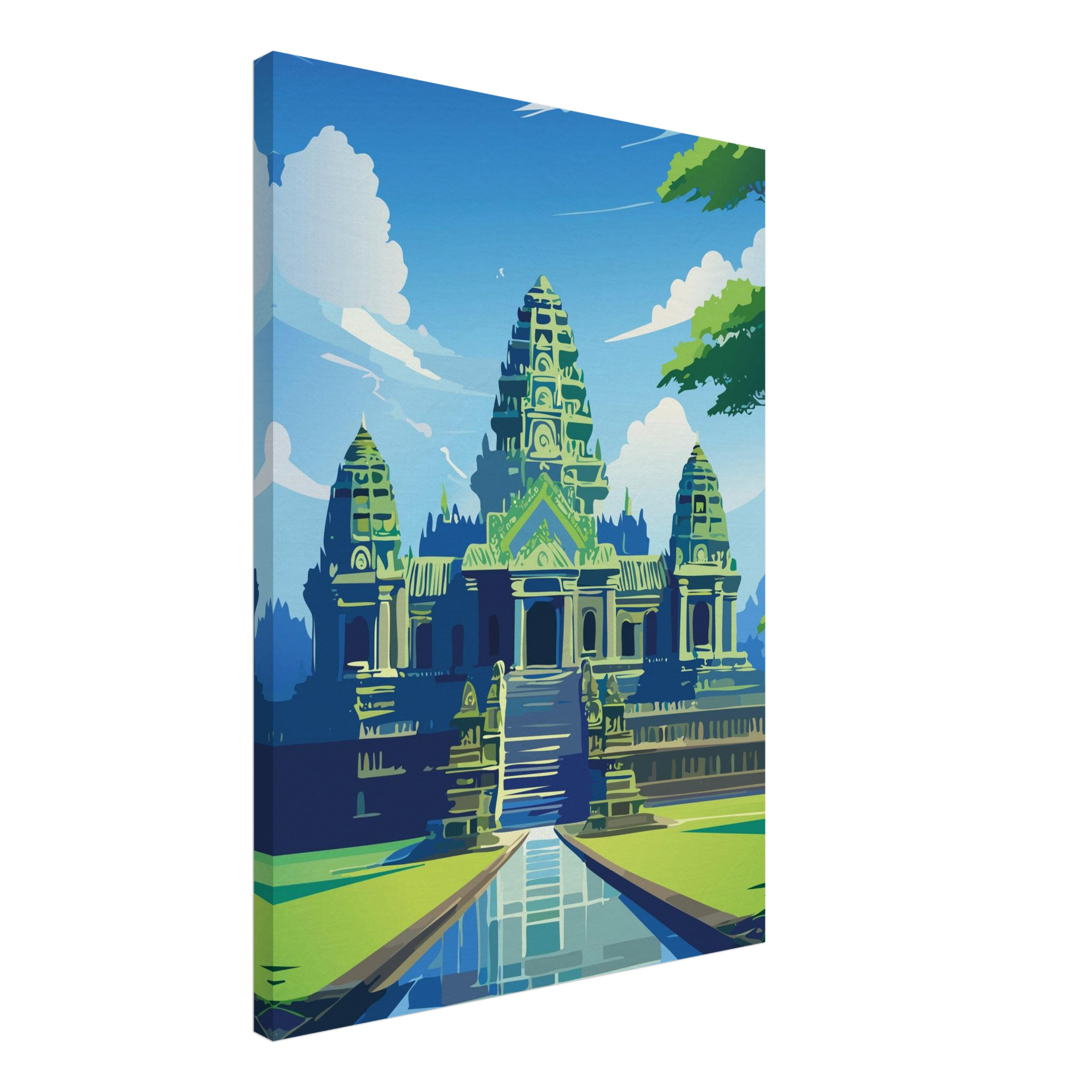 Angkor Wat: majestätisch, still und zeitlos – ein Blick auf die jahrhundertealte Anlage im Dschungel, der Geschichte und Ruhe zugleich vermittelt. Gedruckt auf langlebiger Leinwand, wählbar in mehreren Größen.