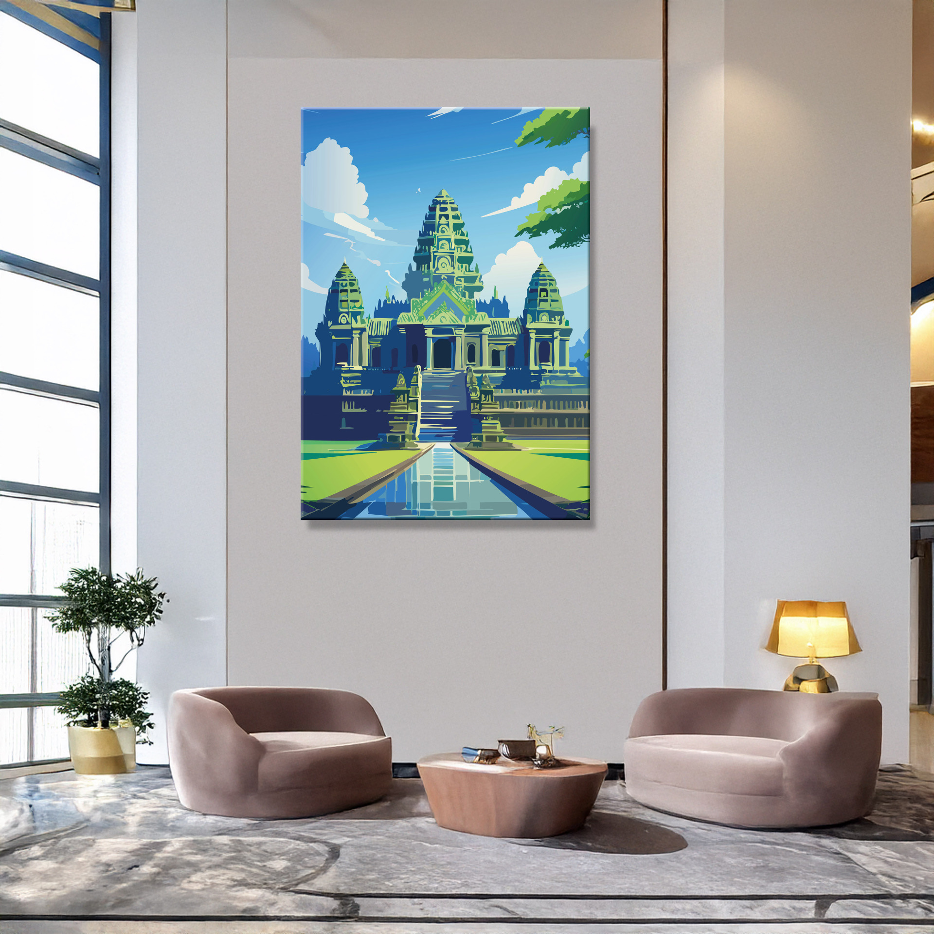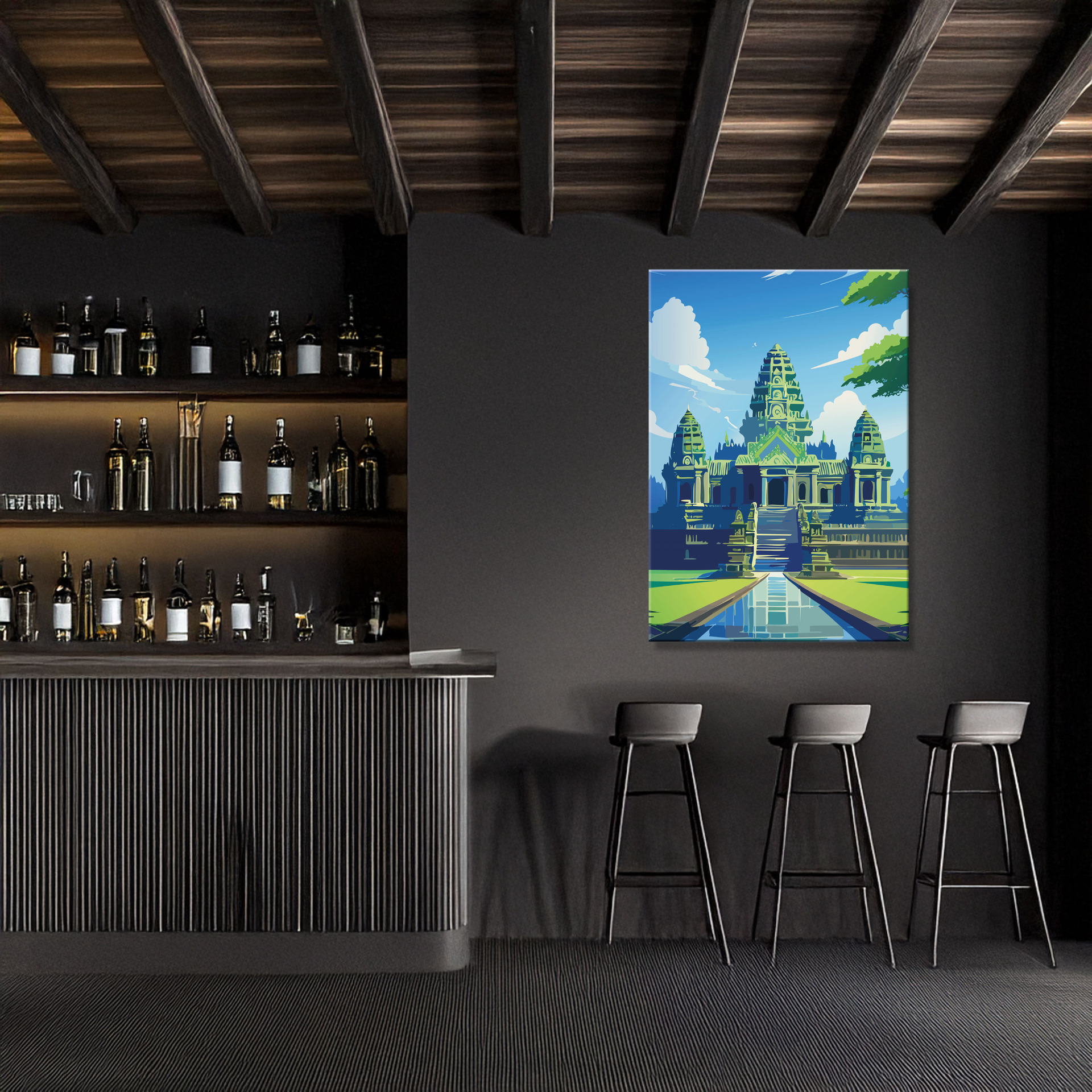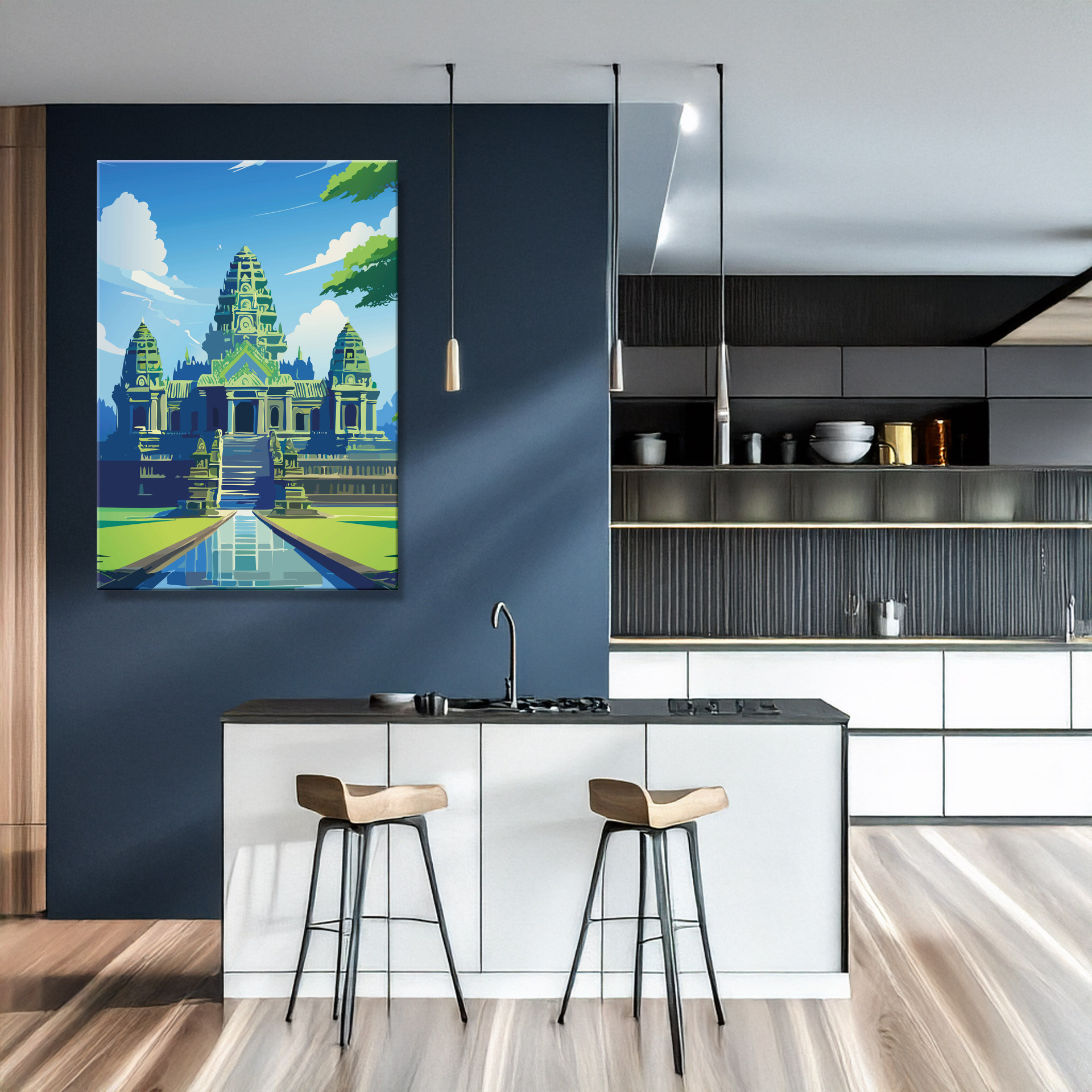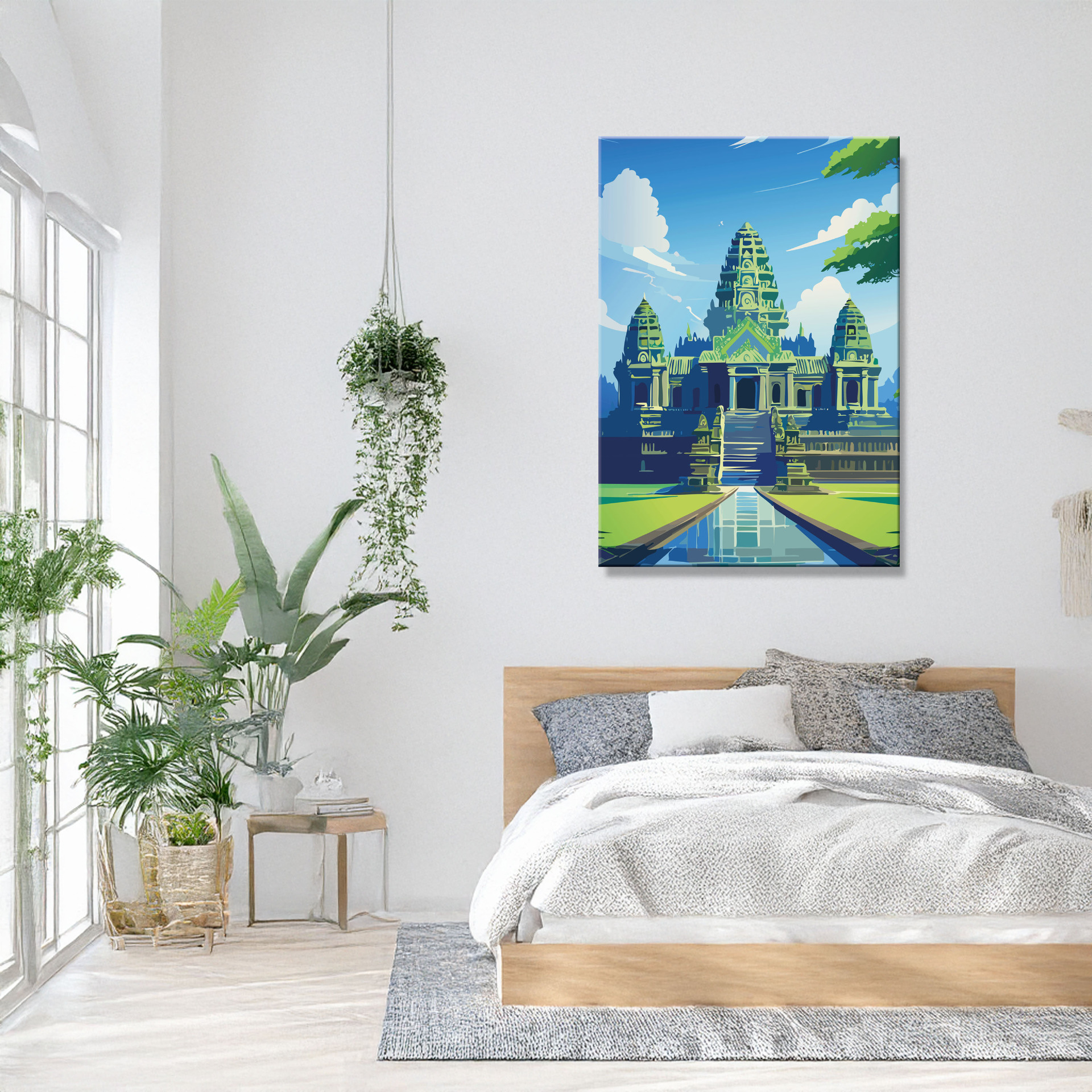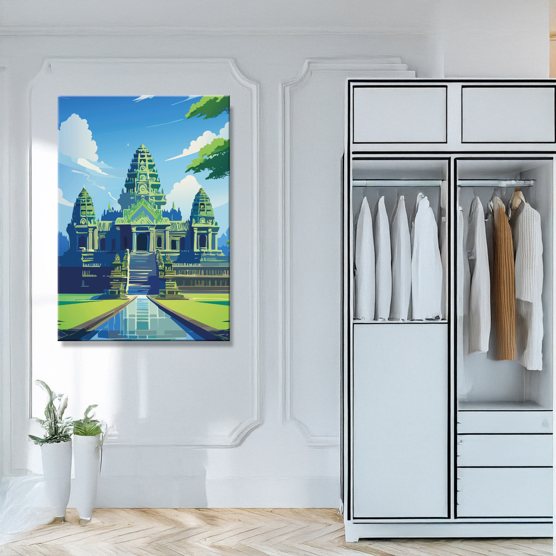 Angkor Wat: majestätisch, still und zeitlos – ein Blick auf die jahrhundertealte Anlage im Dschungel, der Geschichte und Ruhe zugleich vermittelt. Gedruckt auf langlebiger Leinwand, wählbar in mehreren Größen.