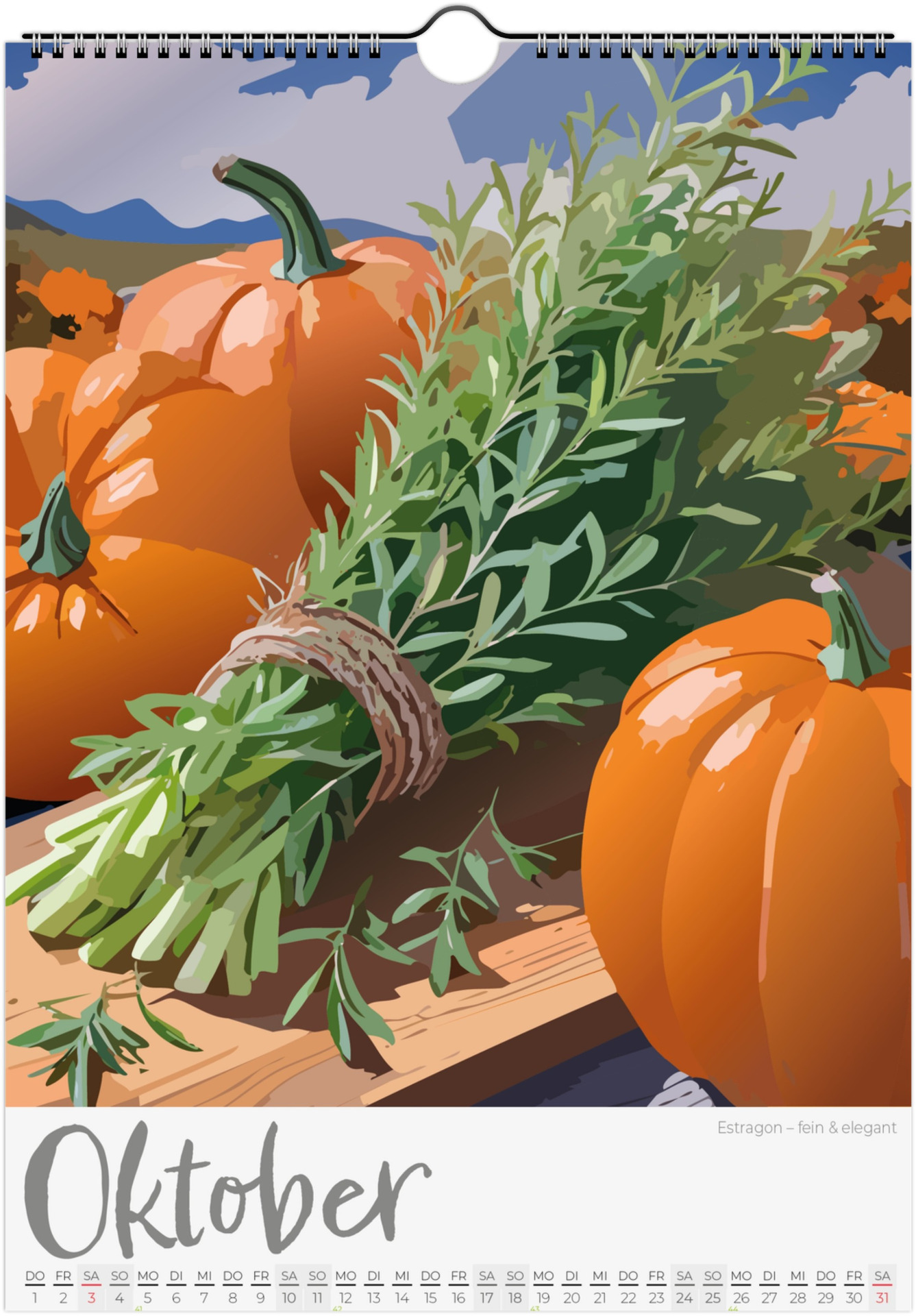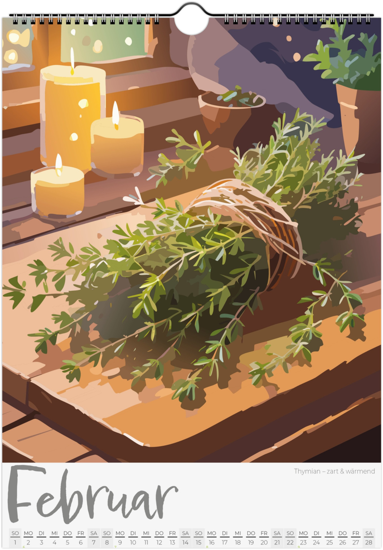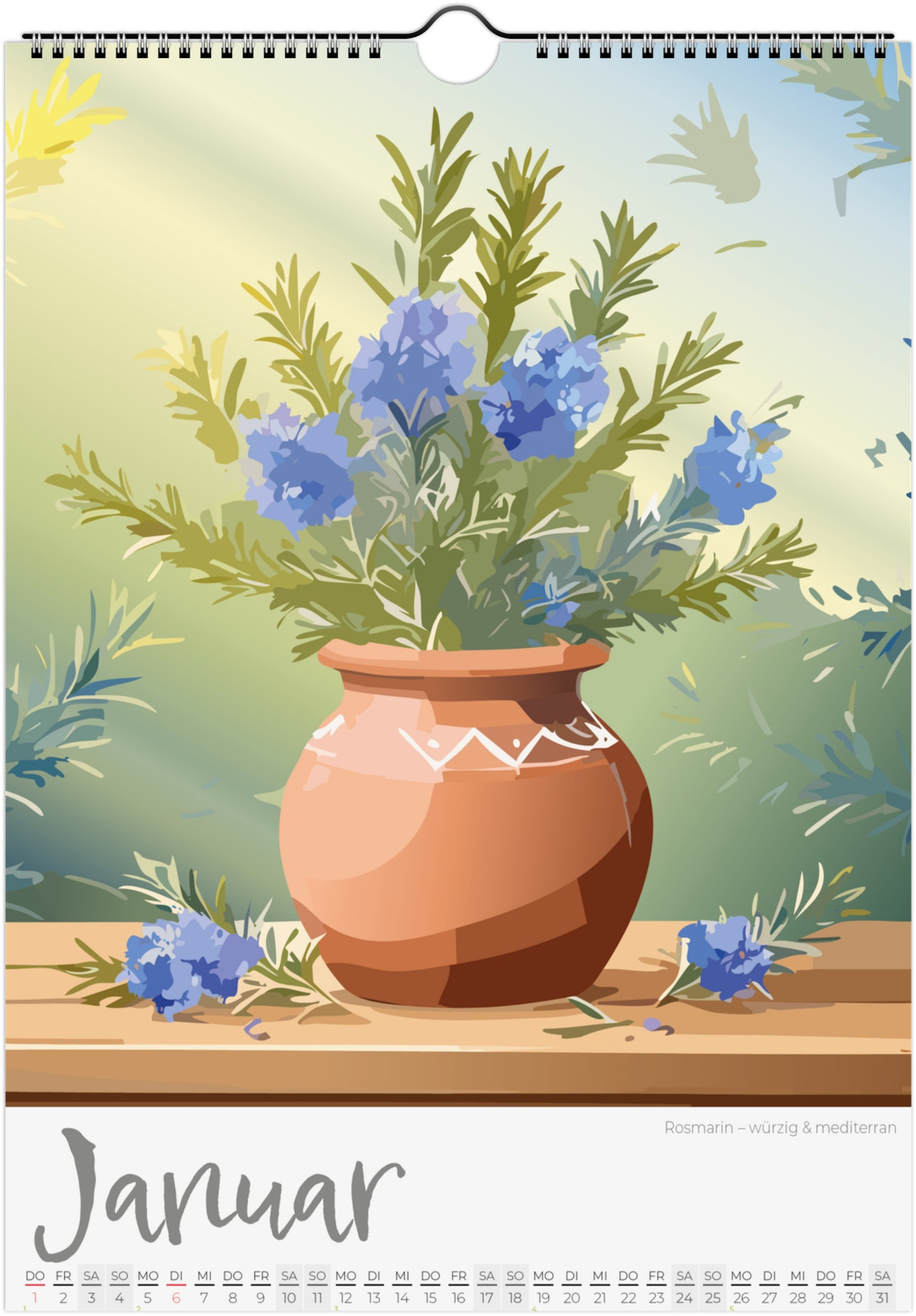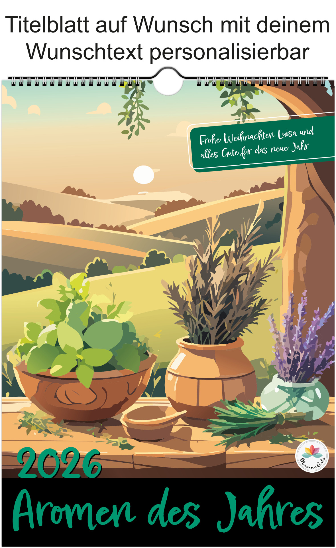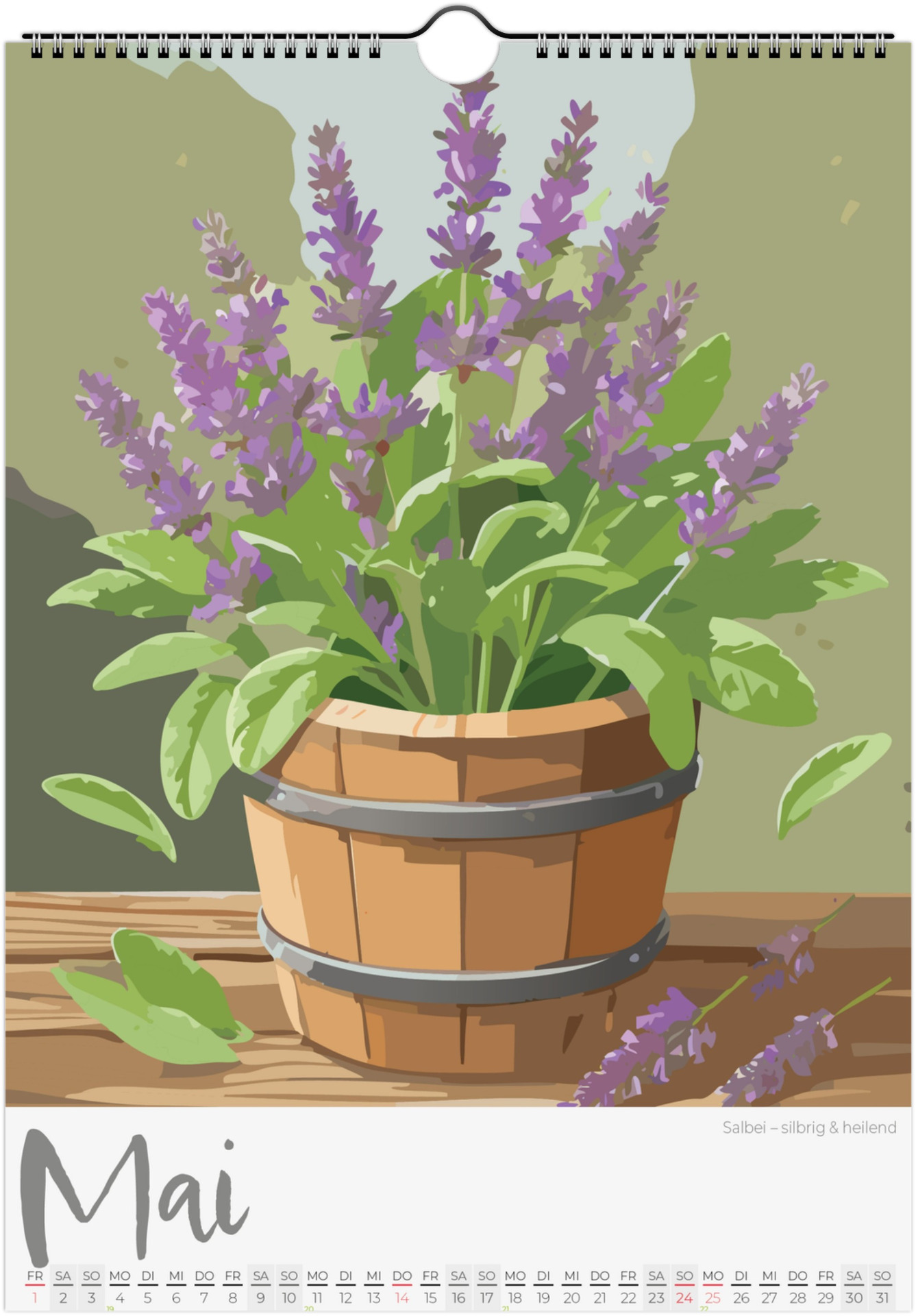 Der Kräuter Kalender 2026 zeigt 12 liebevoll illustrierte Kräuter – von bekannten Küchenkräutern bis zu aromatischen Gartenpflanzen – perfekt für Gartenfreunde, Foodies und Naturfans.