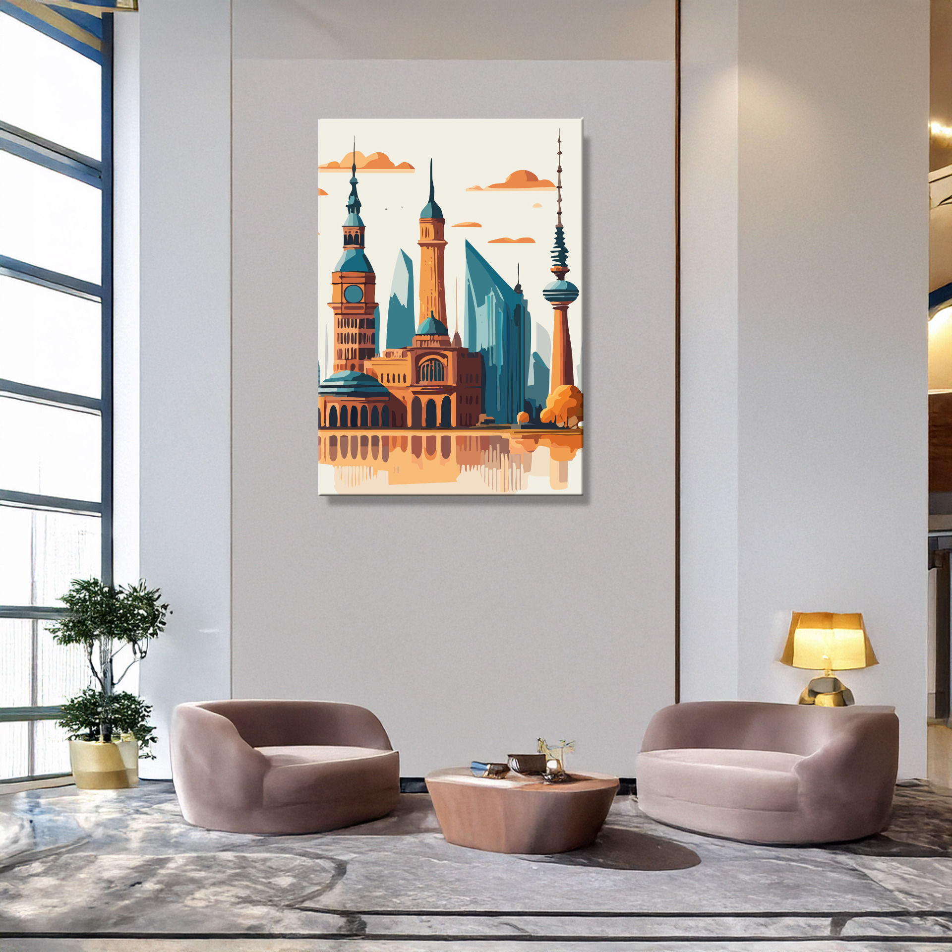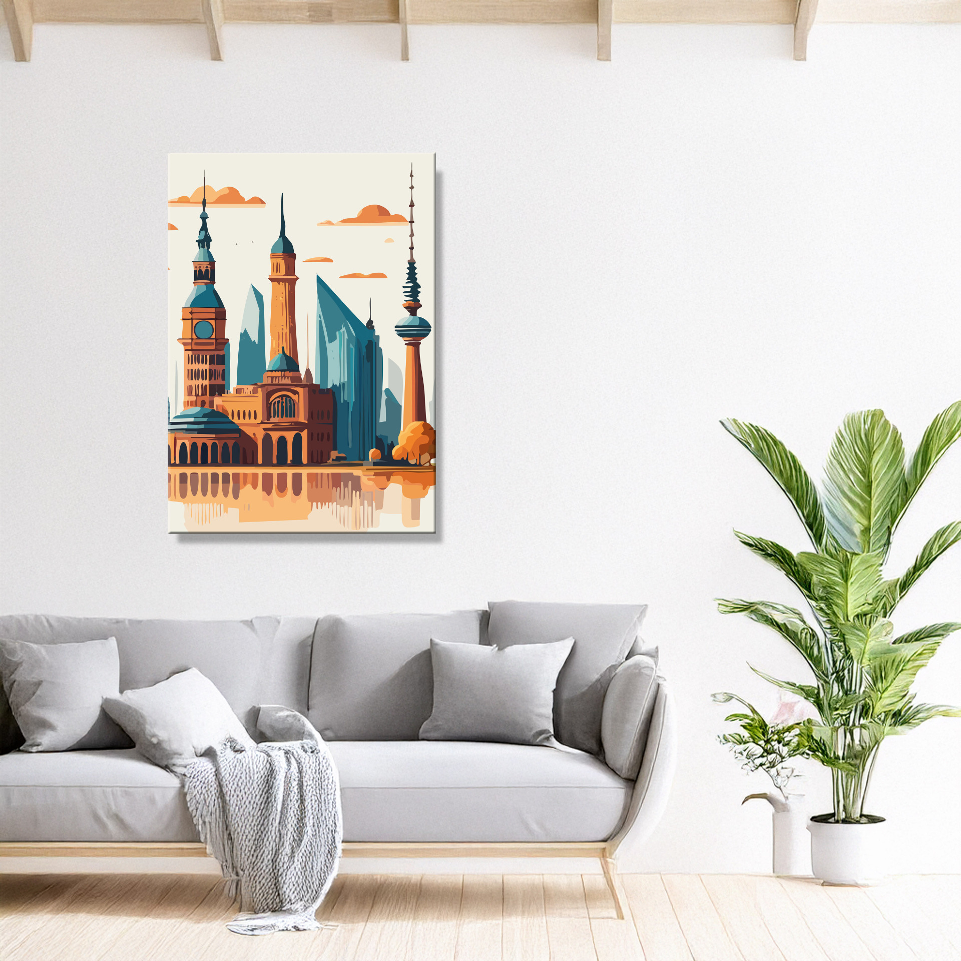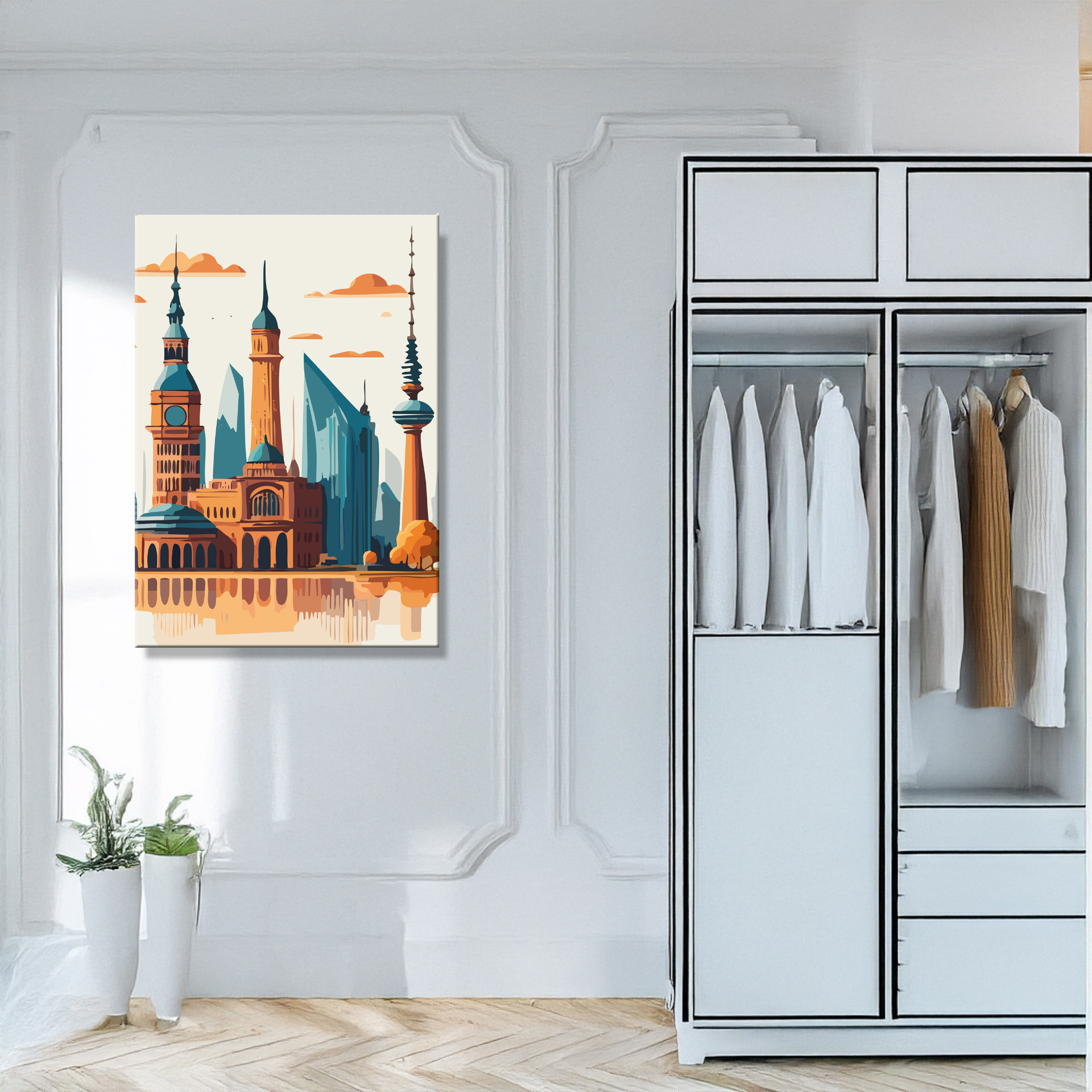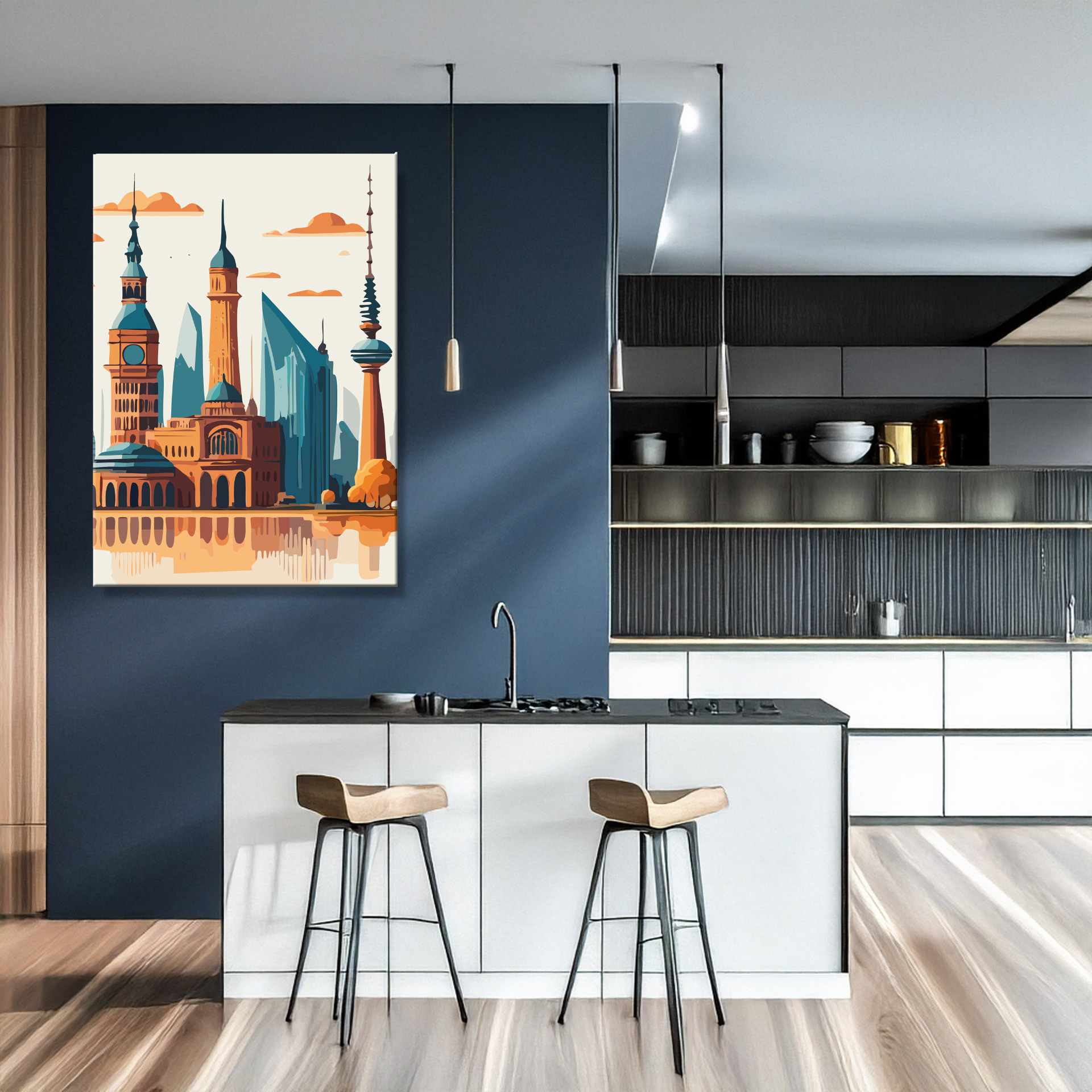Berlin in einem Blick – moderne Skyline trifft historische Substanz. Dieses Kunstwerk bringt urbane Lebendigkeit und stilvolles Flair in deinen Raum. Erhältlich in verschiedenen Formaten.