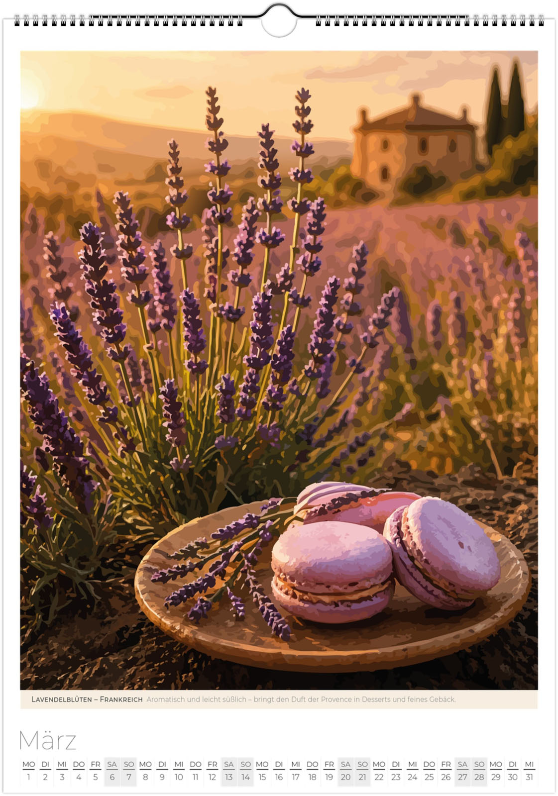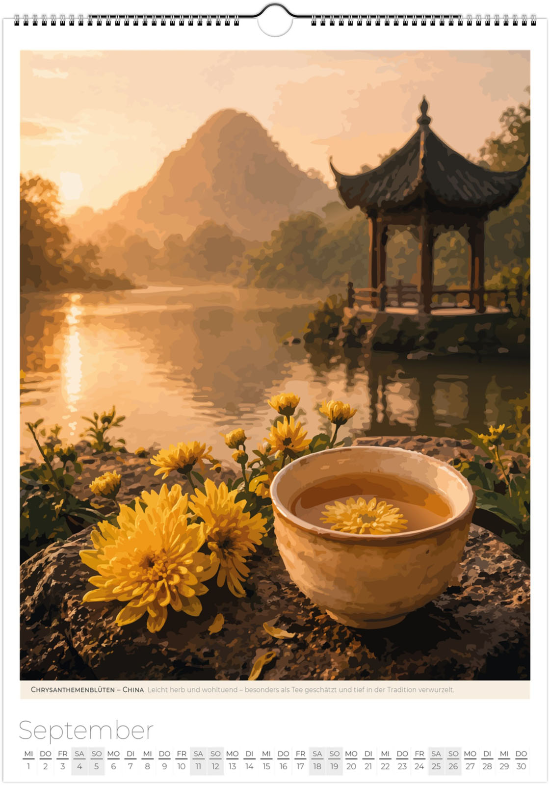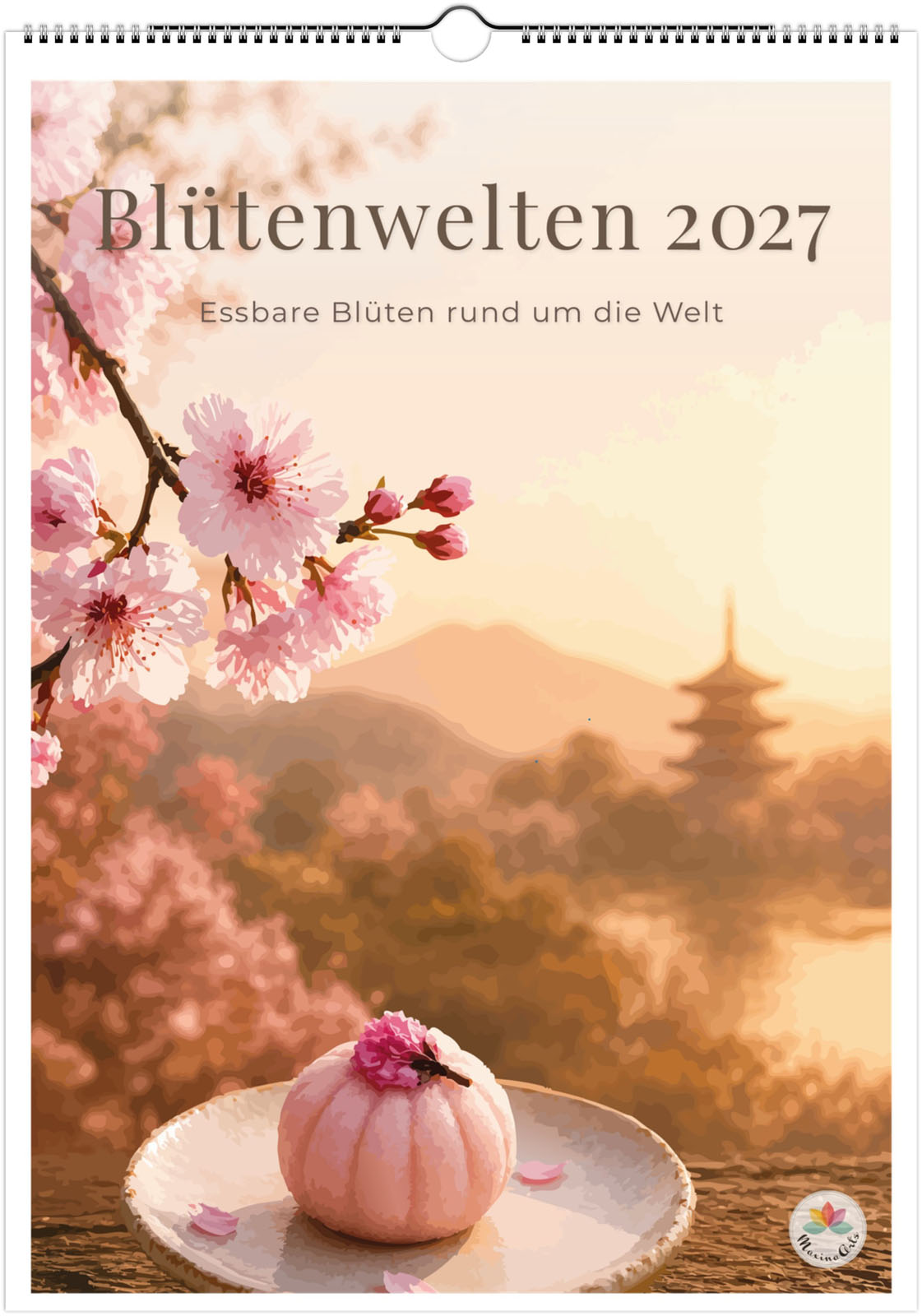 Dieser Wandkalender 2027 zeigt stimmungsvolle Illustrationen essbarer Blüten aus aller Welt – von der zarten Kirschblüte bis zur eleganten Lotusblüte – und schafft eine ruhige, ästhetische Atmosphäre für dein Zuhause.