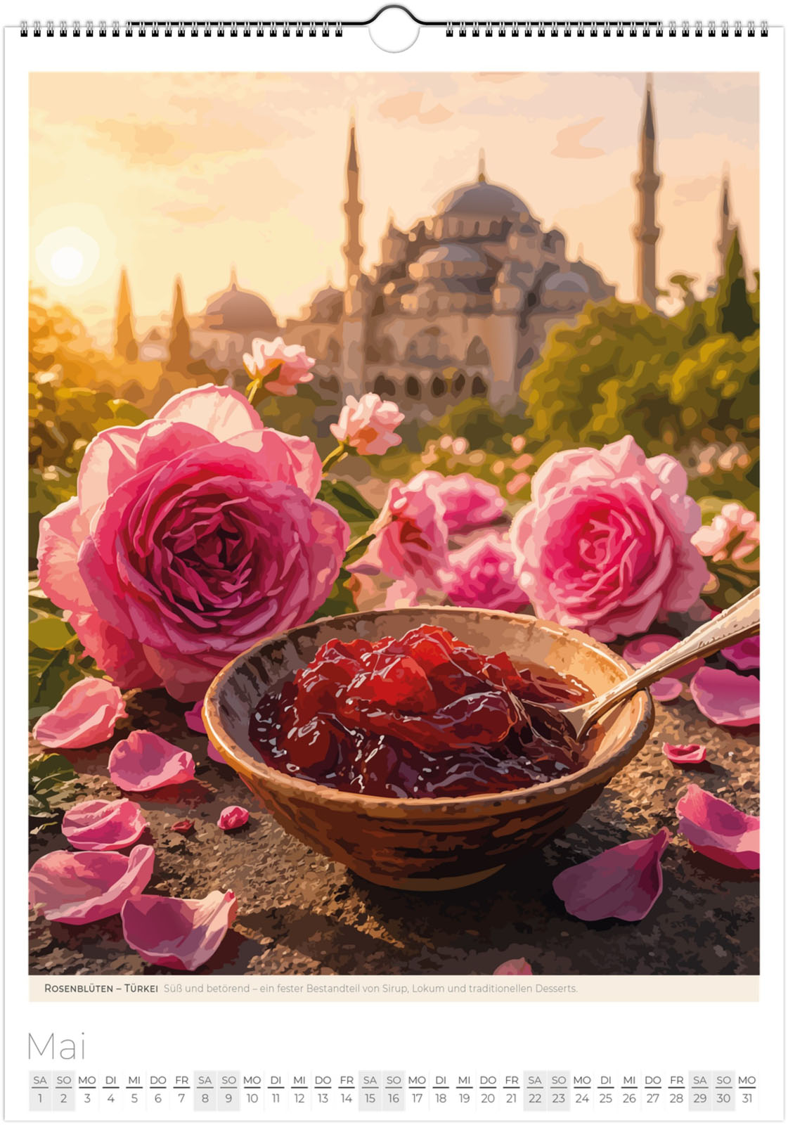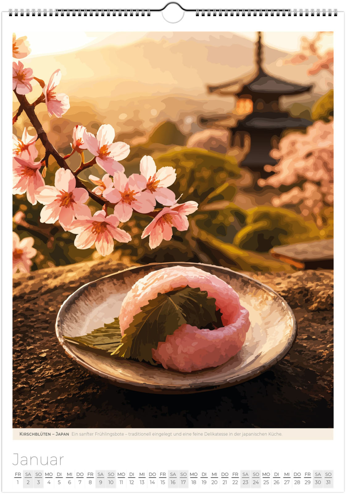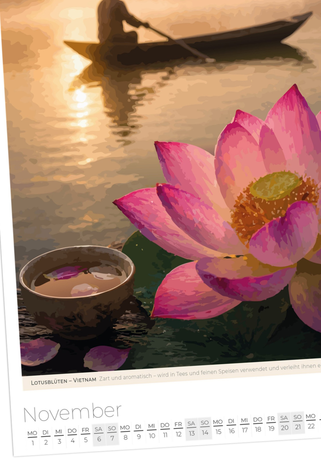 Dieser Wandkalender 2027 zeigt stimmungsvolle Illustrationen essbarer Blüten aus aller Welt – von der zarten Kirschblüte bis zur eleganten Lotusblüte – und schafft eine ruhige, ästhetische Atmosphäre für dein Zuhause.