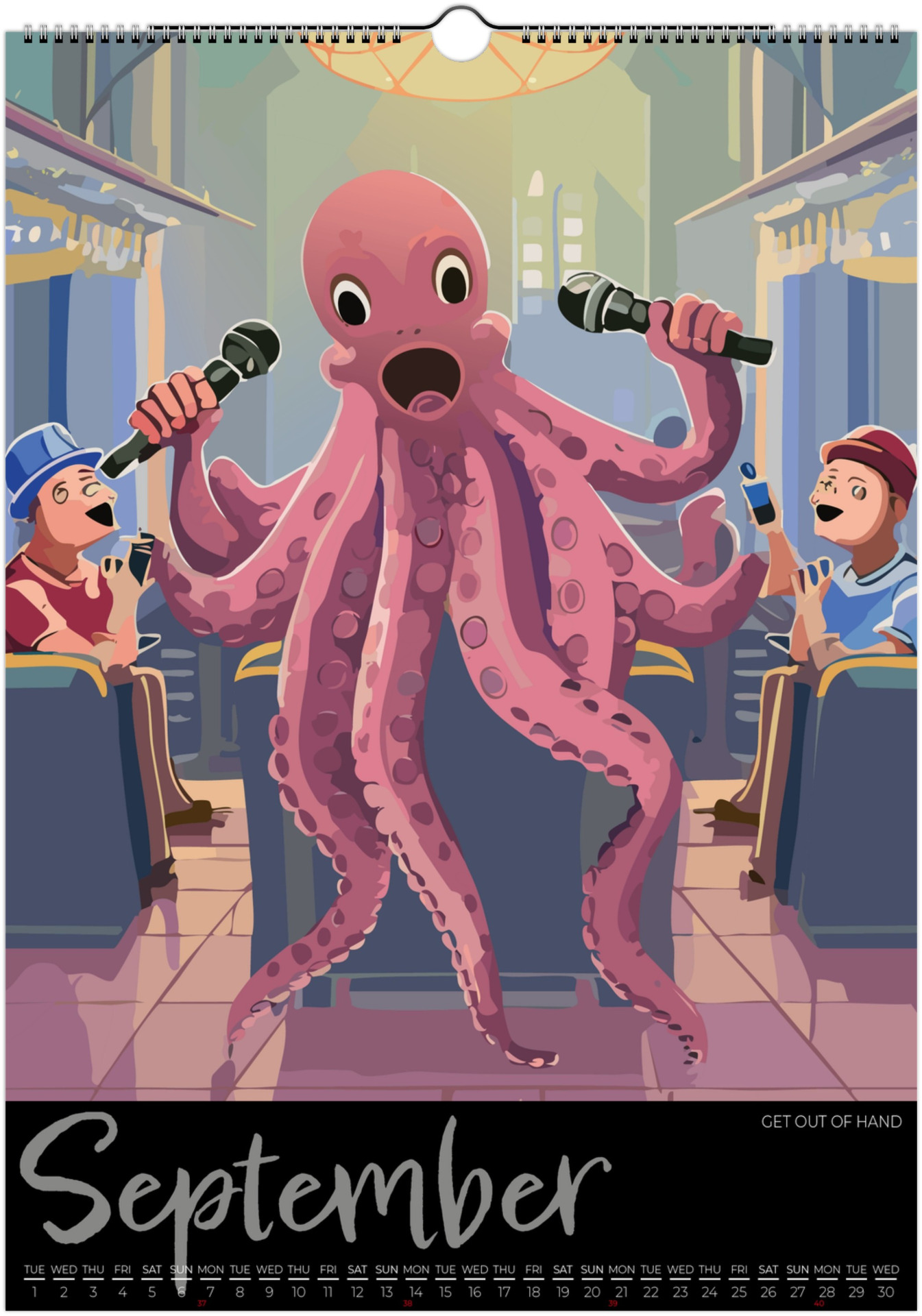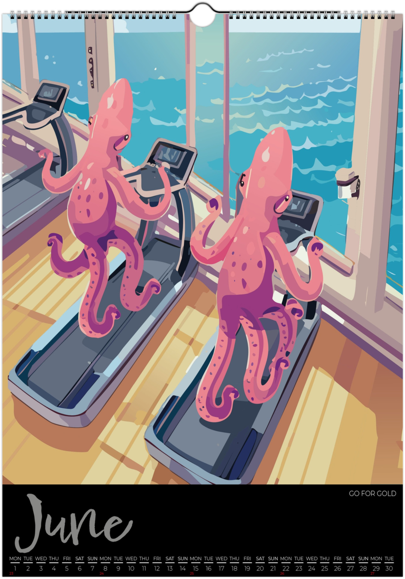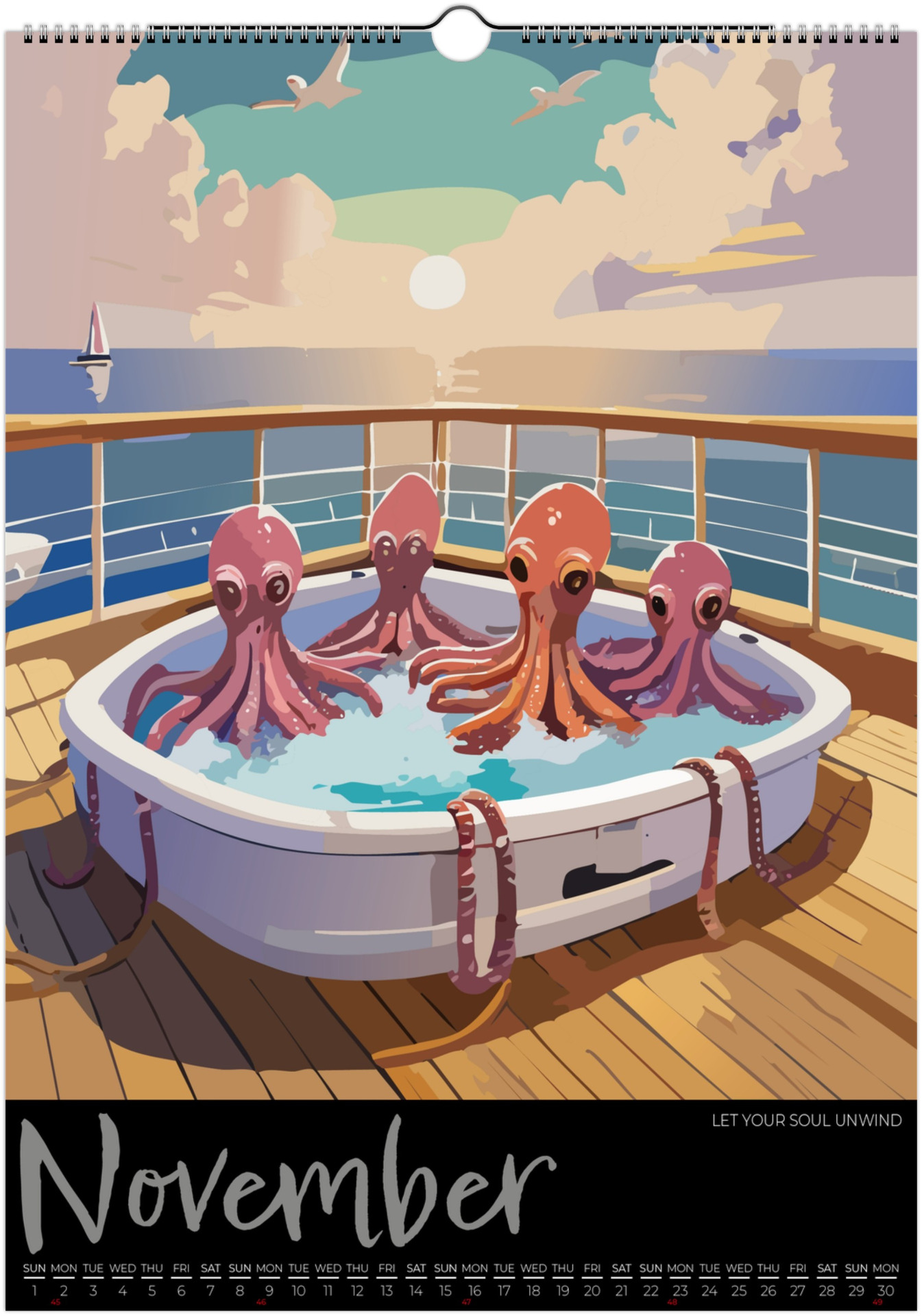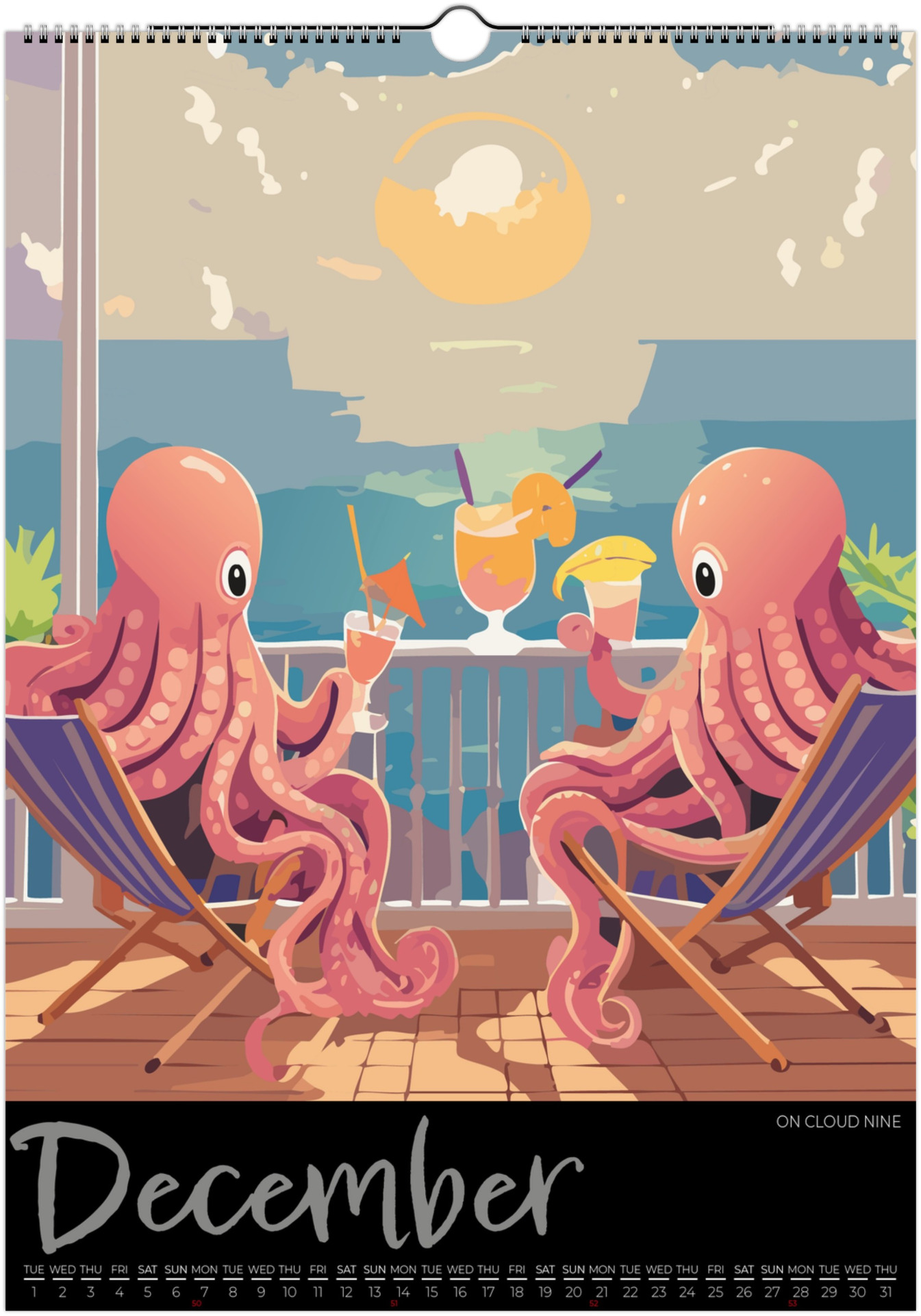 The Ahoy Calendar 2026 features 12 imaginative illustrations of Krakens in funny and nautical scenes – the perfect gift for seafarers, cruise lovers, and fans of maritime fantasy.
