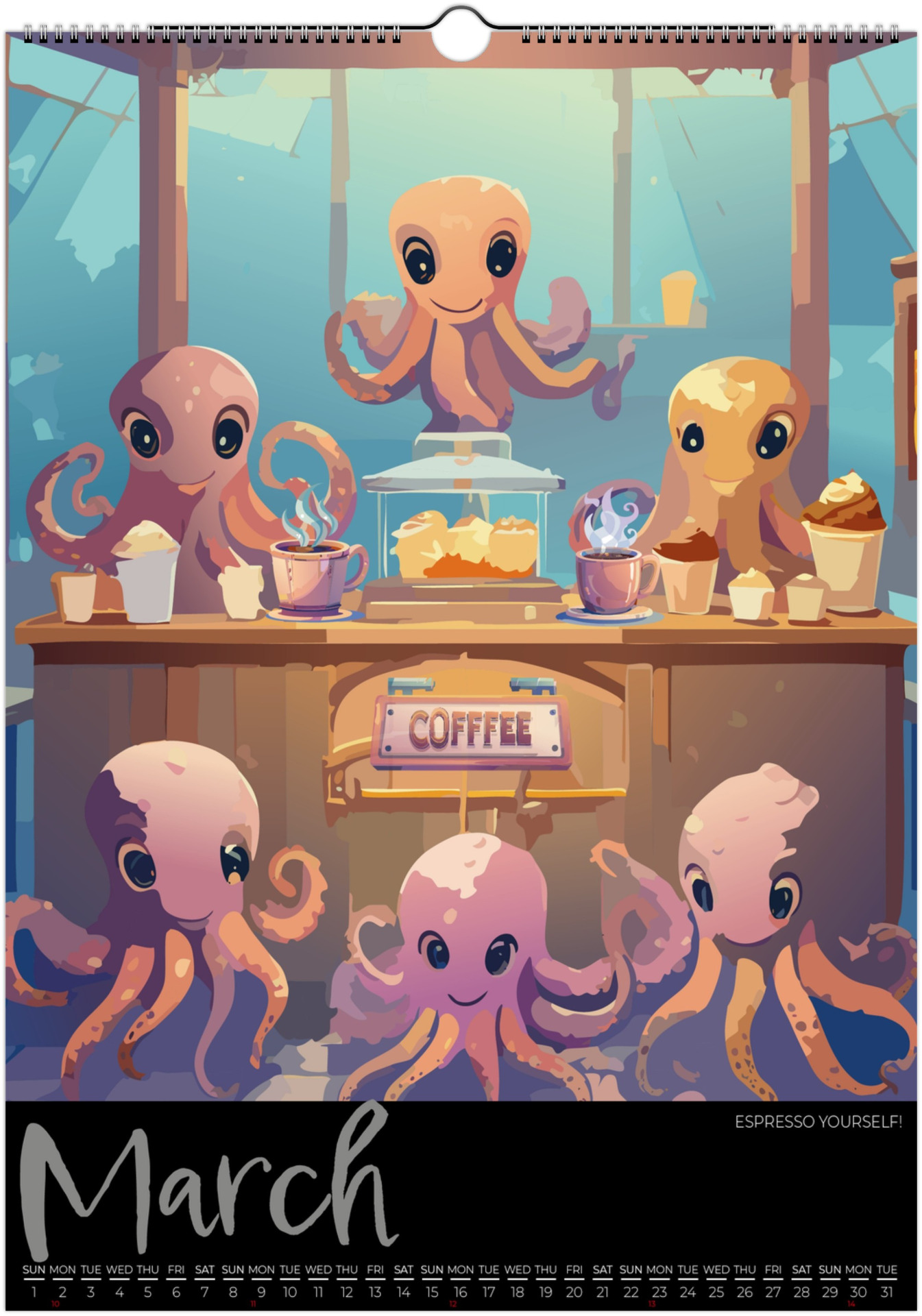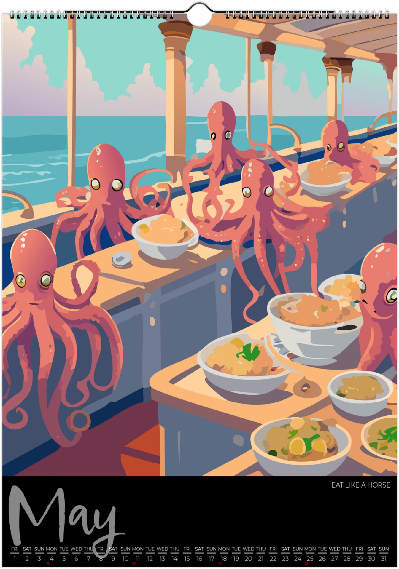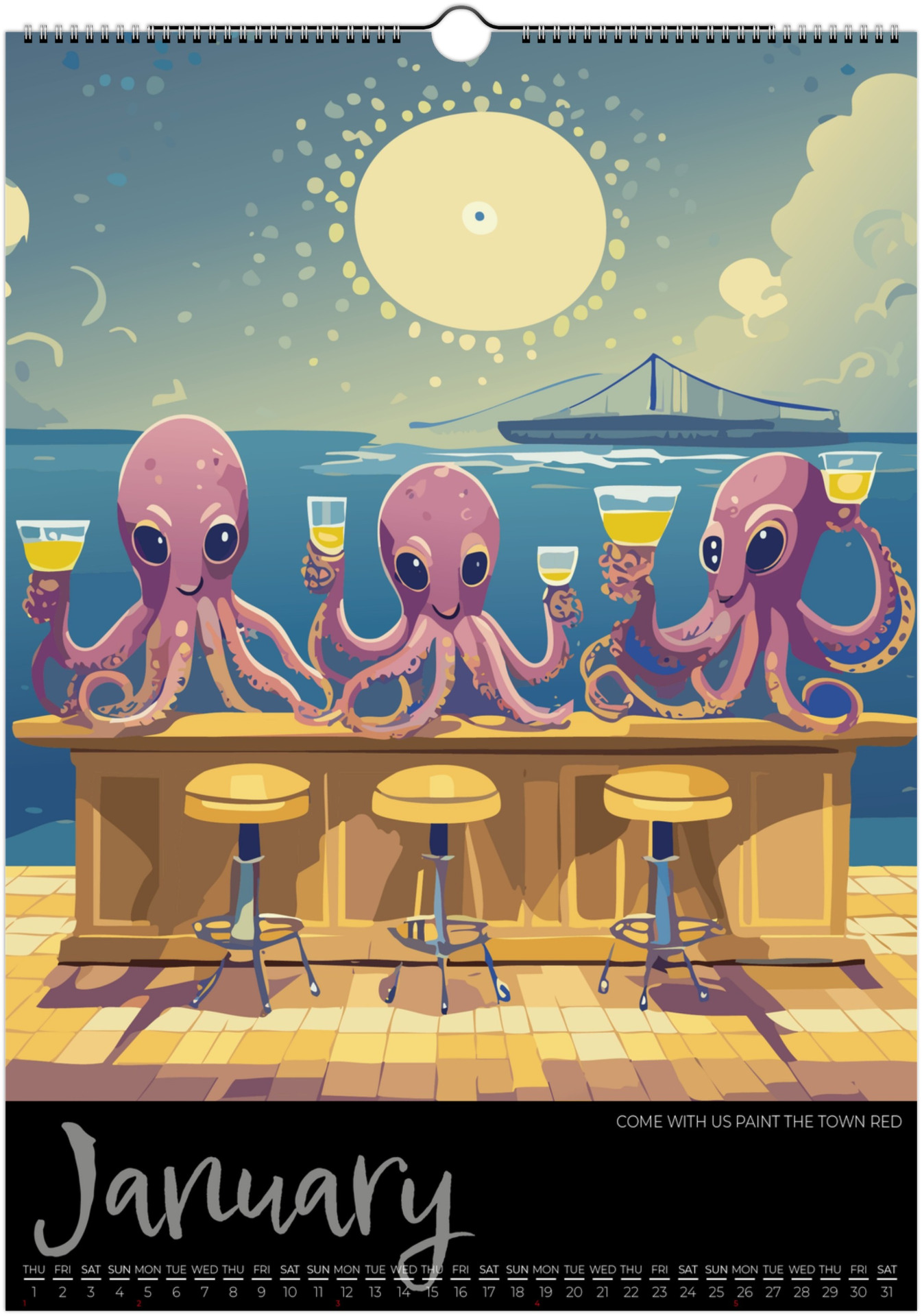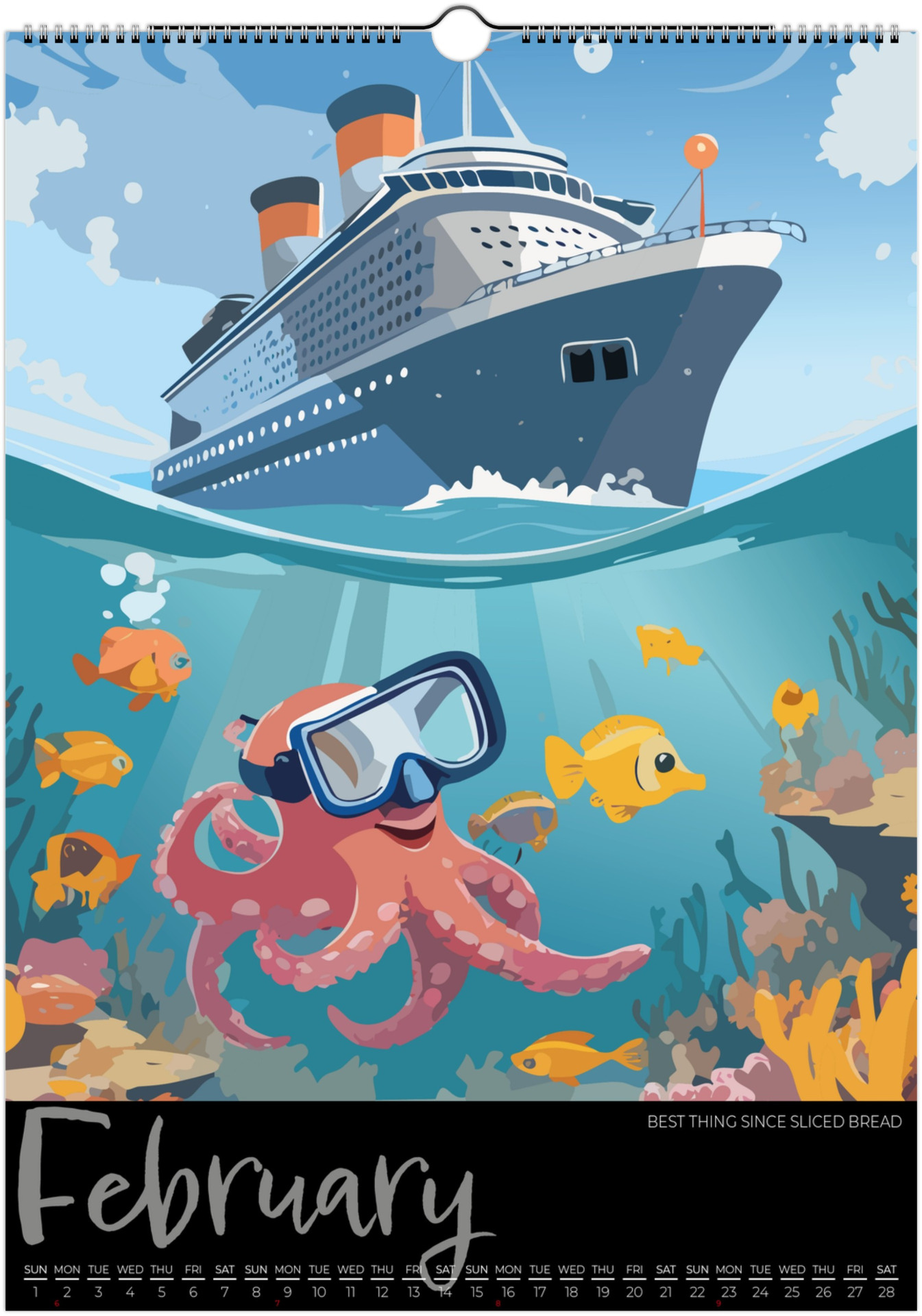 The Ahoy Calendar 2026 features 12 imaginative illustrations of Krakens in funny and nautical scenes – the perfect gift for seafarers, cruise lovers, and fans of maritime fantasy.