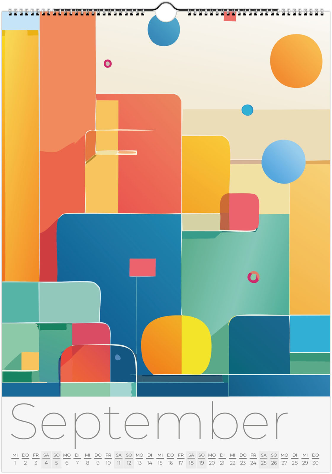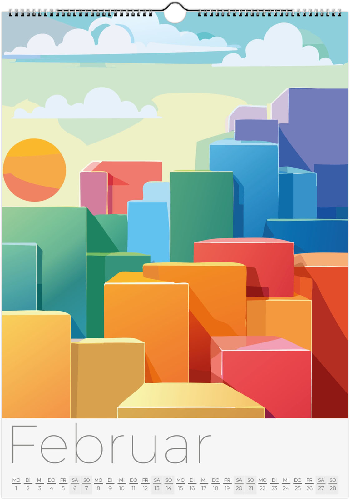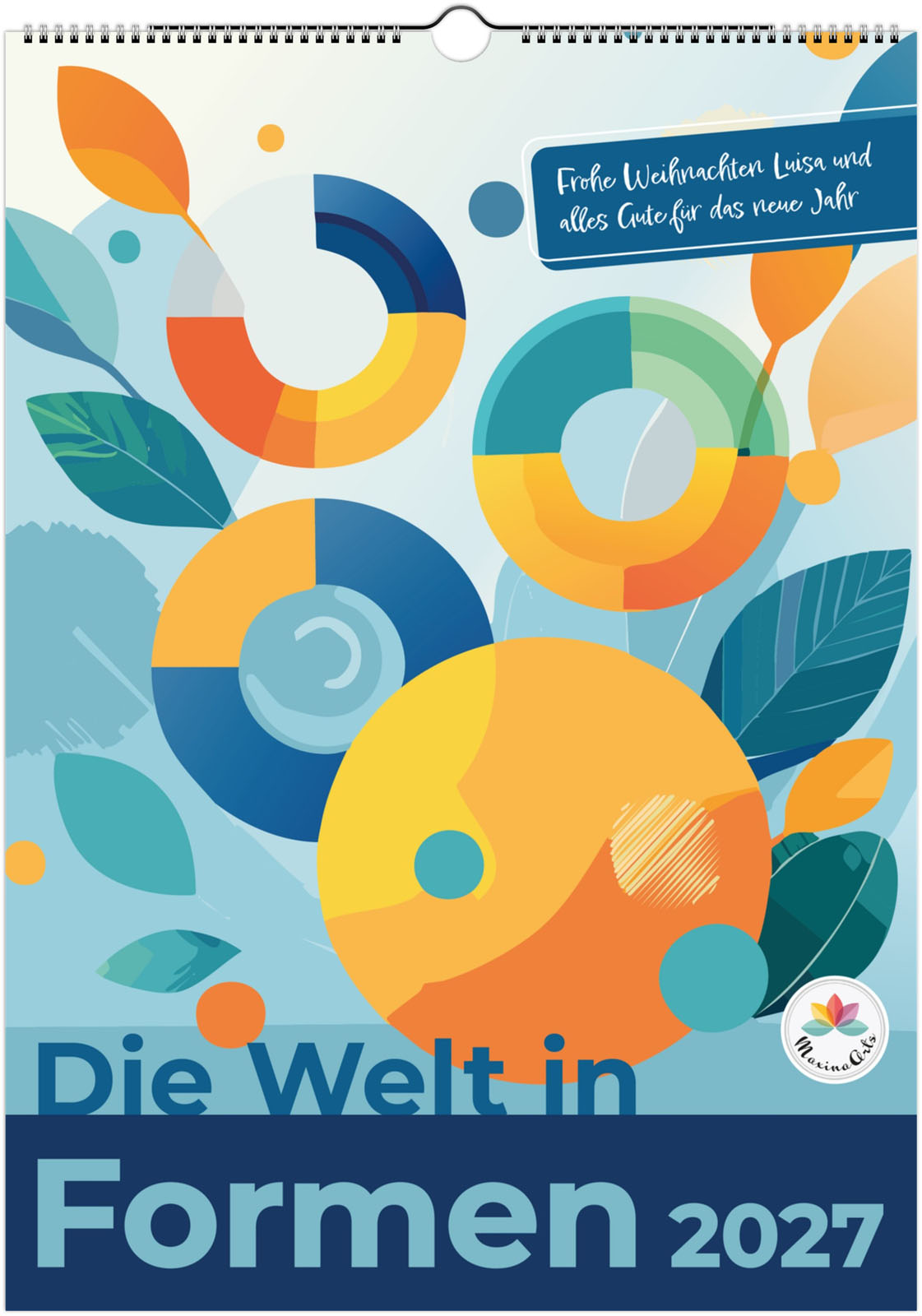 Der "Die Welt in Formen" Kalender 2027 zeigt 12 einzigartige, farbenfrohe Kompositionen aus Kreisen, Dreiecken und überlappenden Flächen – minimalistisch, modern und inspirierend.