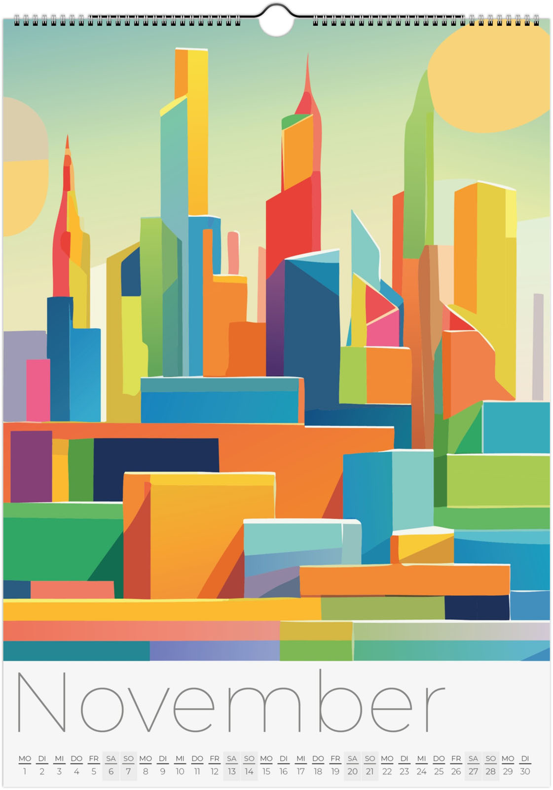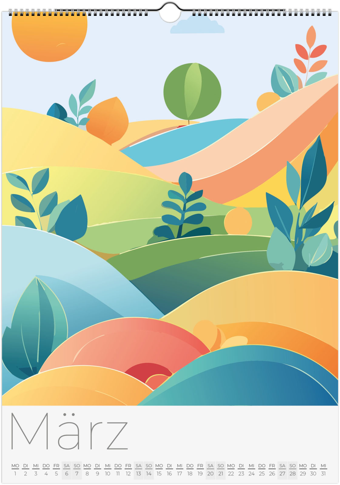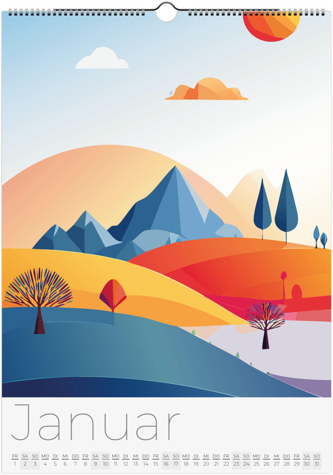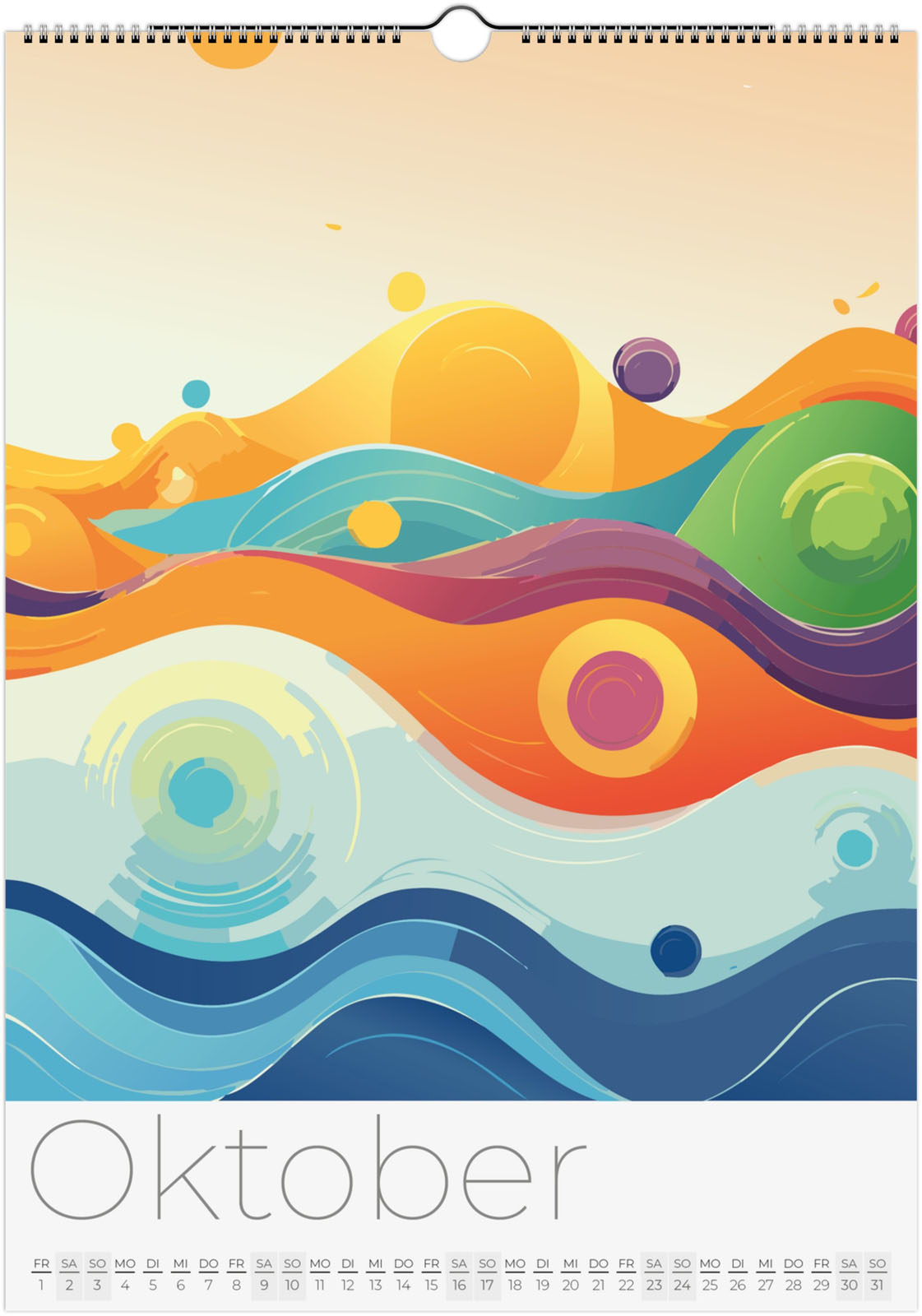 Der "Die Welt in Formen" Kalender 2027 zeigt 12 einzigartige, farbenfrohe Kompositionen aus Kreisen, Dreiecken und überlappenden Flächen – minimalistisch, modern und inspirierend.