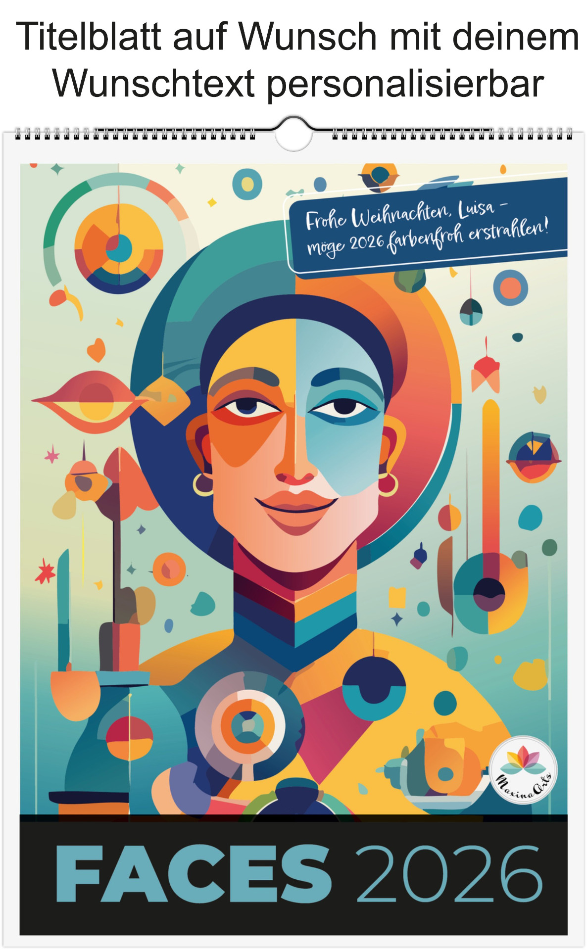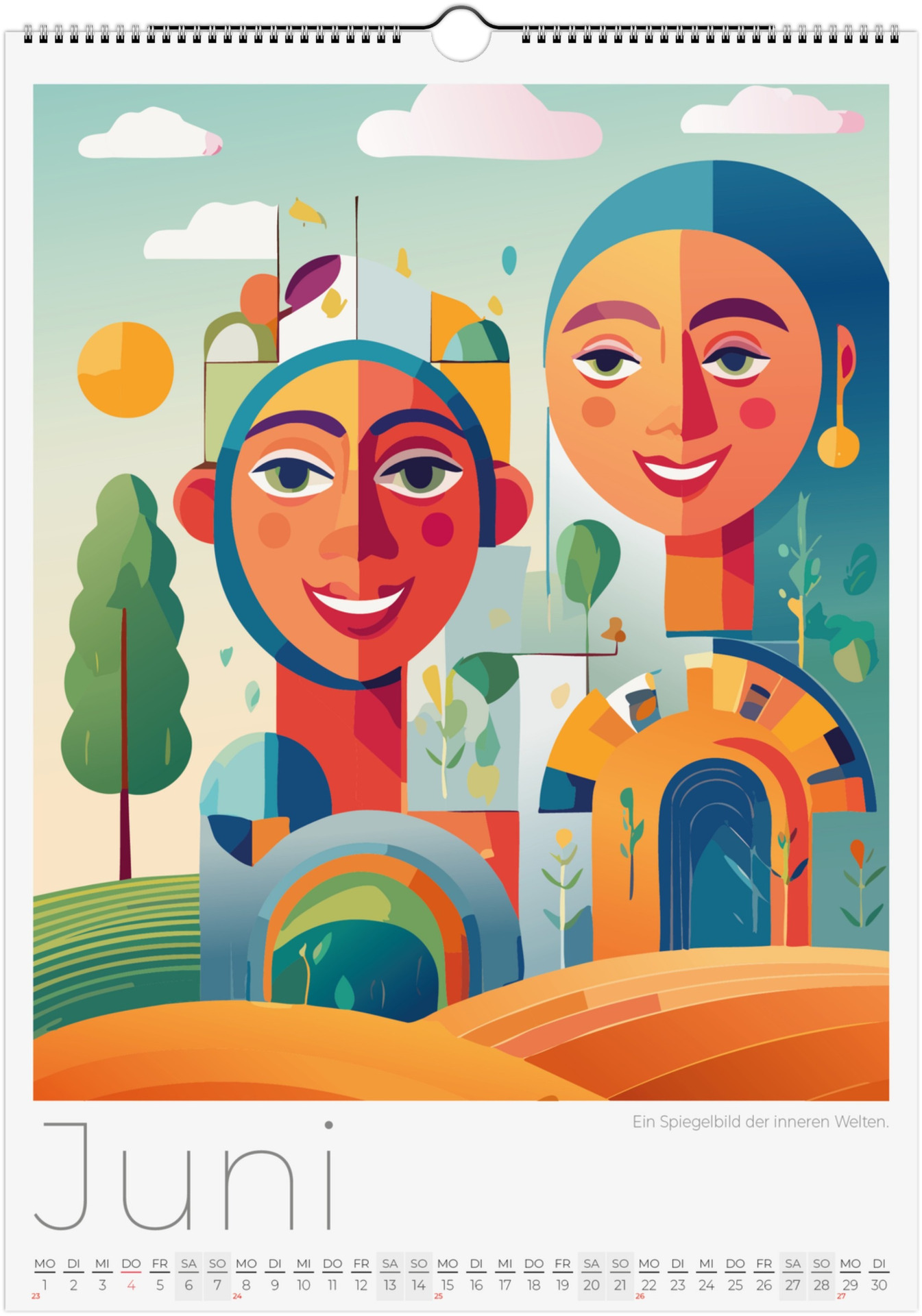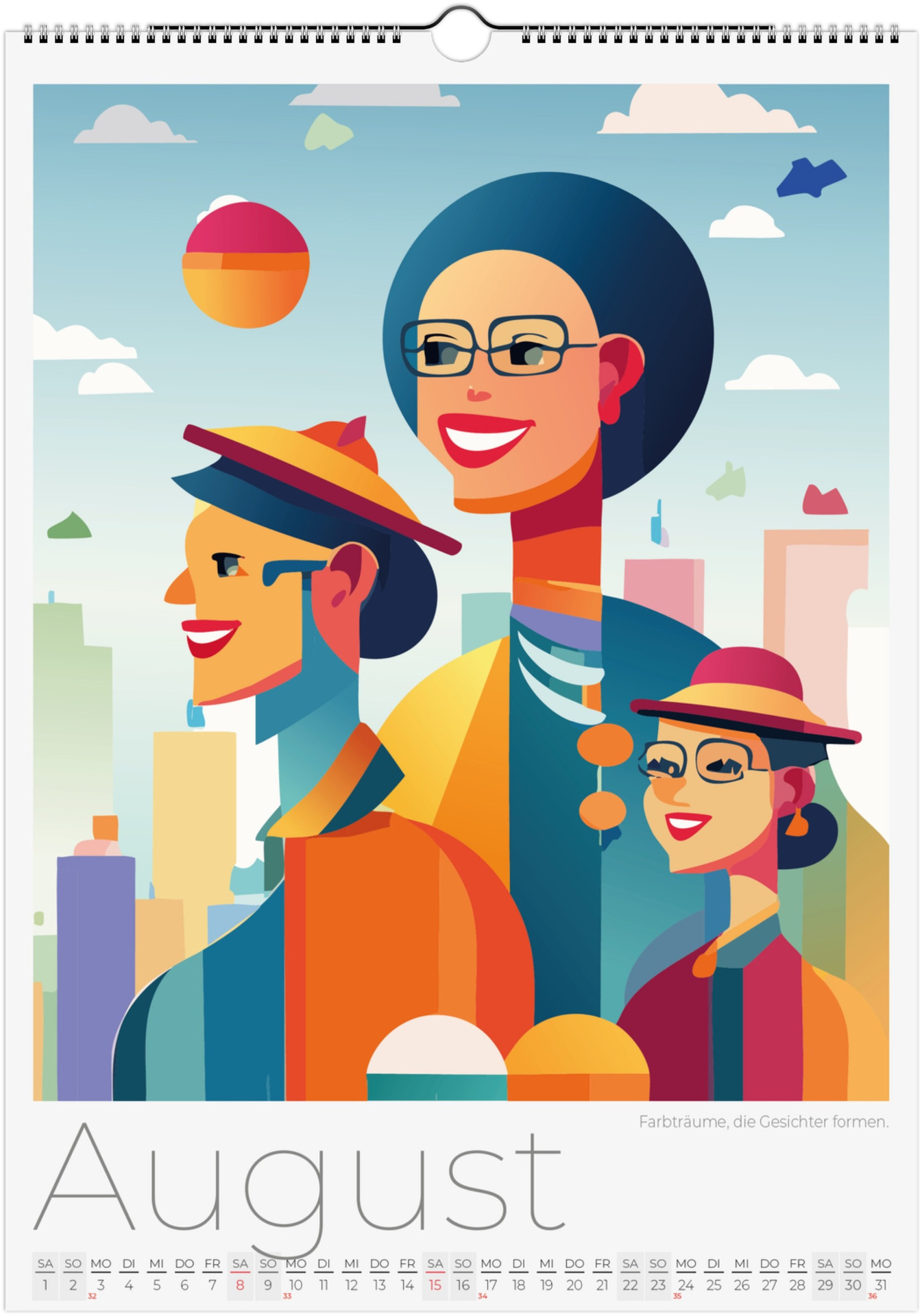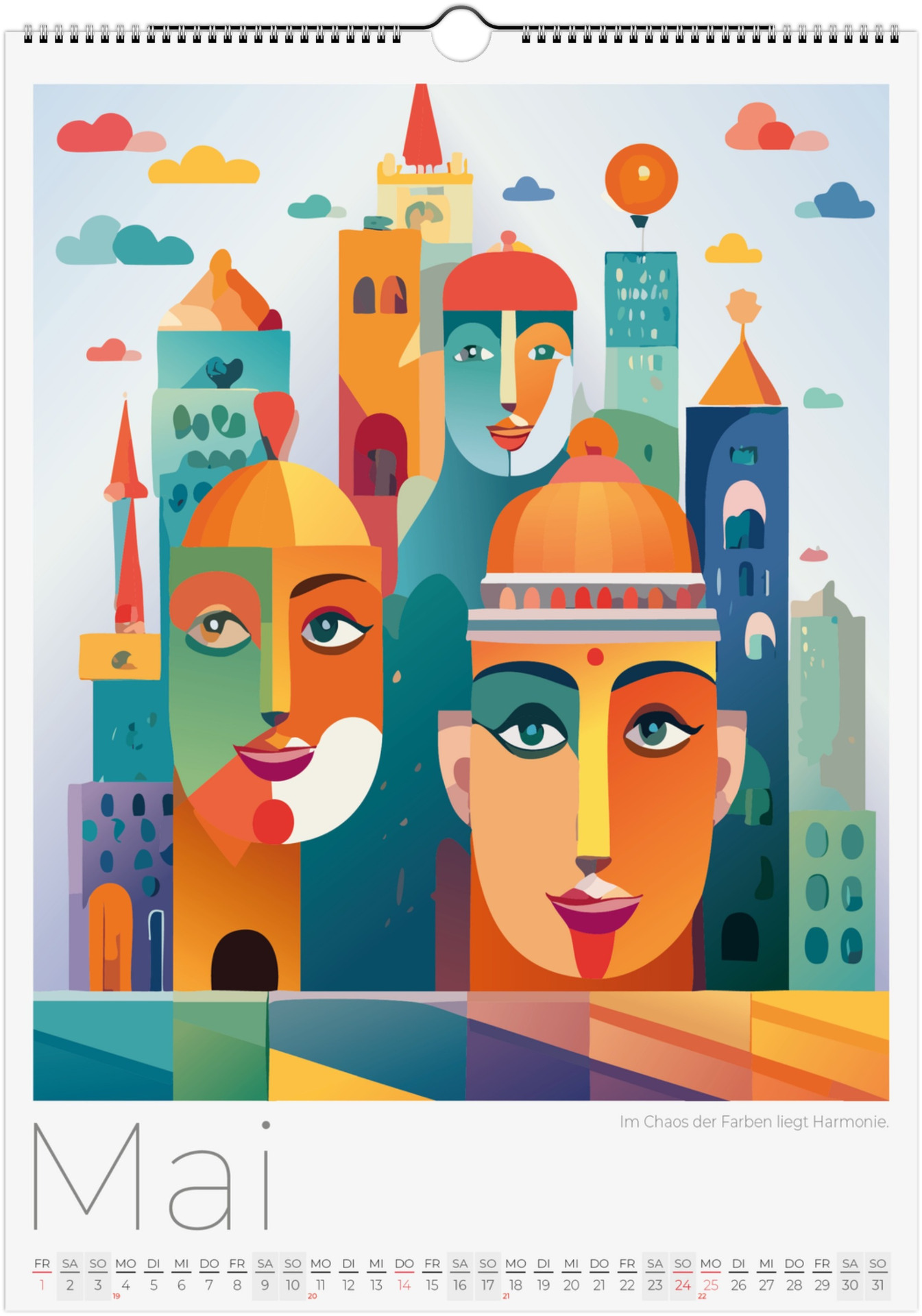 12 Monate abstarkte, bunte Gesichter voller Fantasie, Ausdruck und Farben. Jedes Monatsblatt zeigt ein neues Kunstwerk, das Emotionen, Surrealismus und kreative Vielfalt miteinander verbindet.