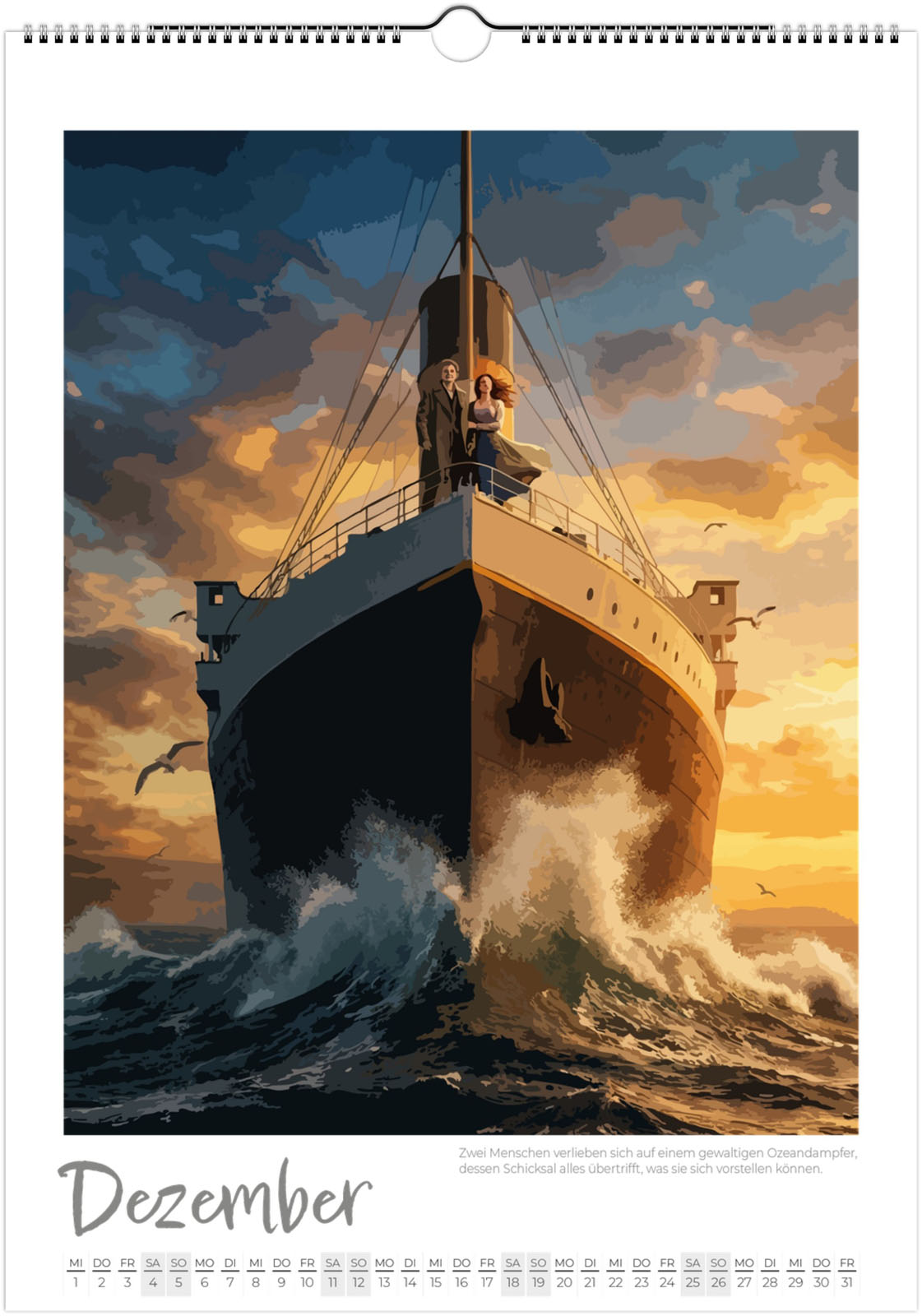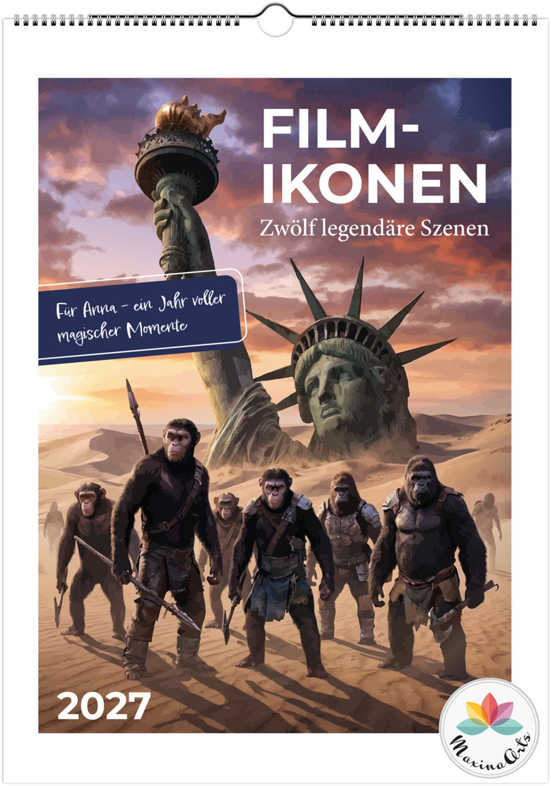 Der Film-Ikonen-Kalender 2027 zeigt 12 poetische und detailreiche Illustrationen, inspiriert von ikonischen Momenten der Filmgeschichte – gestaltet im Stil klassischer Kino-Poster.