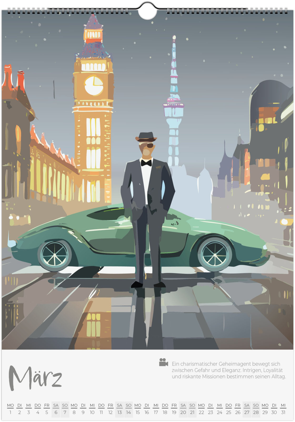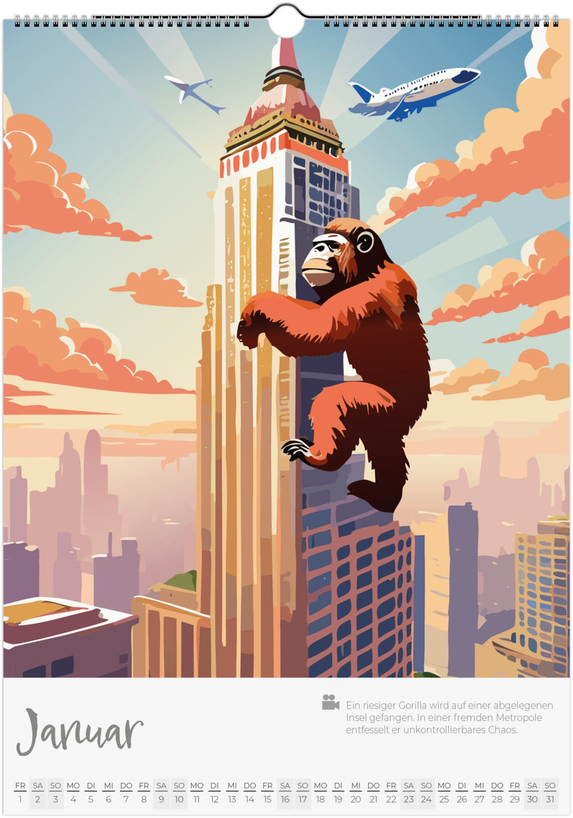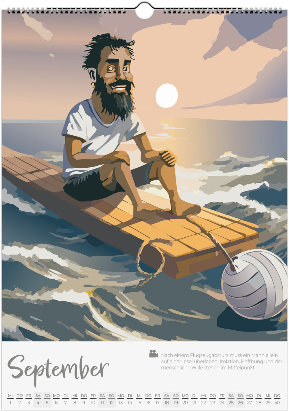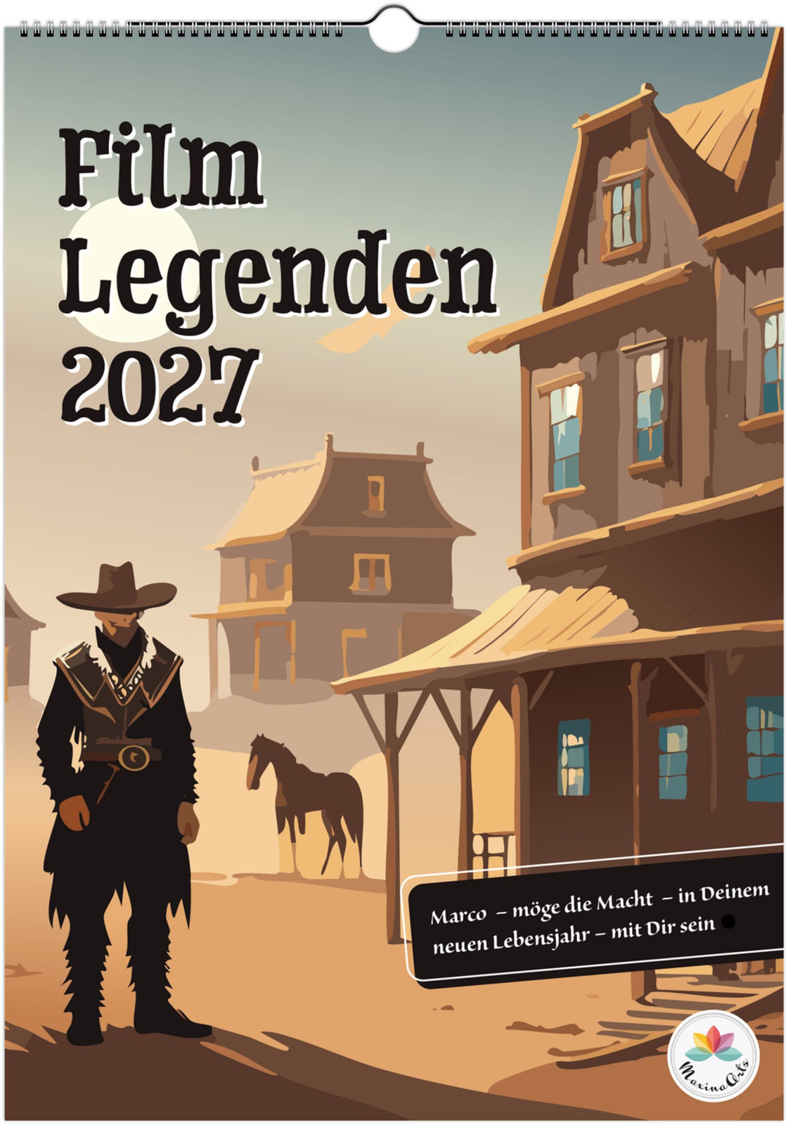 Film-Legenden-Kalender 2027 zeigt 12 detailreiche Illustrationen, inspiriert von der Geschichte des Kinos – im Stil klassischer Filmplakate.