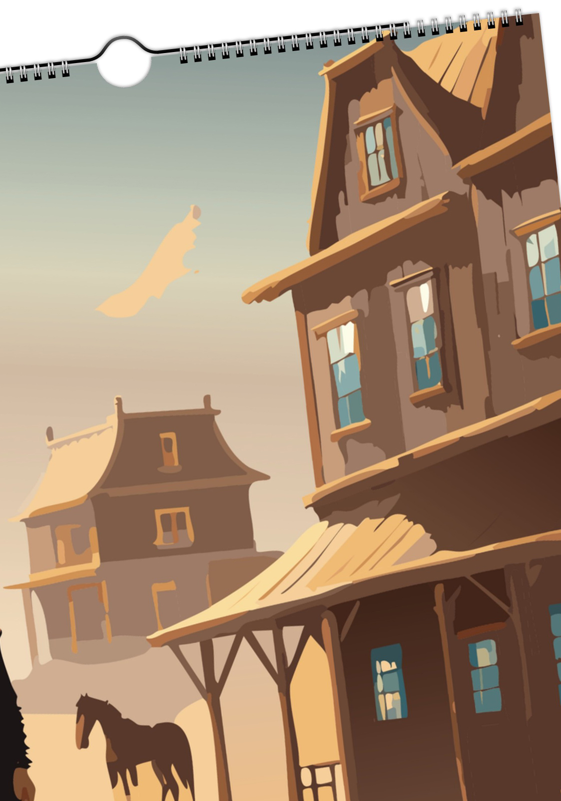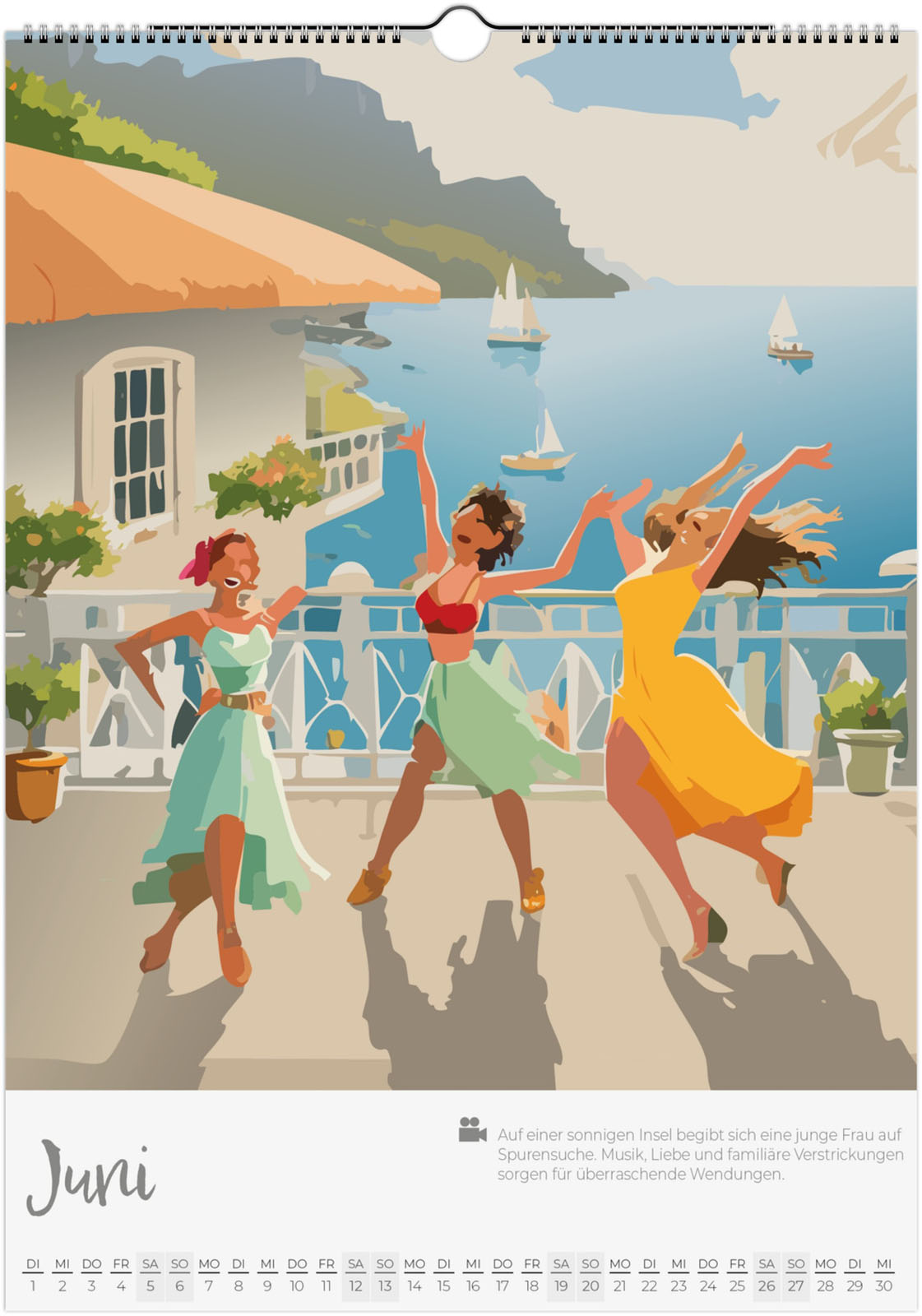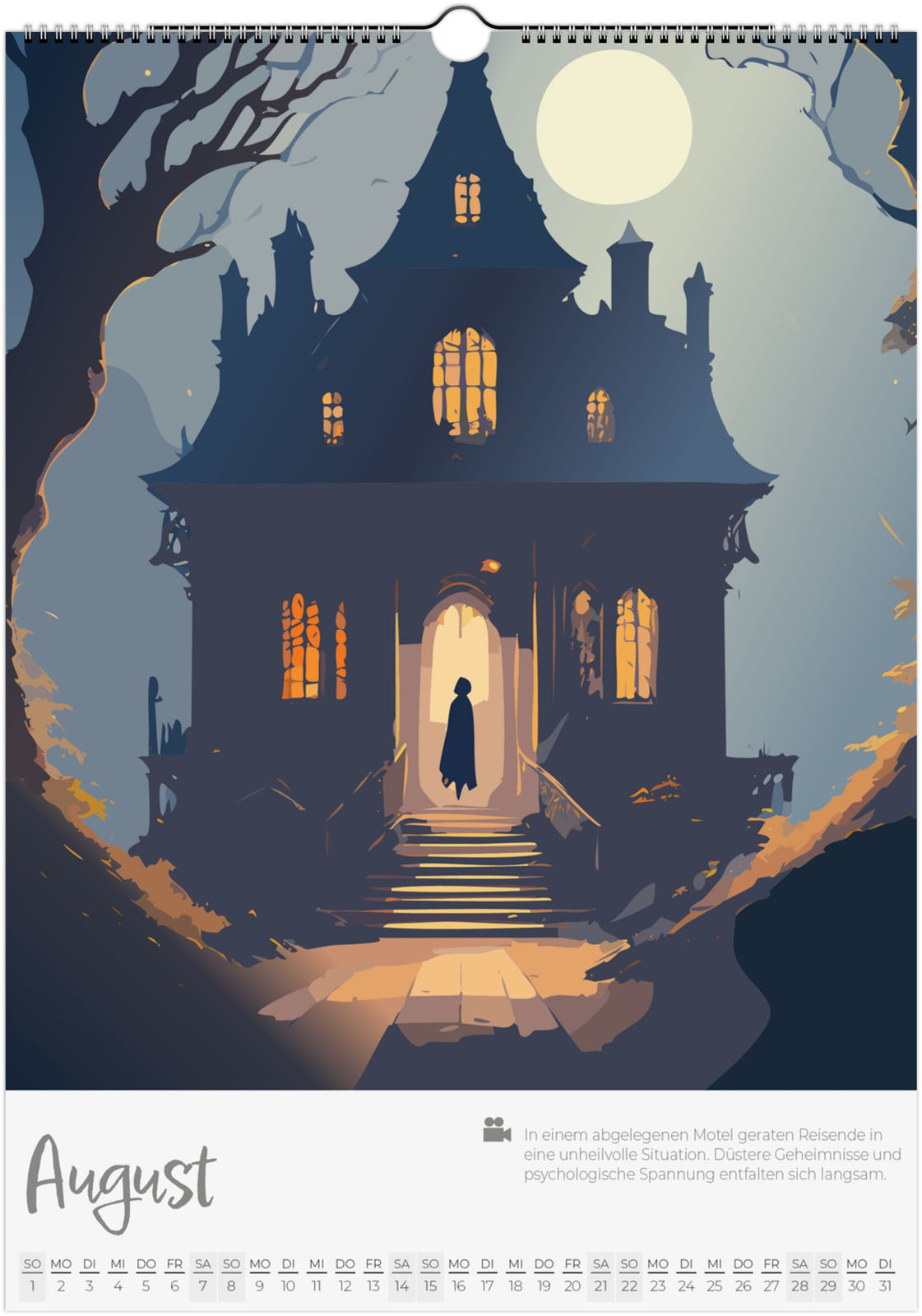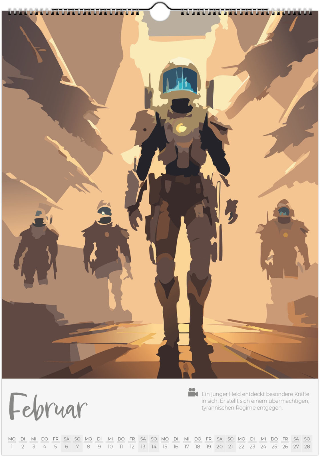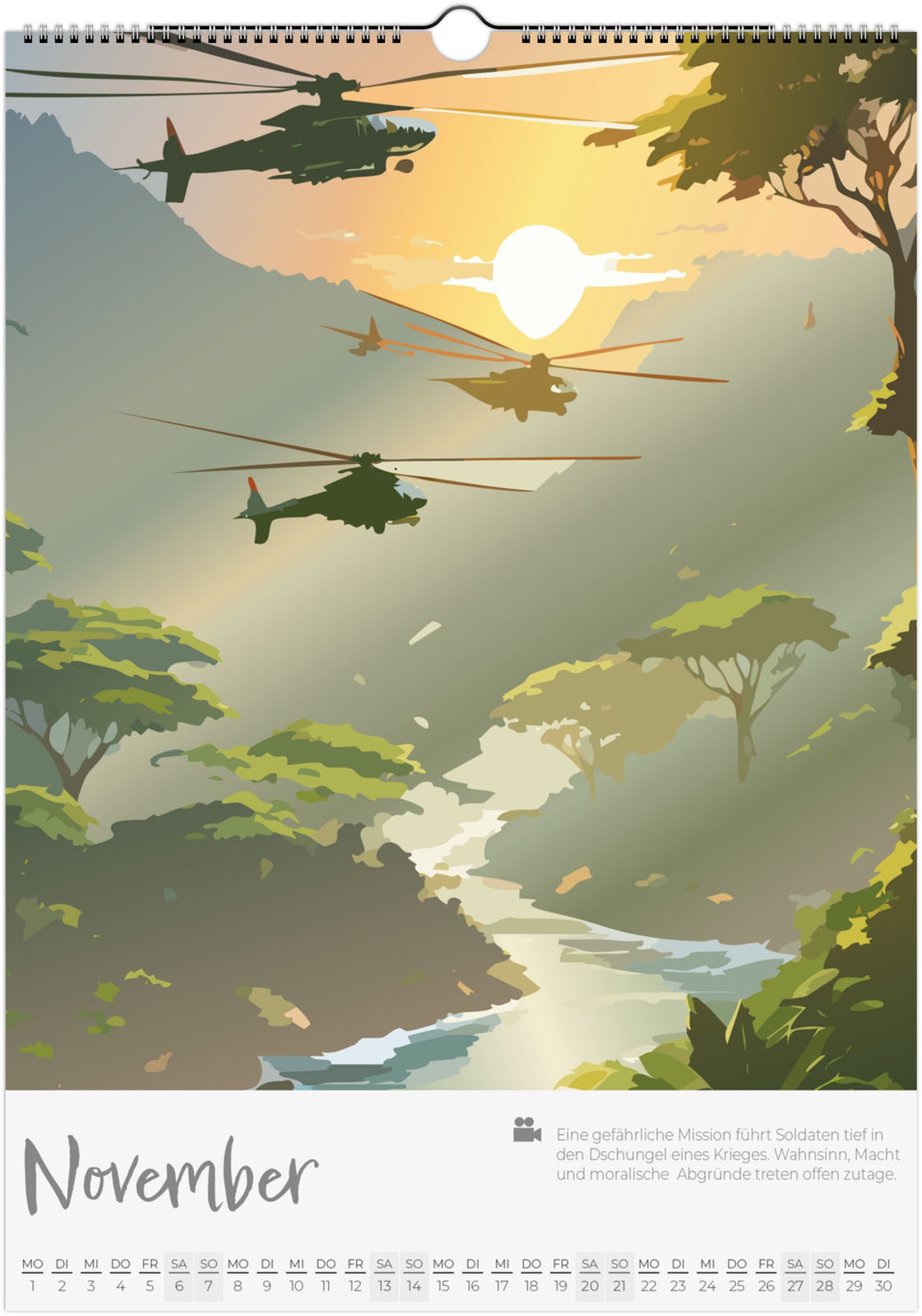 Film-Legenden-Kalender 2027 zeigt 12 detailreiche Illustrationen, inspiriert von der Geschichte des Kinos – im Stil klassischer Filmplakate.