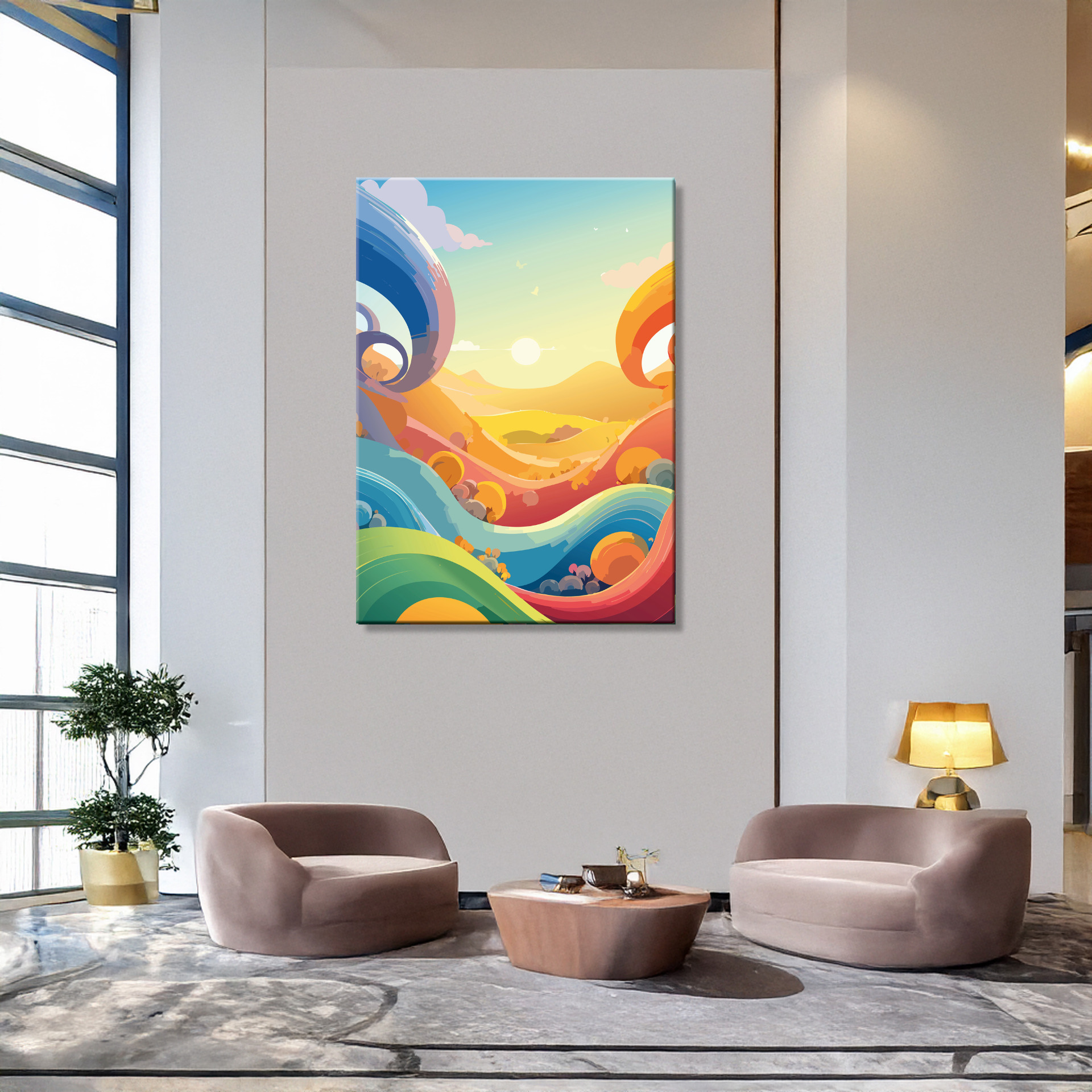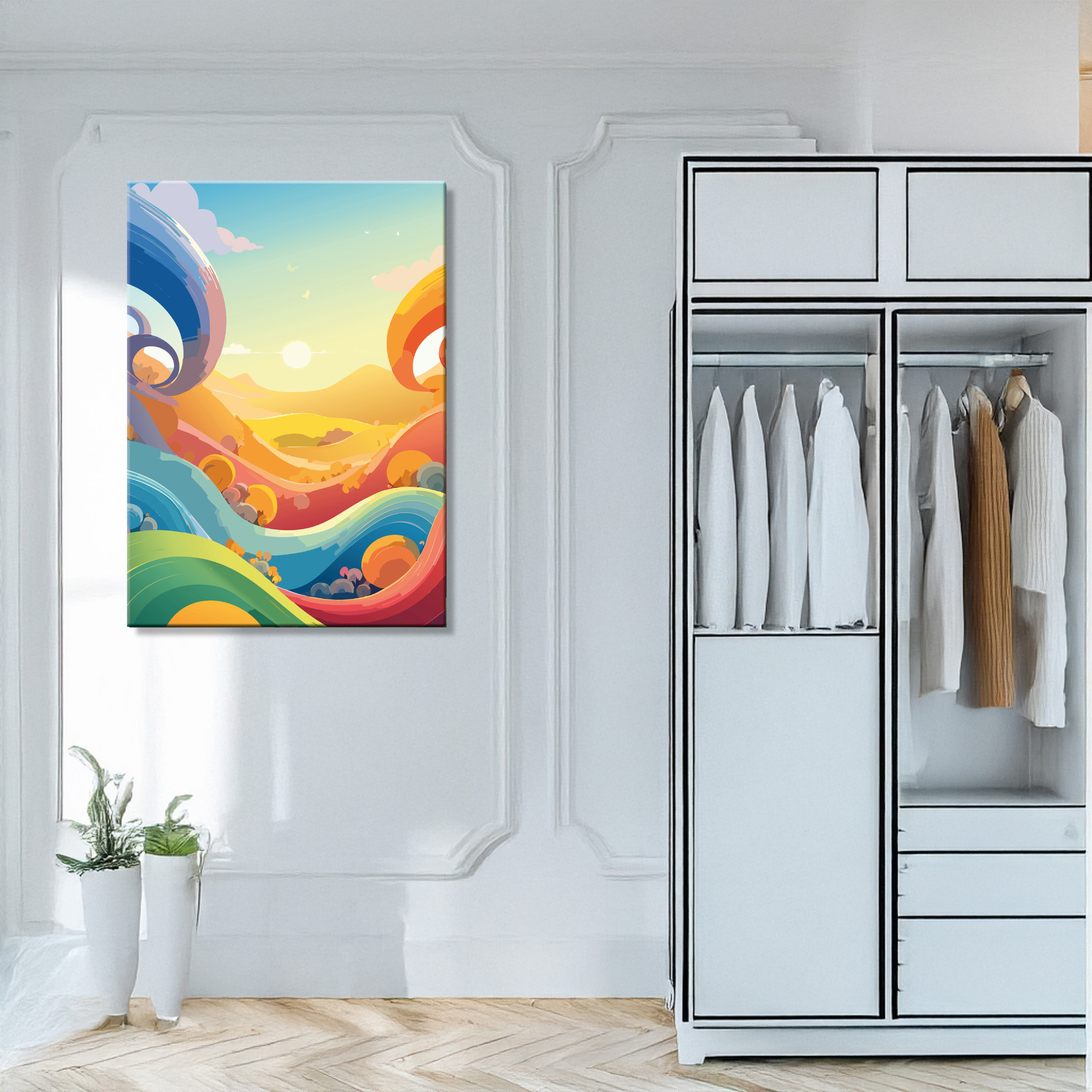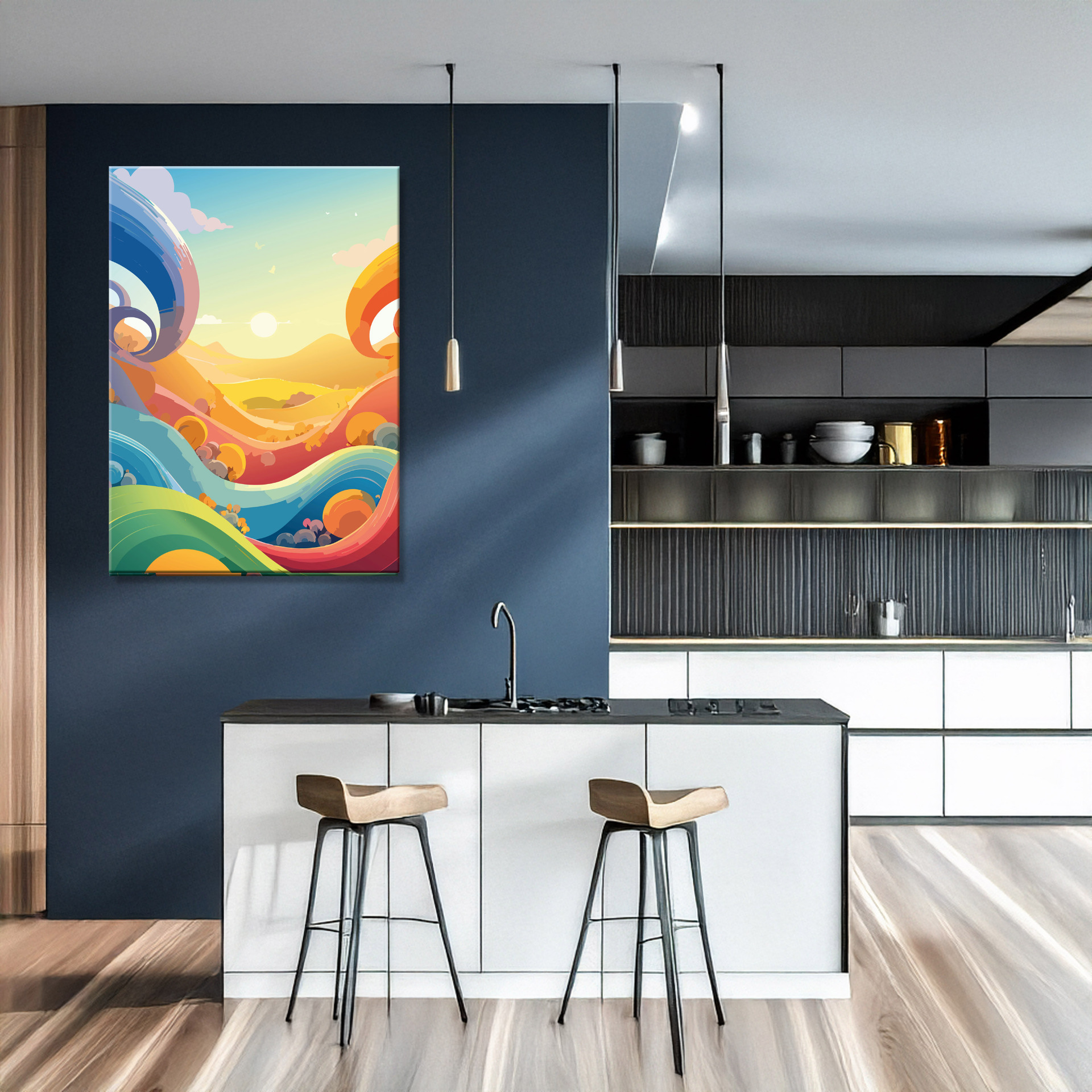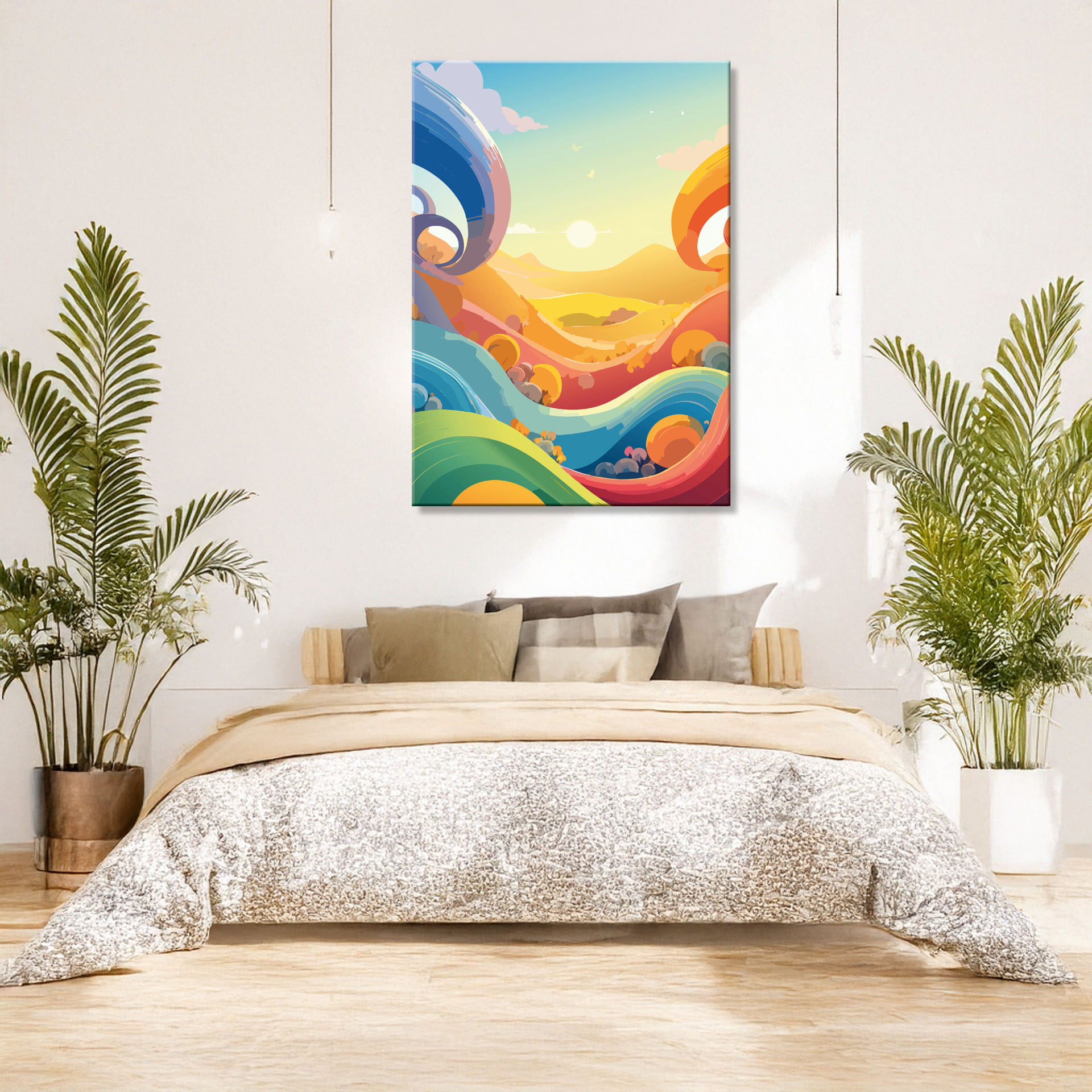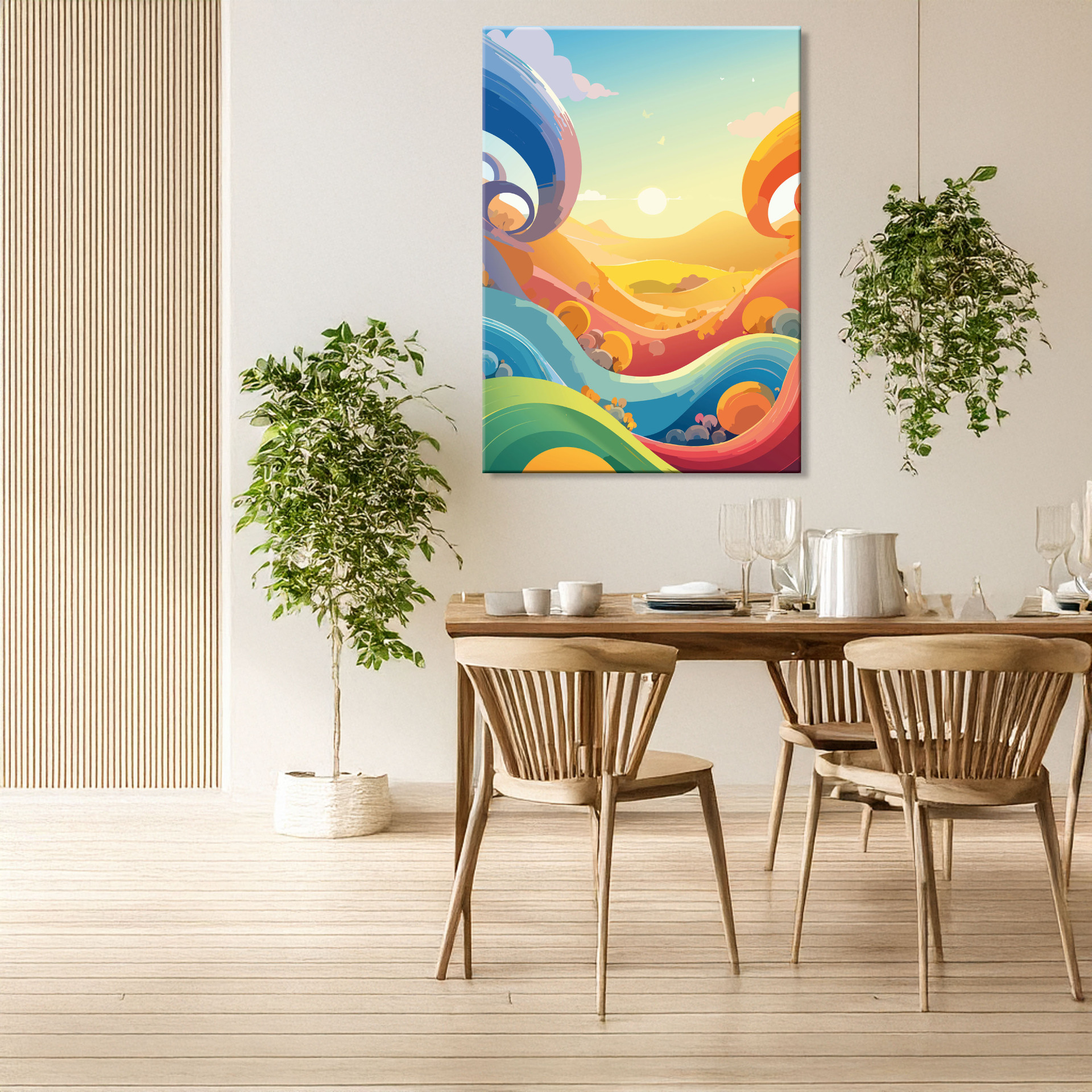 Ein geometrisches Sommerstück in Wellen und sanften Flächen – 'Formen des Sommers' bringt Leichtigkeit und Struktur in deinen Raum. Stilvoll, kreativ und perfekt für alle, die den Sommer nicht nur spüren, sondern auch sehen wollen.