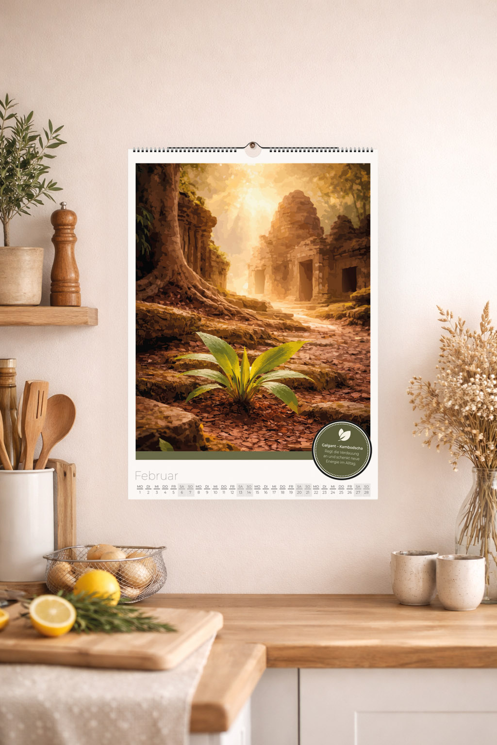 Dieser Heilpflanzen Kalender 2027 zeigt stimmungsvolle Illustrationen und ausgewählte Pflanzen mit ihren Wirkungen – für eine ruhige, inspirierende Atmosphäre.