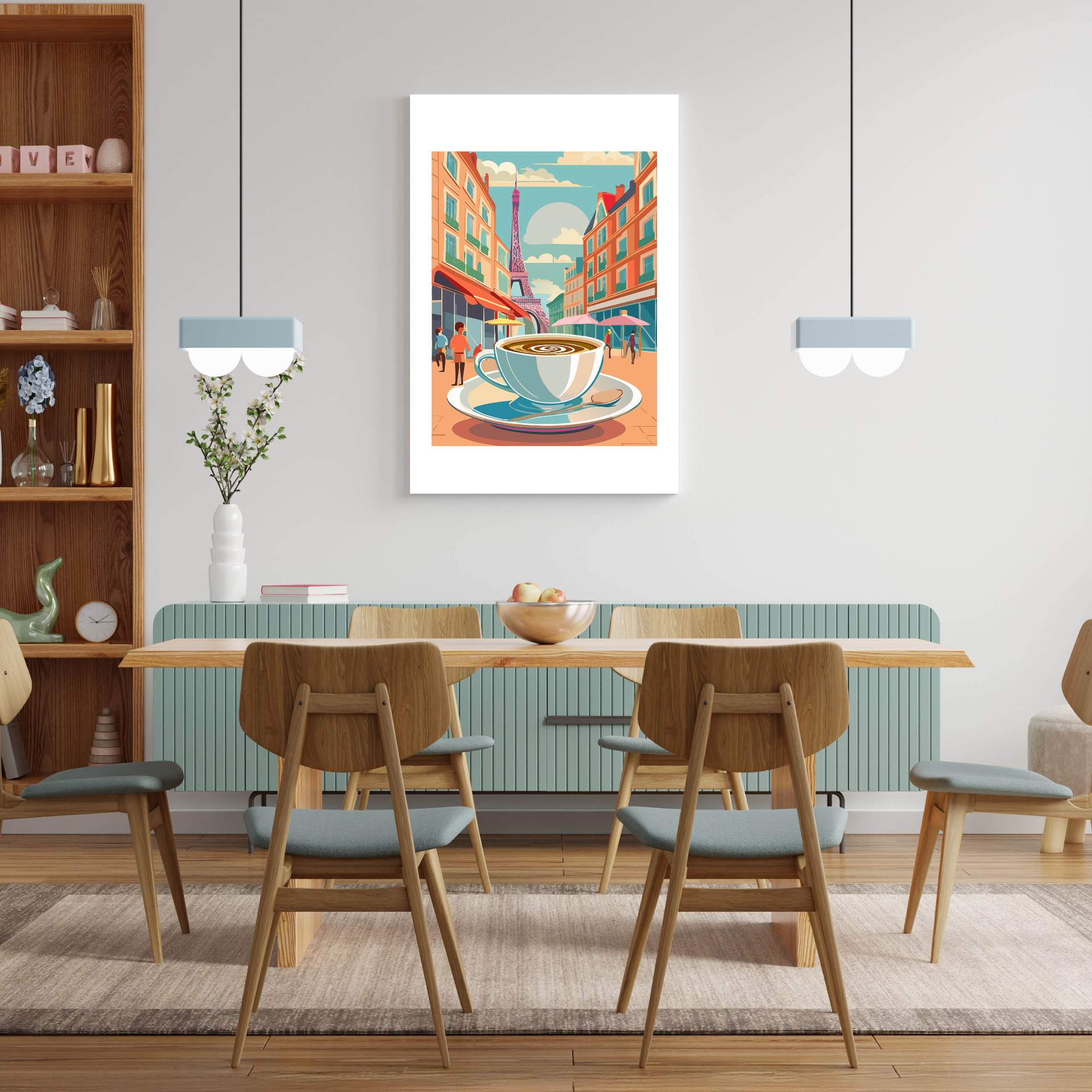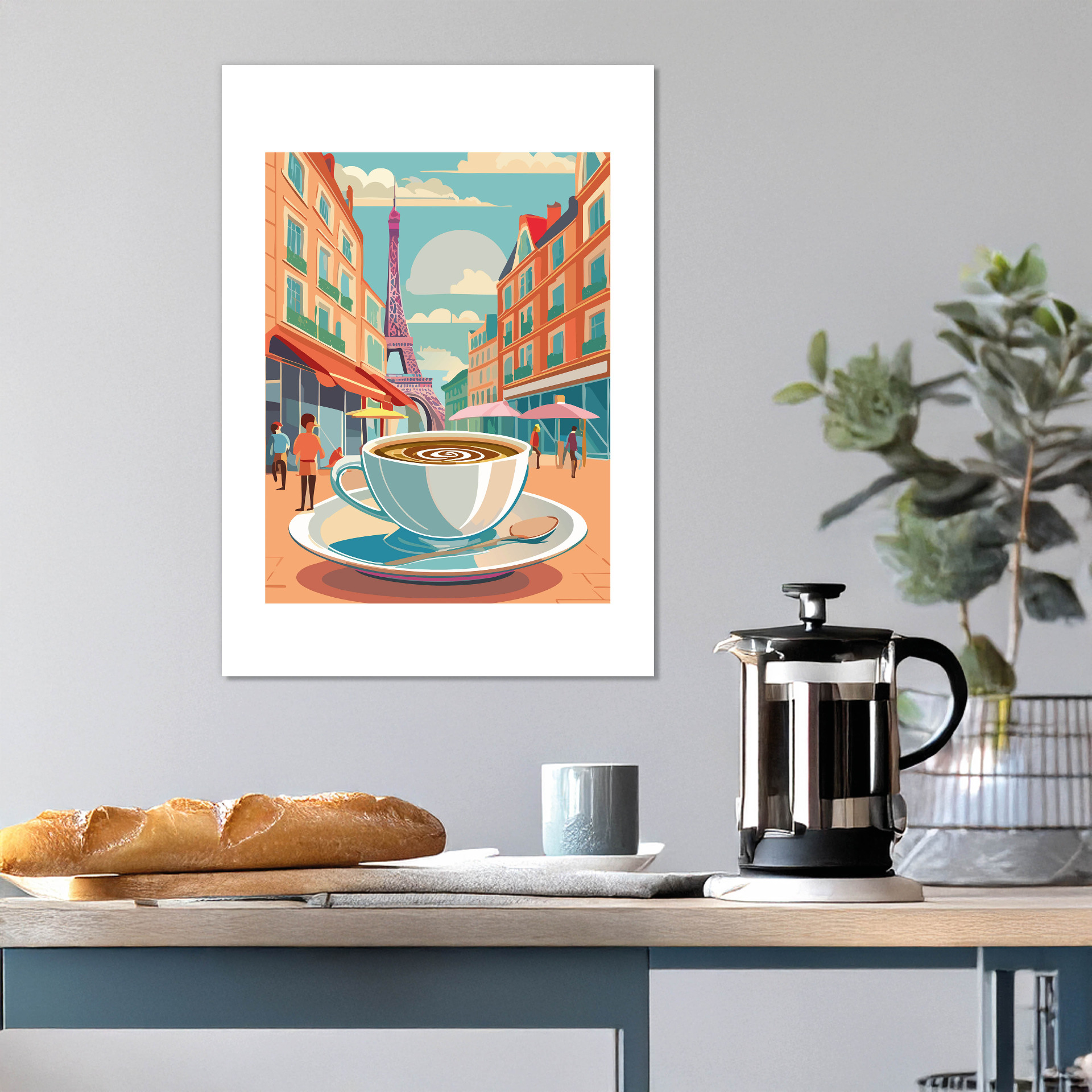 Genieße eine Café au Lait, umgeben vom Charme der Pariser Straßen – ein Motiv, das Stil, Leichtigkeit und französisches Flair in deine Räume bringt.