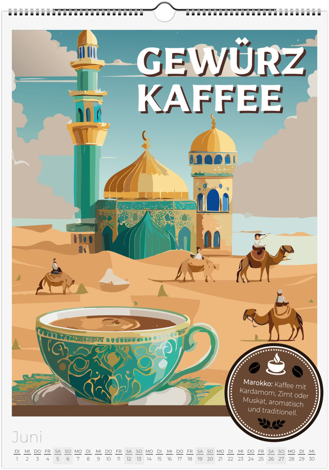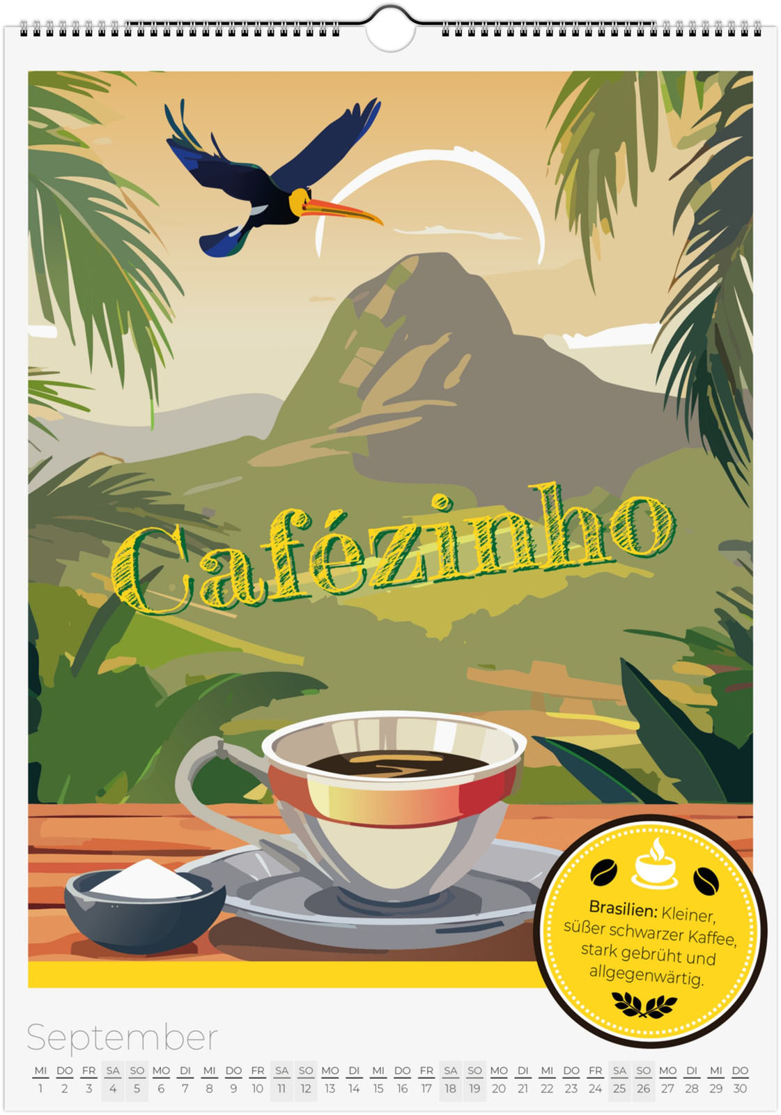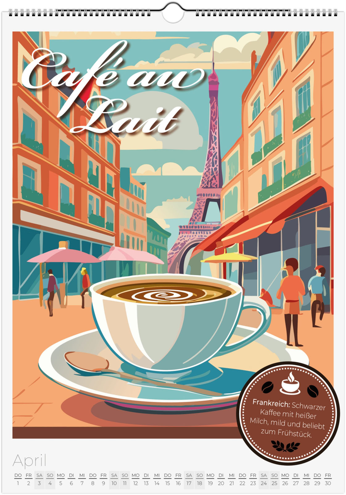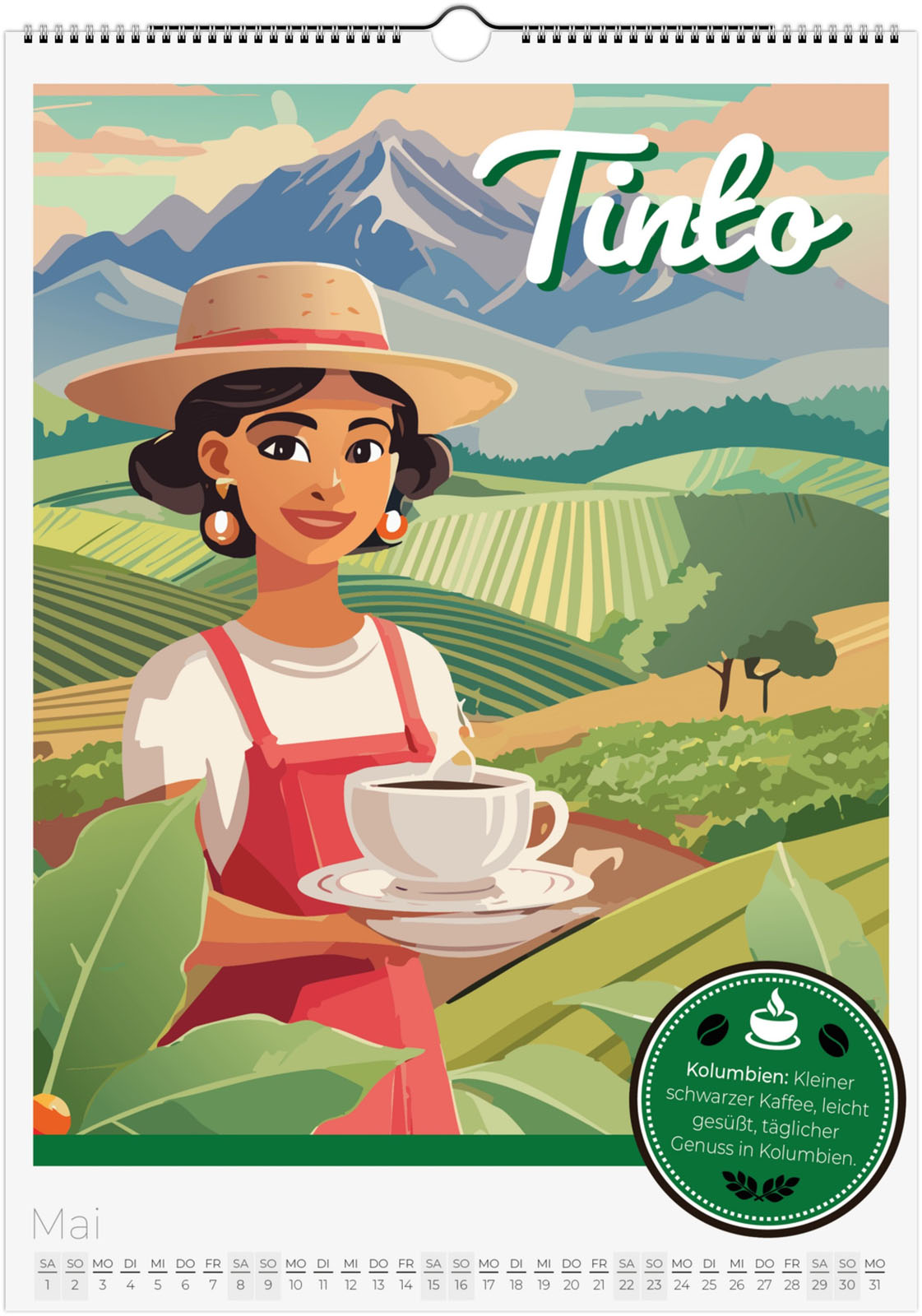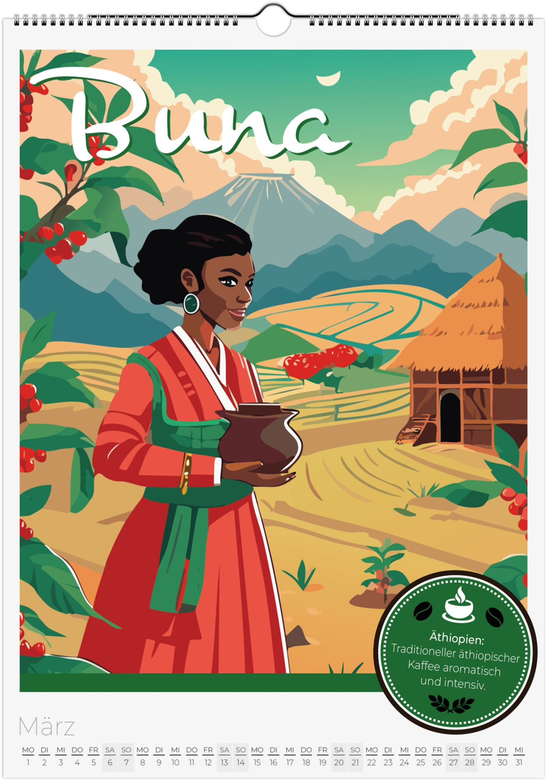 12 Monate voller aromatischer Kaffeemomente aus aller Welt. Jeder Monat zeigt eine besondere Kaffeespezialität im Retro-Poster-Look, inspiriert von Italien, Äthiopien, Japan, Österreich und vielen weiteren Ländern.