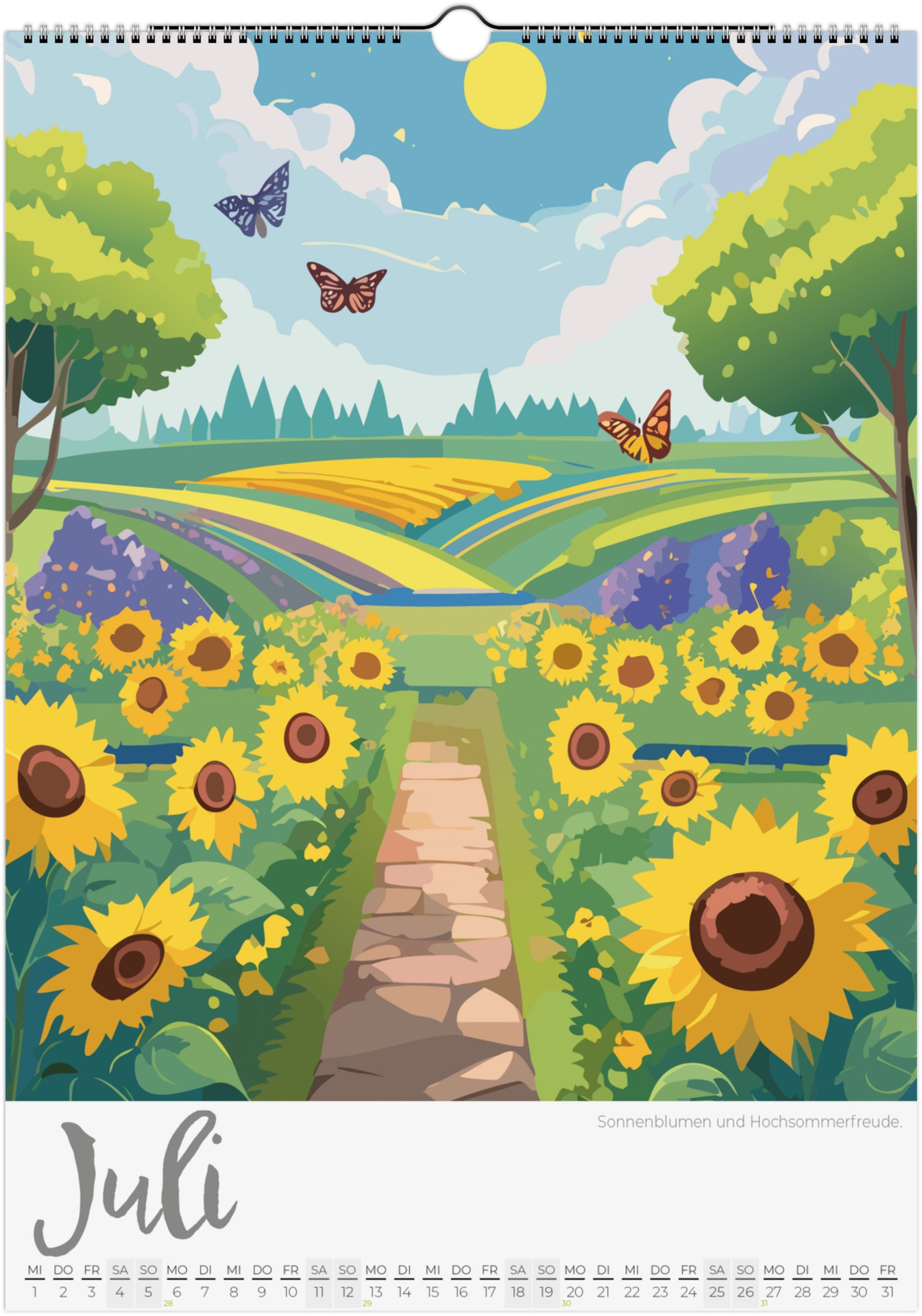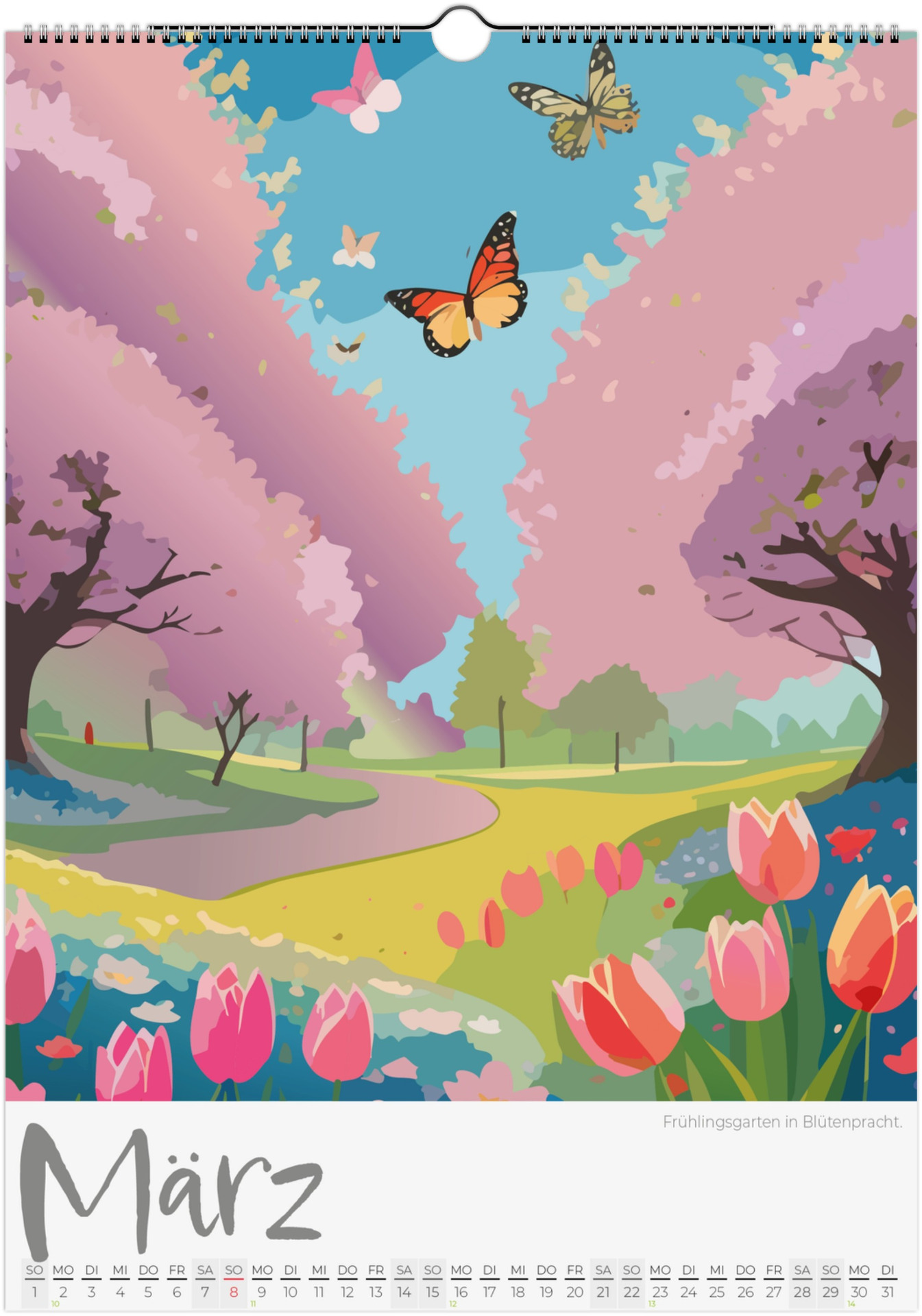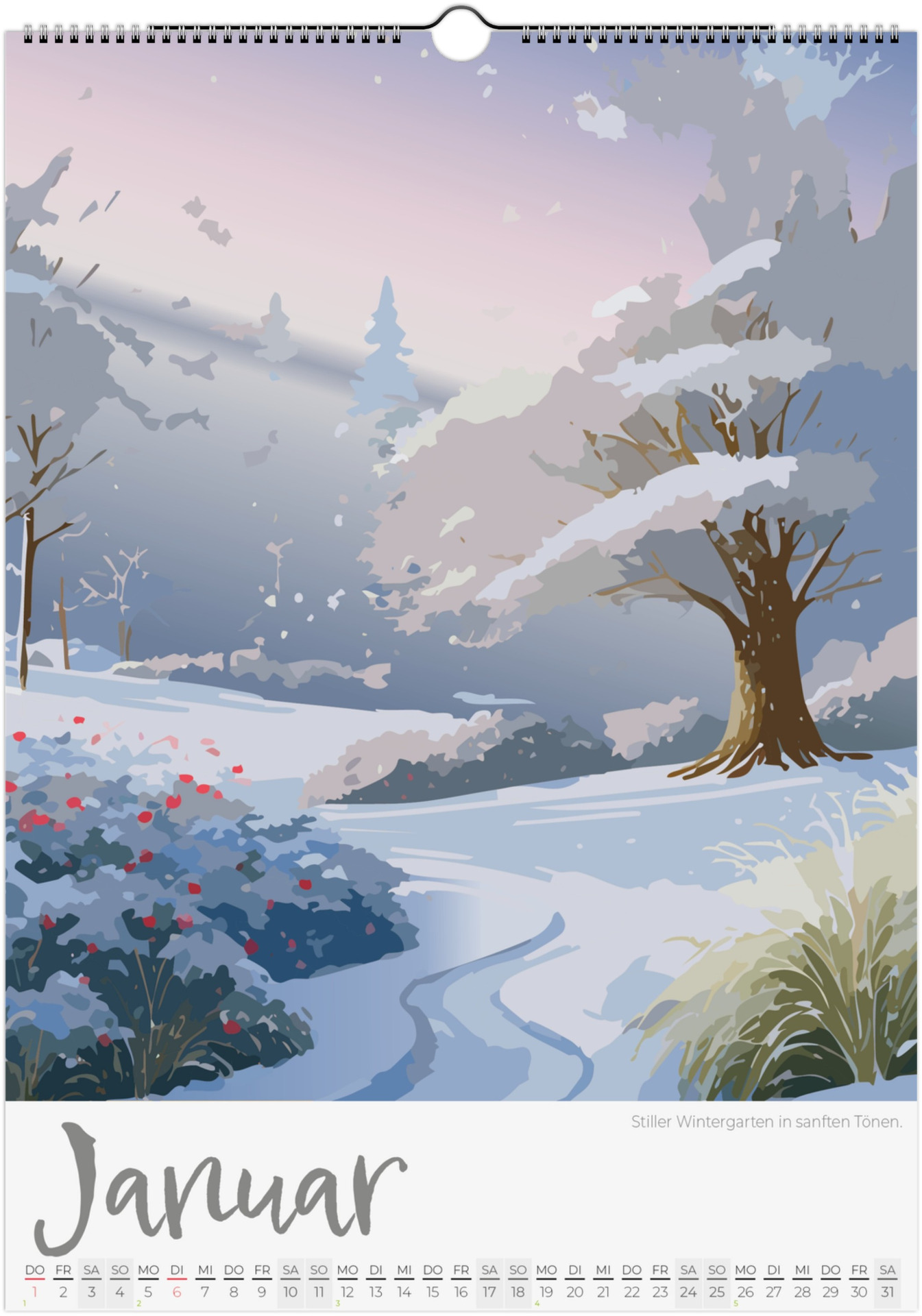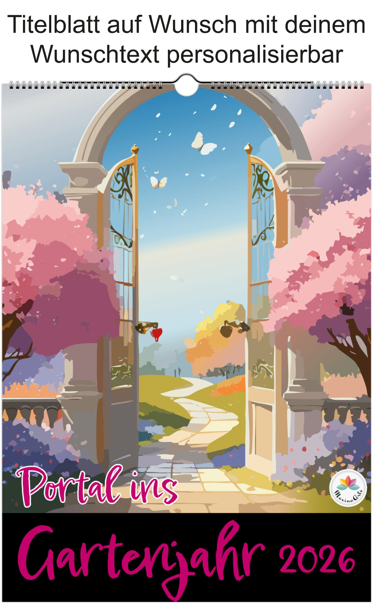 Der Portal ins Gartenjahr Kalender 2026 zeigt 12 liebevoll illustrierte Gartenmotive – von Frühling bis Winter – ein Muss für Gartenliebhaber und Naturfreunde.