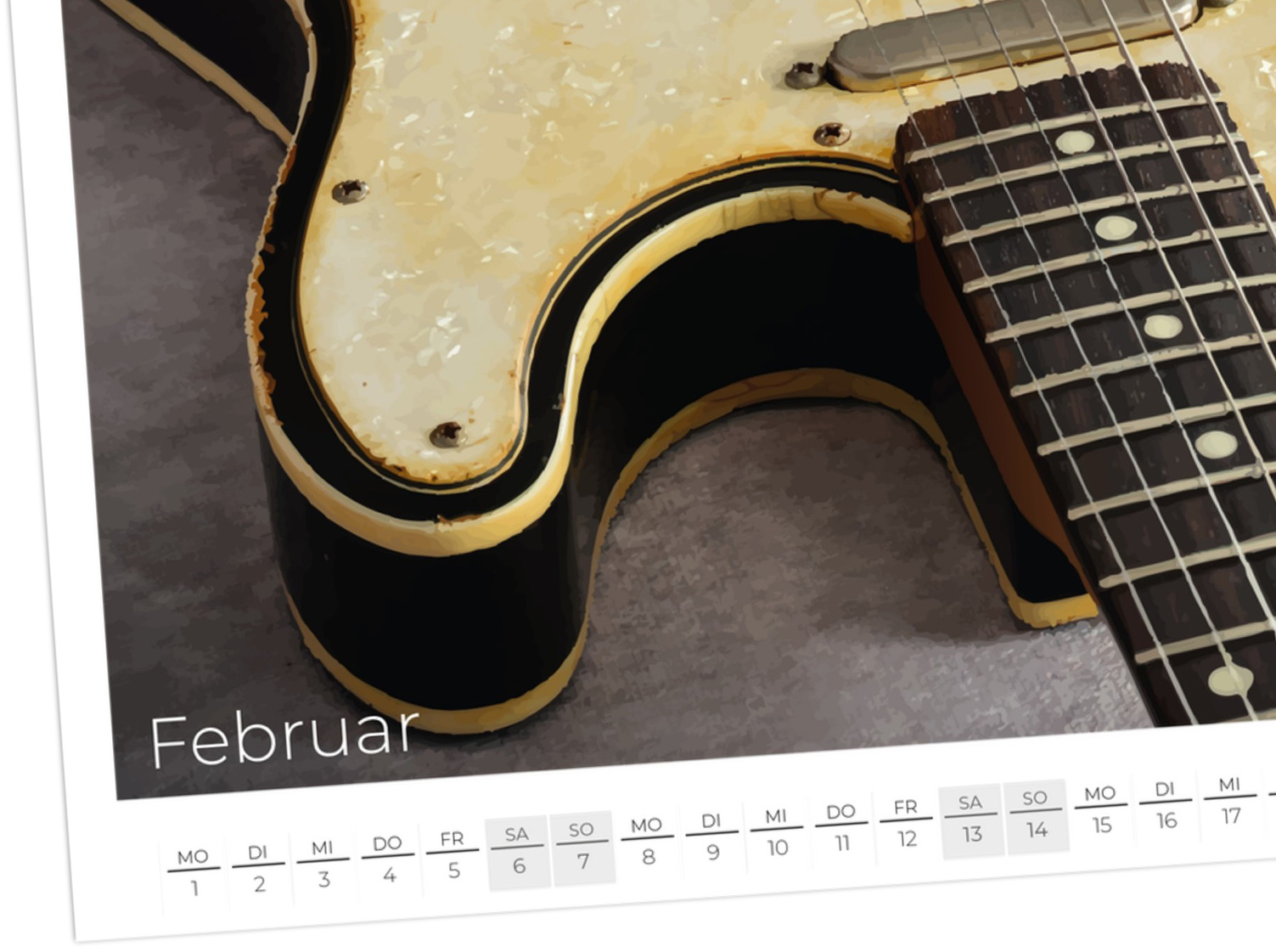 Ein besonderer Wandkalender für alle, die Gitarren, Design und echtes Handwerk lieben.
