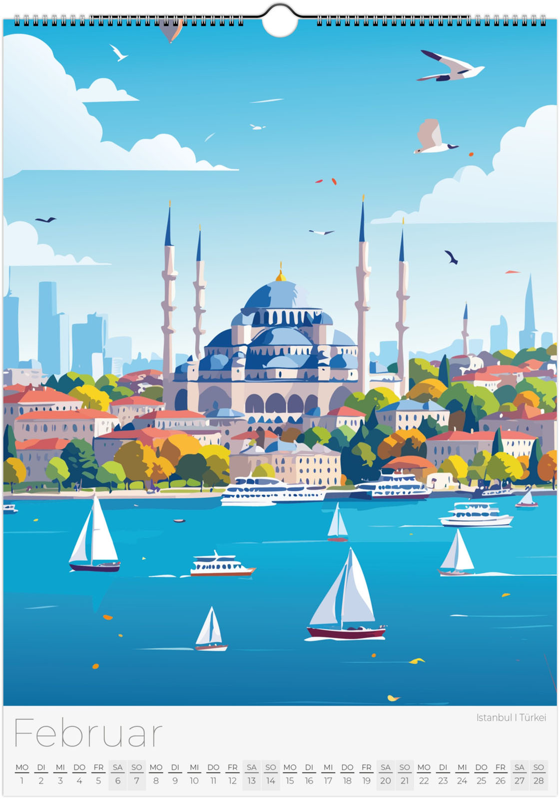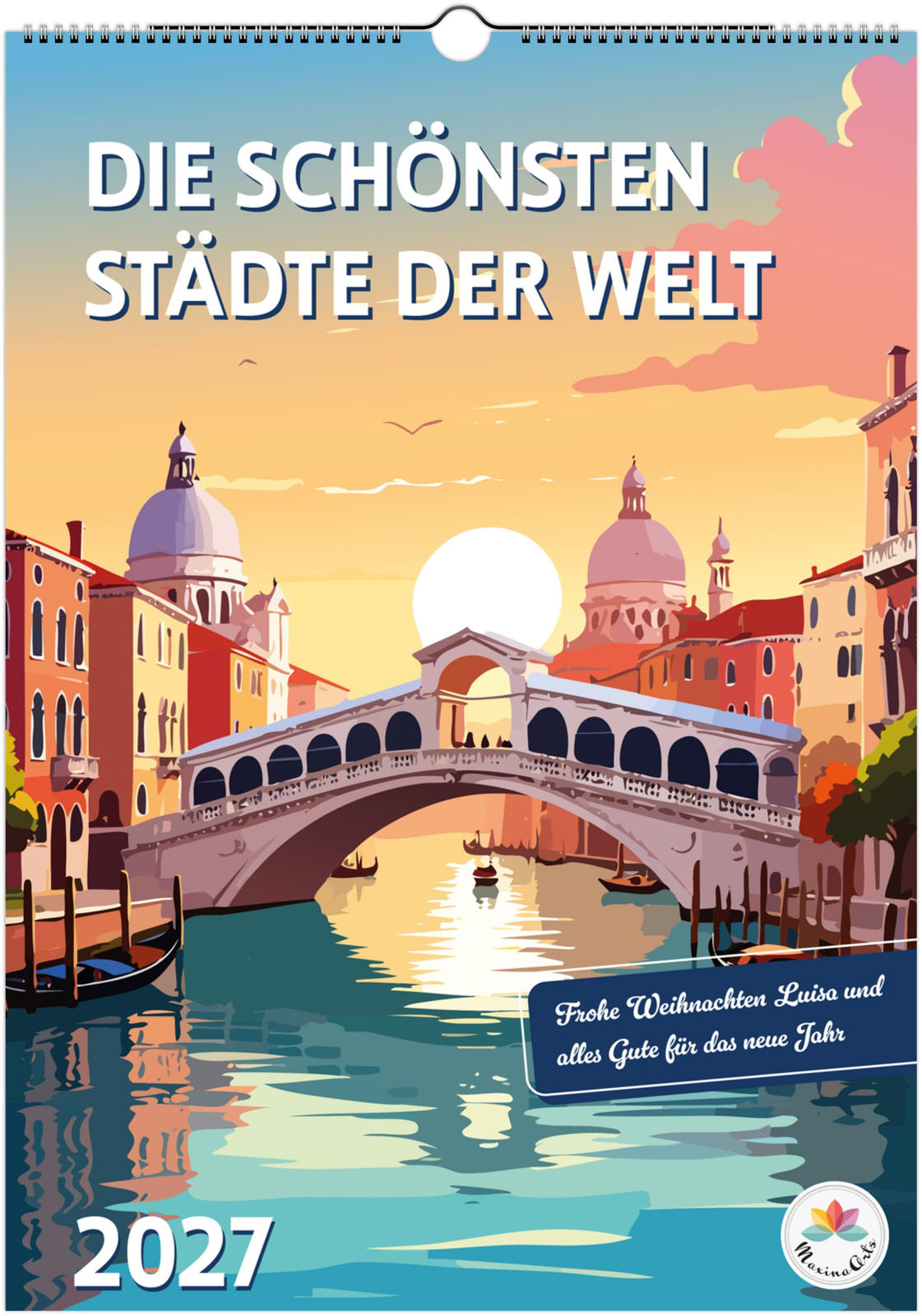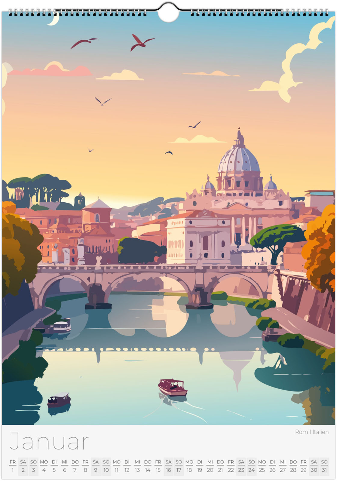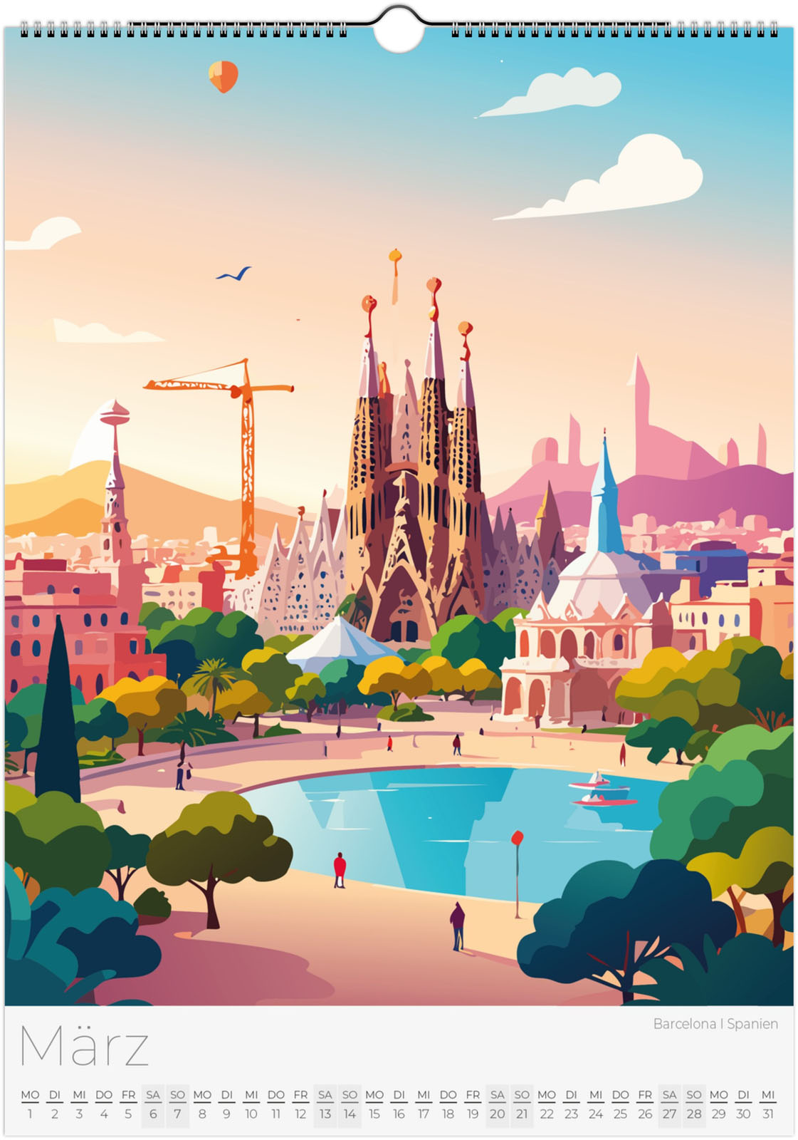 Die schönsten Städte der Welt 2027 zeigt 12 detailreiche Illustrationen internationaler Städte – perfekt für Reisefans, Architektur- und Kulturbegeisterte.