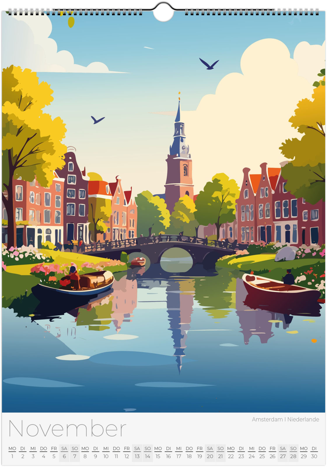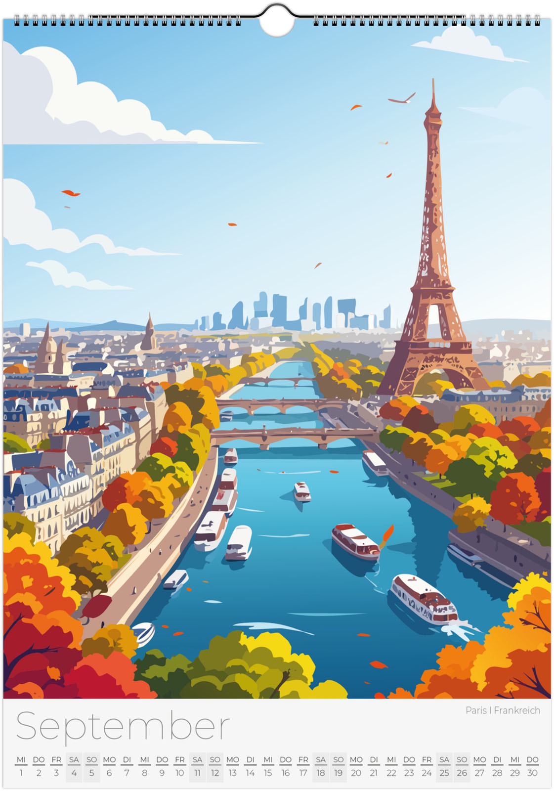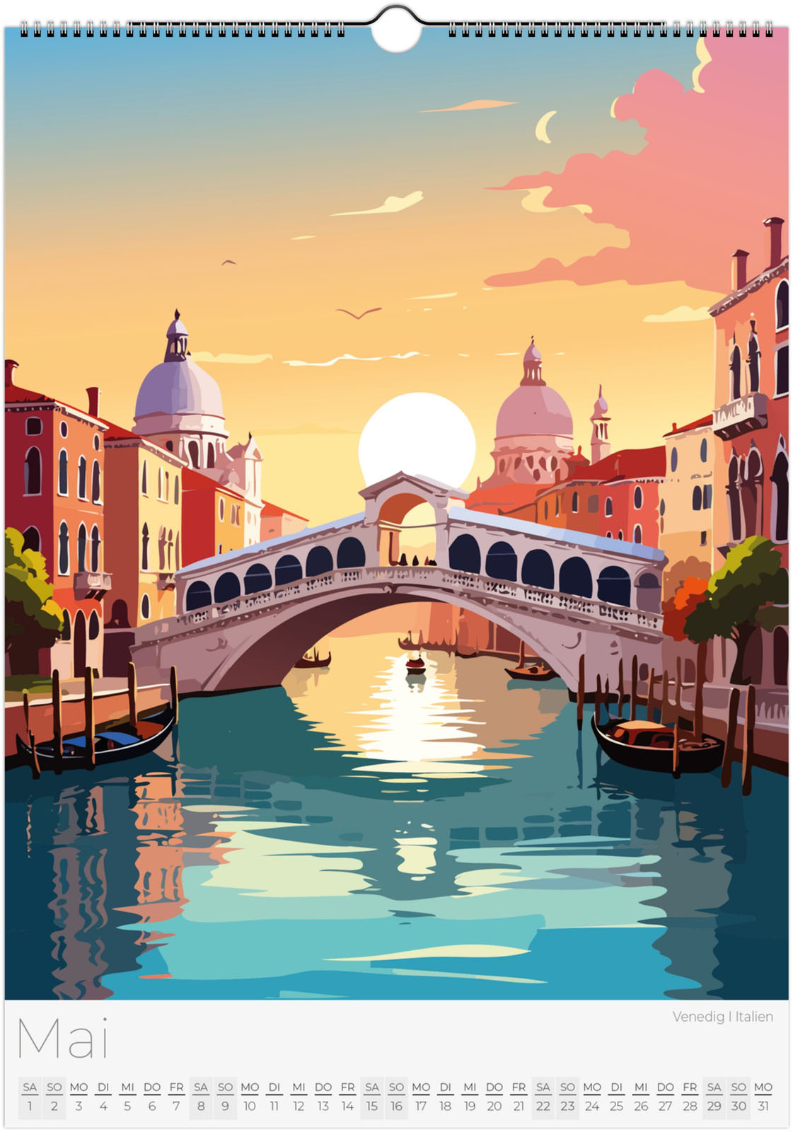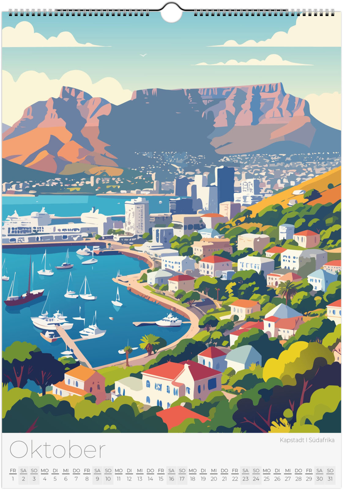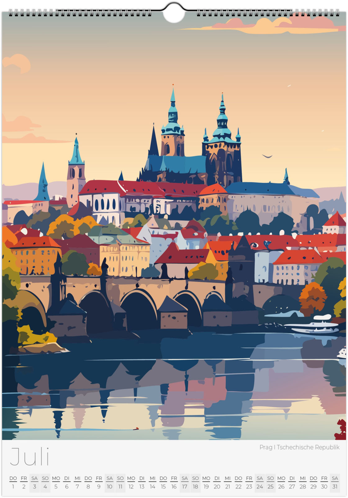 Die schönsten Städte der Welt 2027 zeigt 12 detailreiche Illustrationen internationaler Städte – perfekt für Reisefans, Architektur- und Kulturbegeisterte.