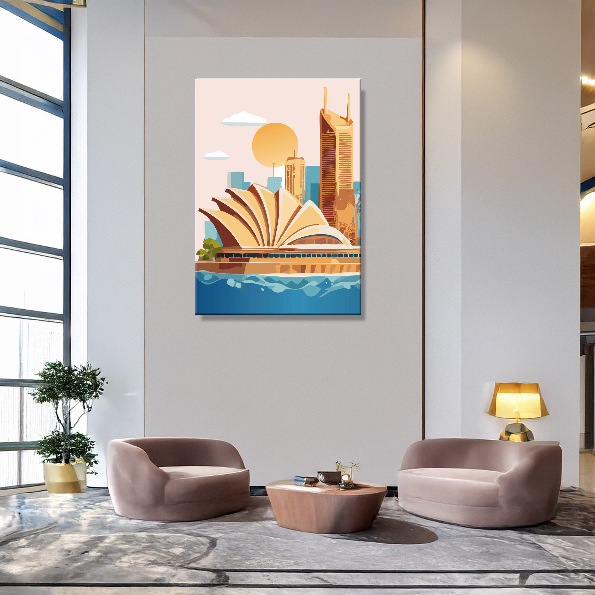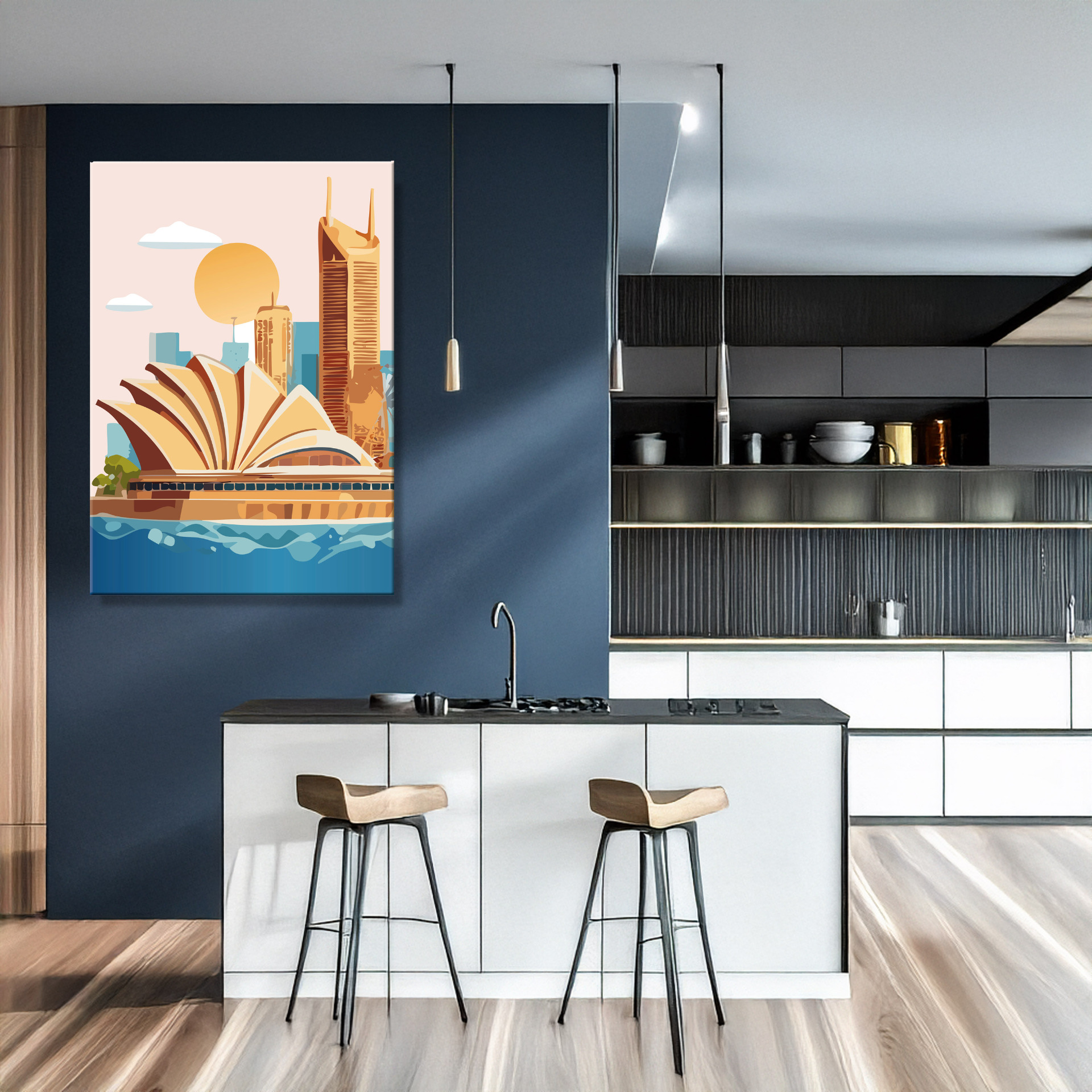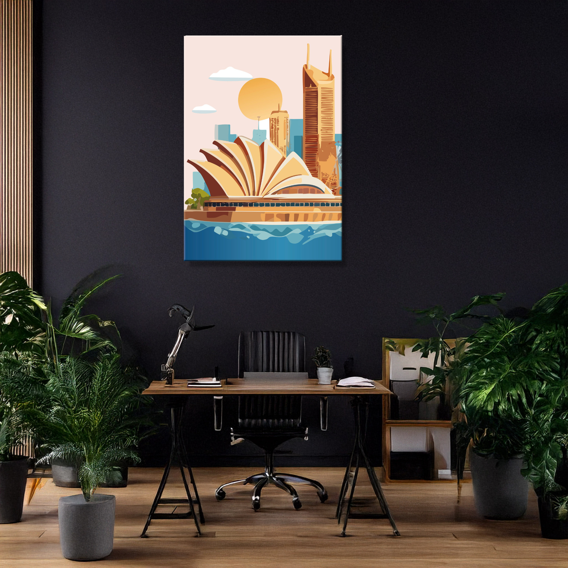 Ein Blick auf das pulsierende Herz Australiens – "Sydney, Australien" fängt Skyline, Hafenlicht und Metropolenflair ein. Dieses Kunstwerk bringt urbane Weite und stilvolle Energie in jeden Raum. In verschiedenen Größen verfügbar.