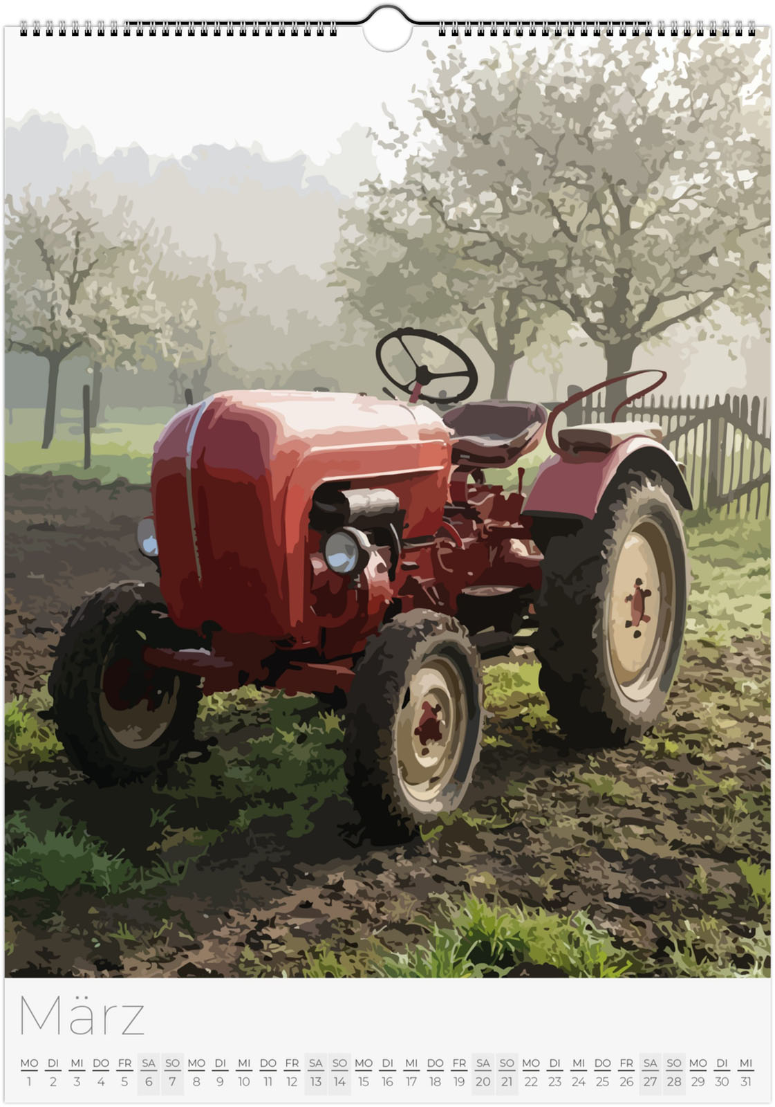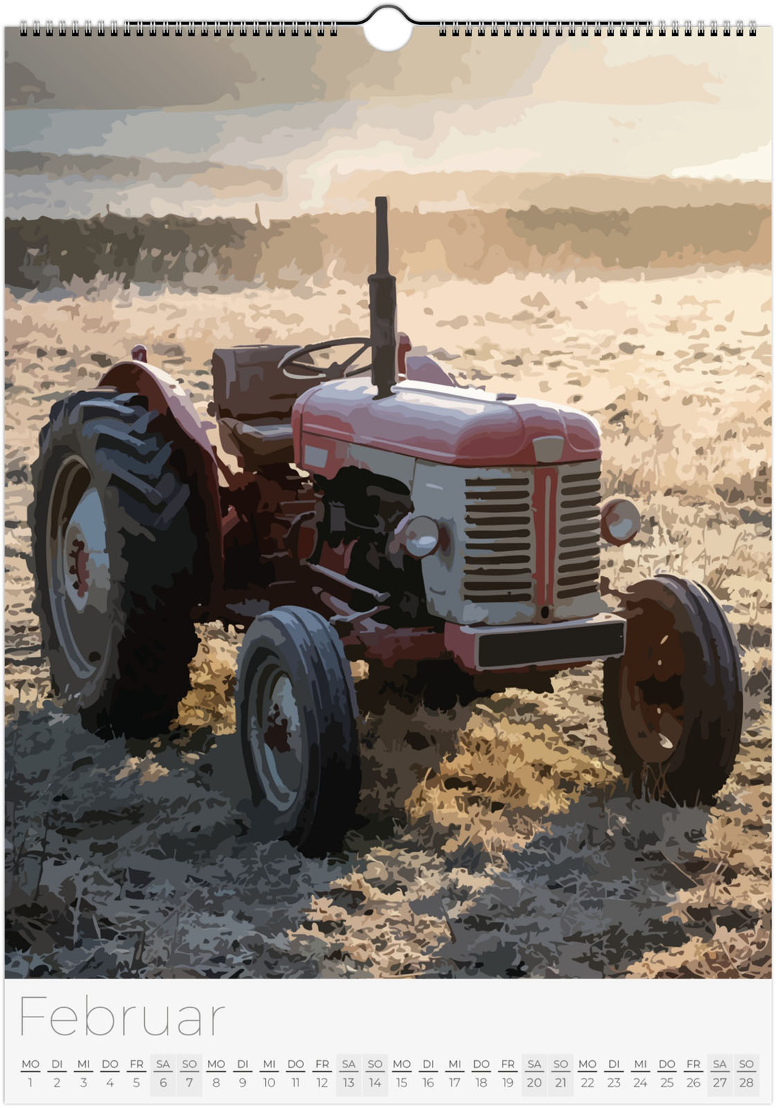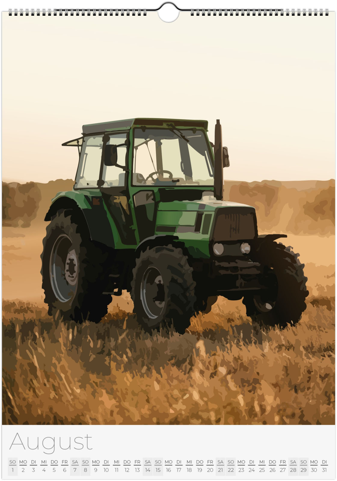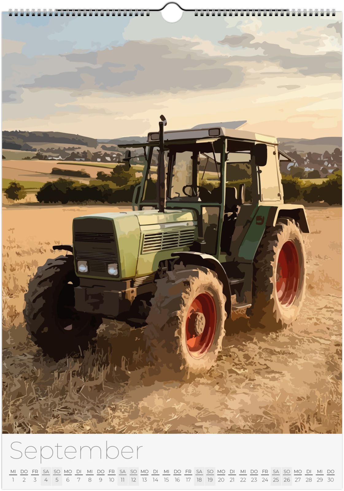 Der Traktor Kalender 2027 – Vintage Oldtimer Traktoren zeigt 12 detailreiche Illustrationen von klassischen und modernen Traktoren in verschiedenen Landschaften. Ideal für Traktor-Fans, Landwirtschaftsbegeisterte und Liebhaber historischer Oldtimer.