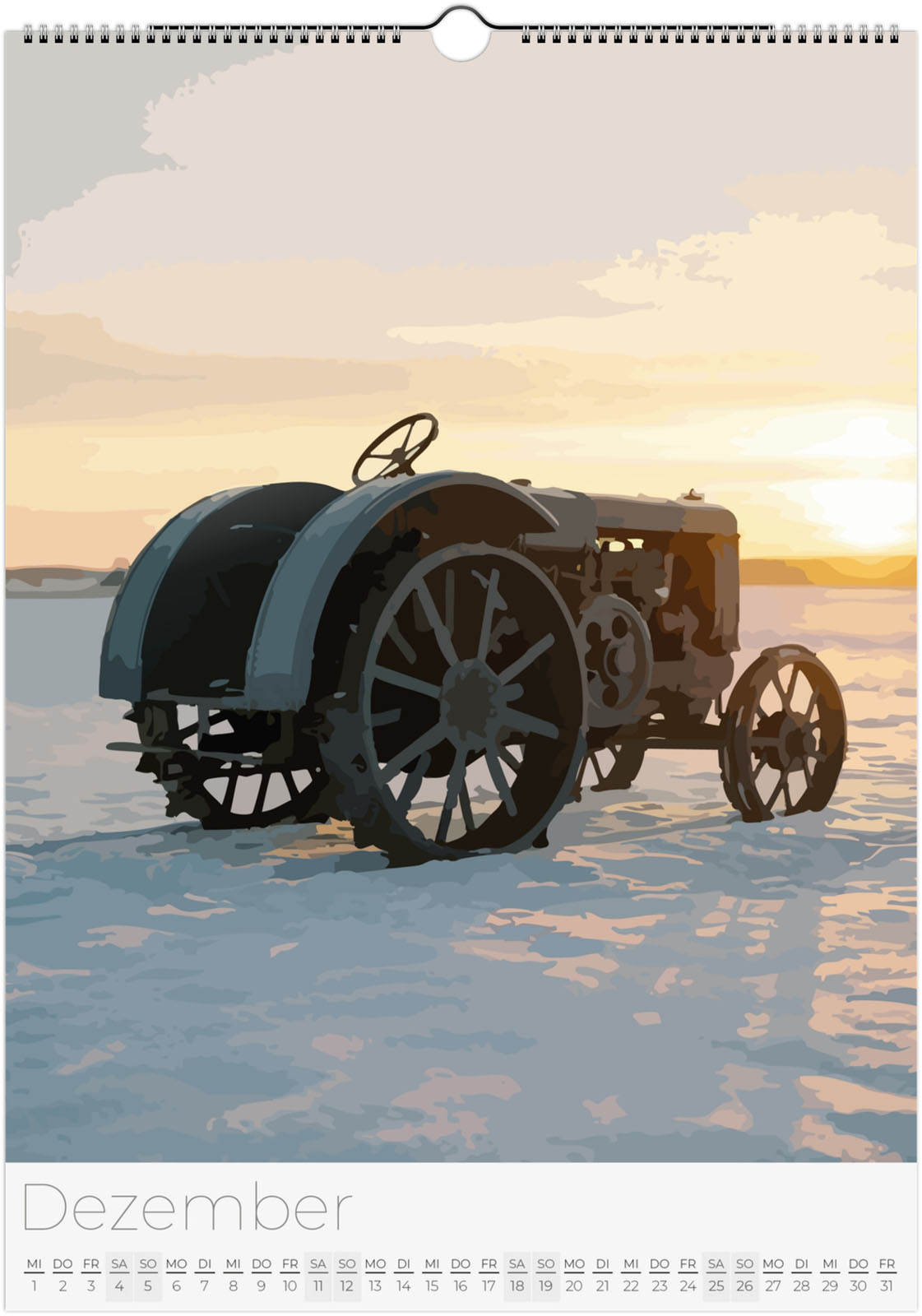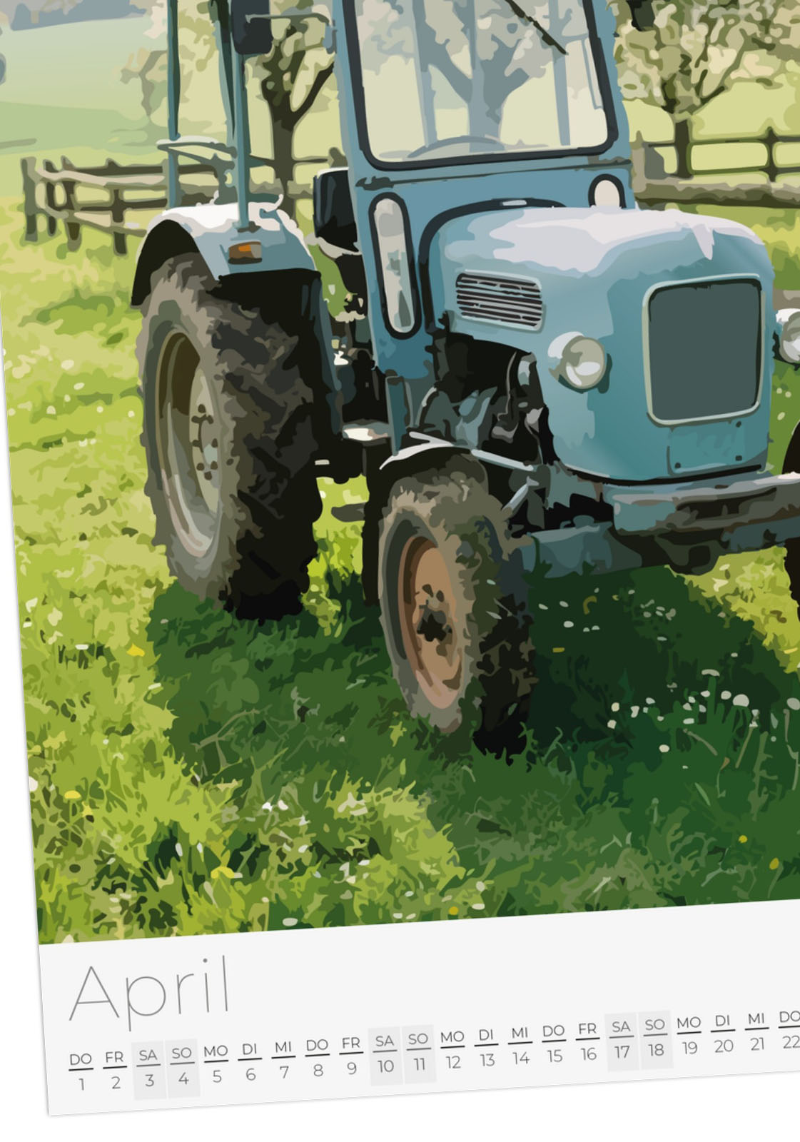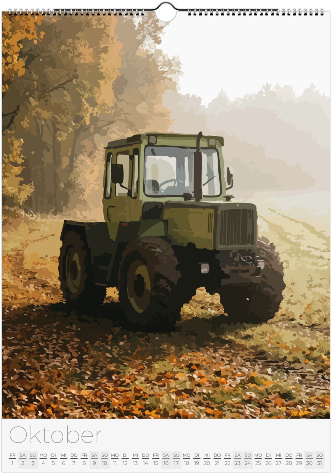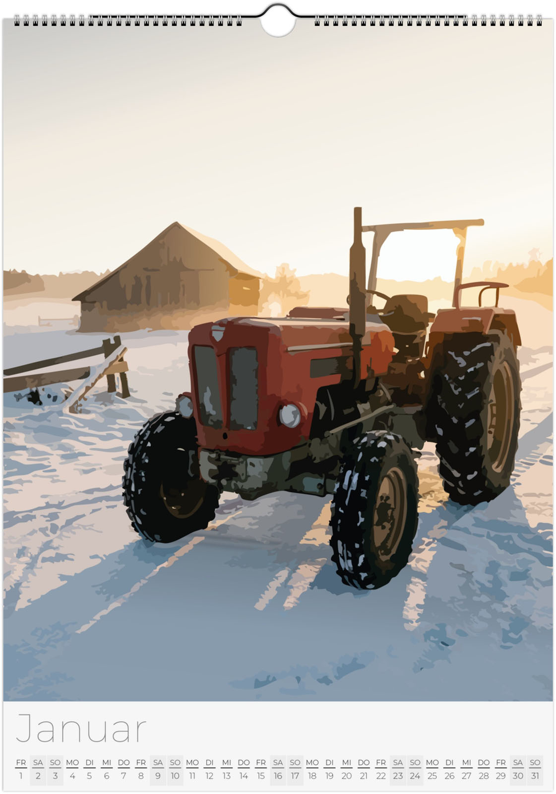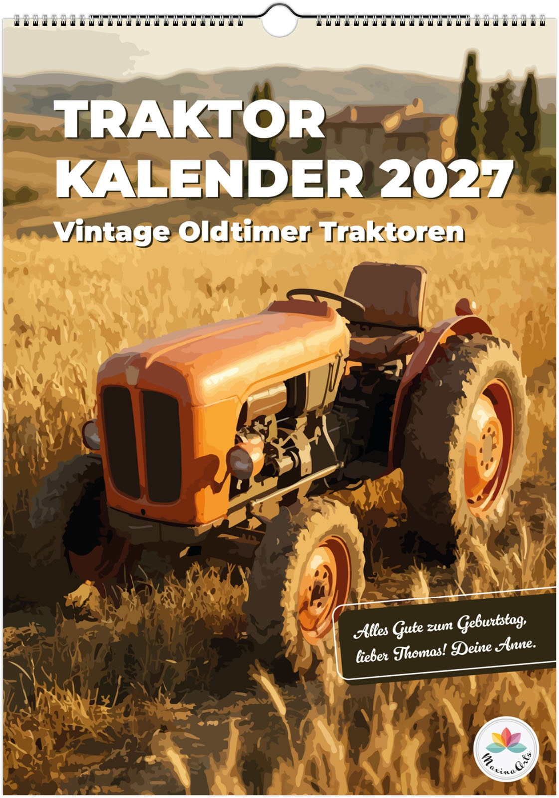 Der Traktor Kalender 2027 – Vintage Oldtimer Traktoren zeigt 12 detailreiche Illustrationen von klassischen und modernen Traktoren in verschiedenen Landschaften. Ideal für Traktor-Fans, Landwirtschaftsbegeisterte und Liebhaber historischer Oldtimer.