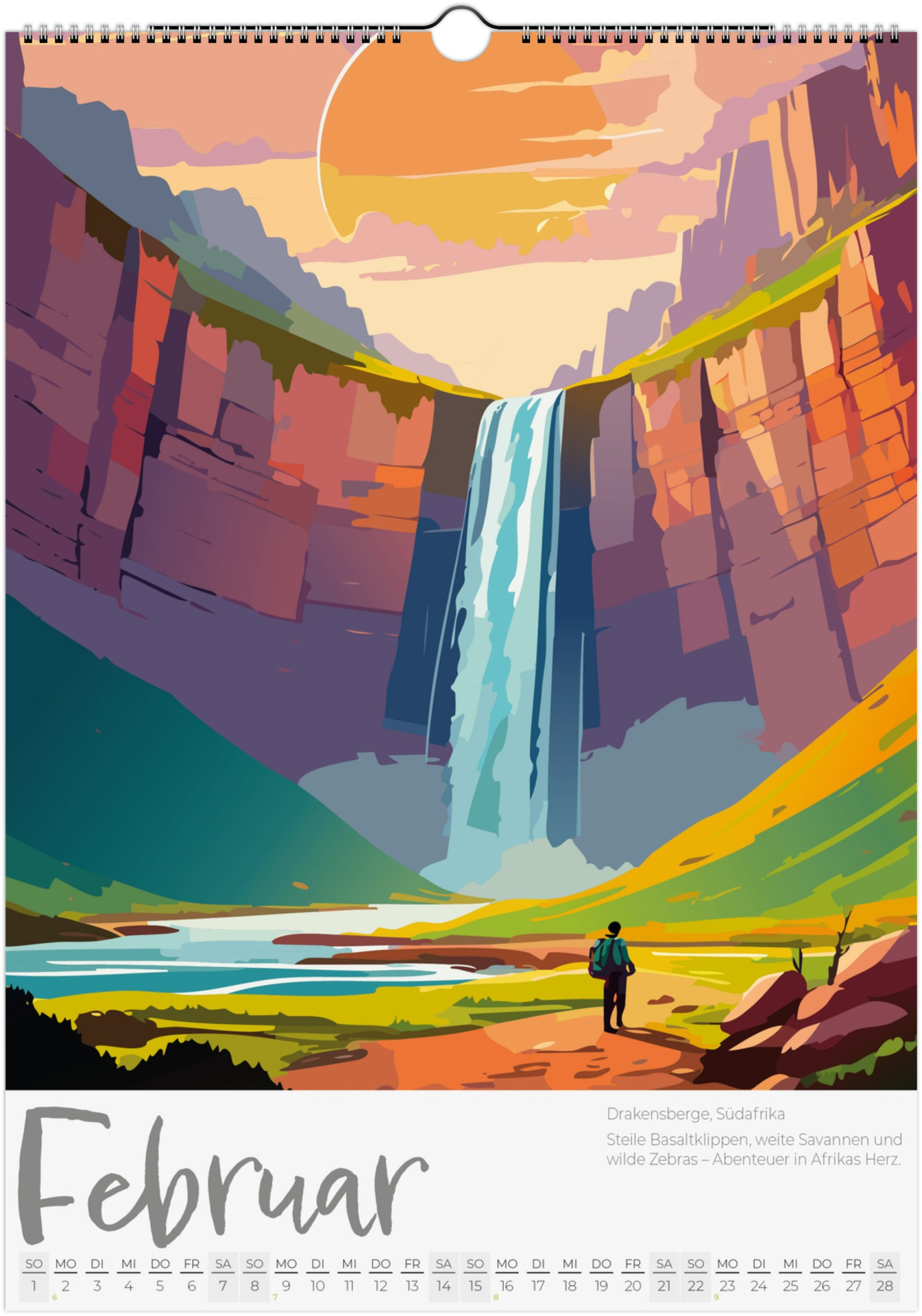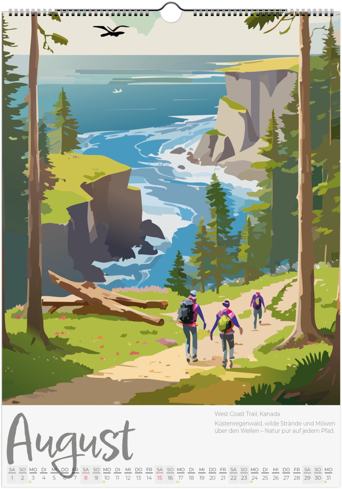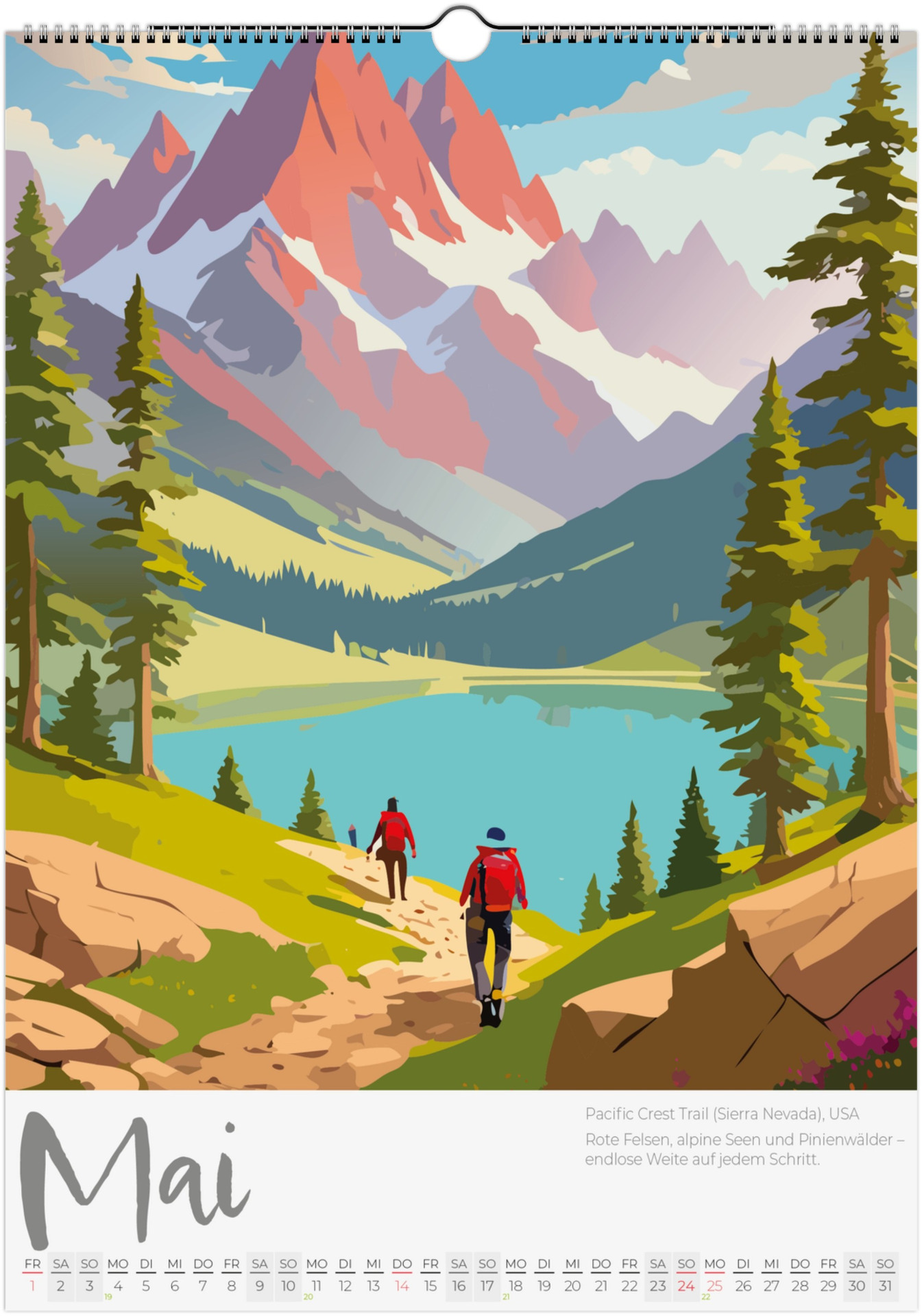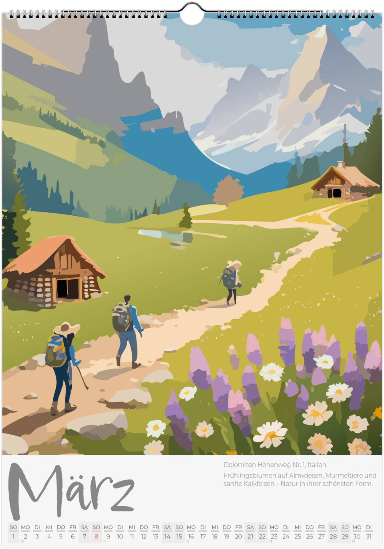 Der Traum Pfade Kalender 2026 zeigt 12 detailreiche Naturillustrationen und Landschaften – perfekt für Wanderfreunde, Reisende und Naturliebhaber.