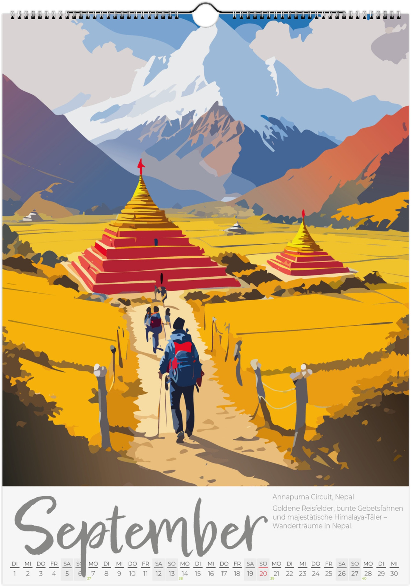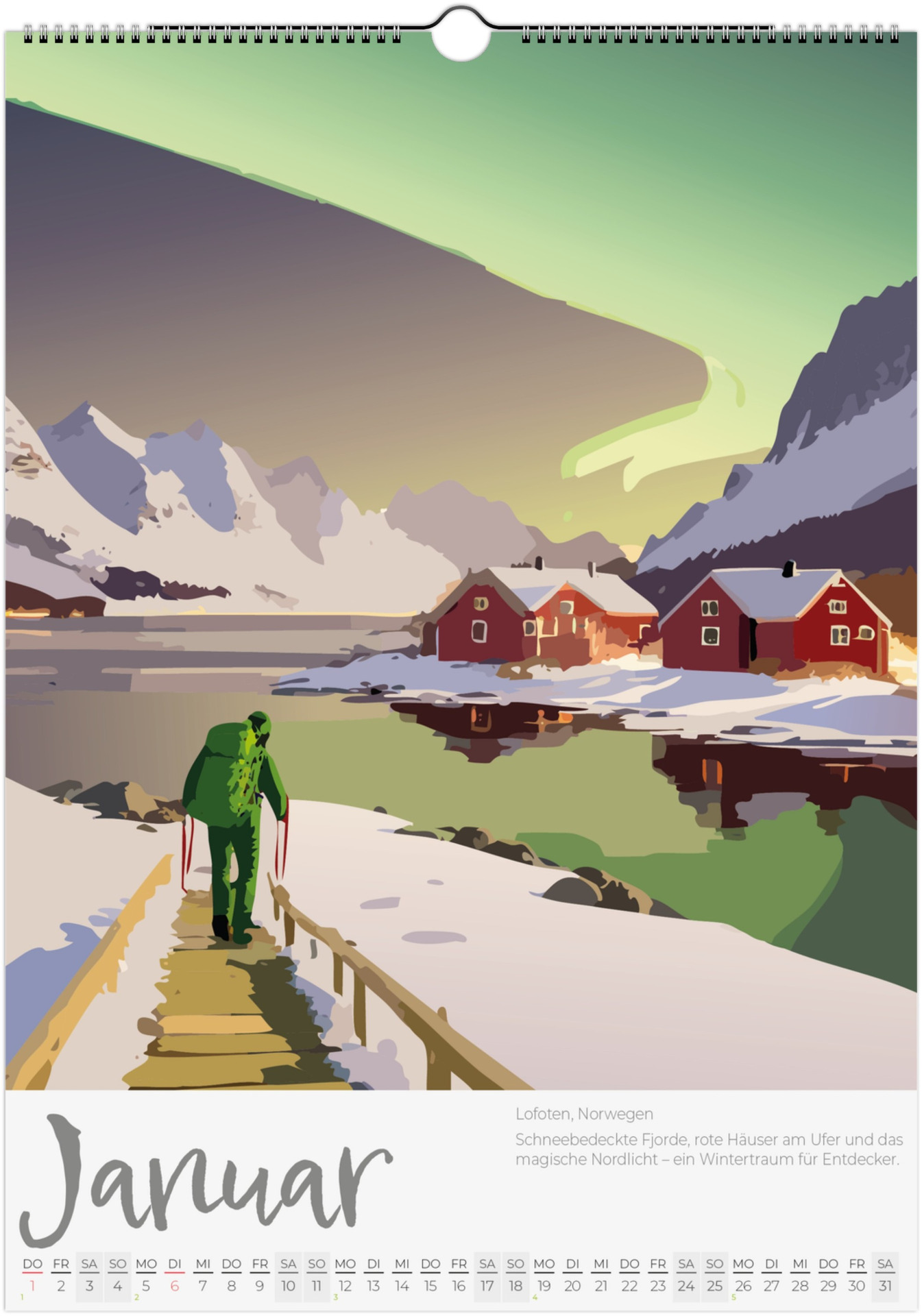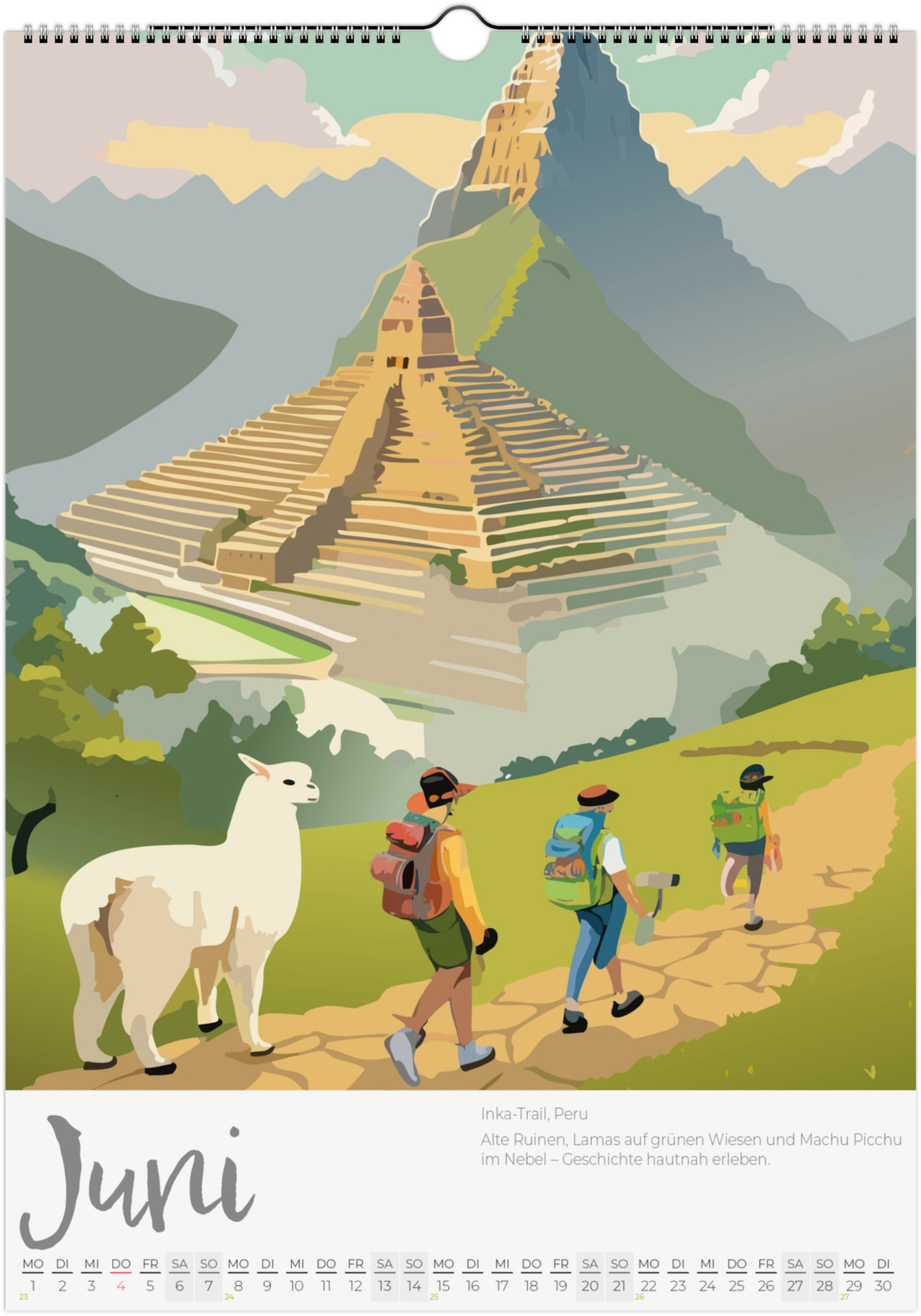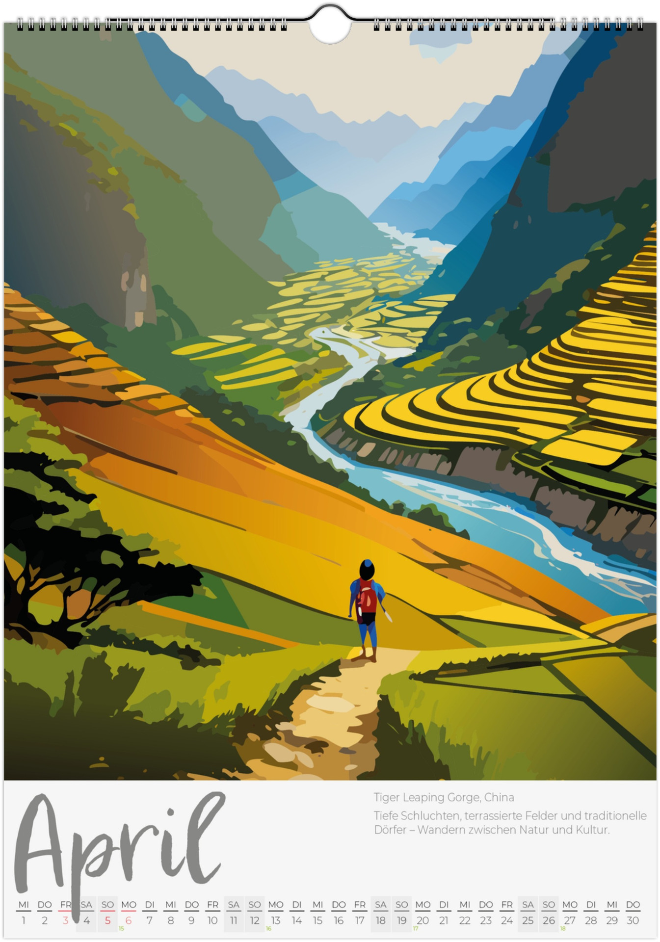 Der Traum Pfade Kalender 2026 zeigt 12 detailreiche Naturillustrationen und Landschaften – perfekt für Wanderfreunde, Reisende und Naturliebhaber.