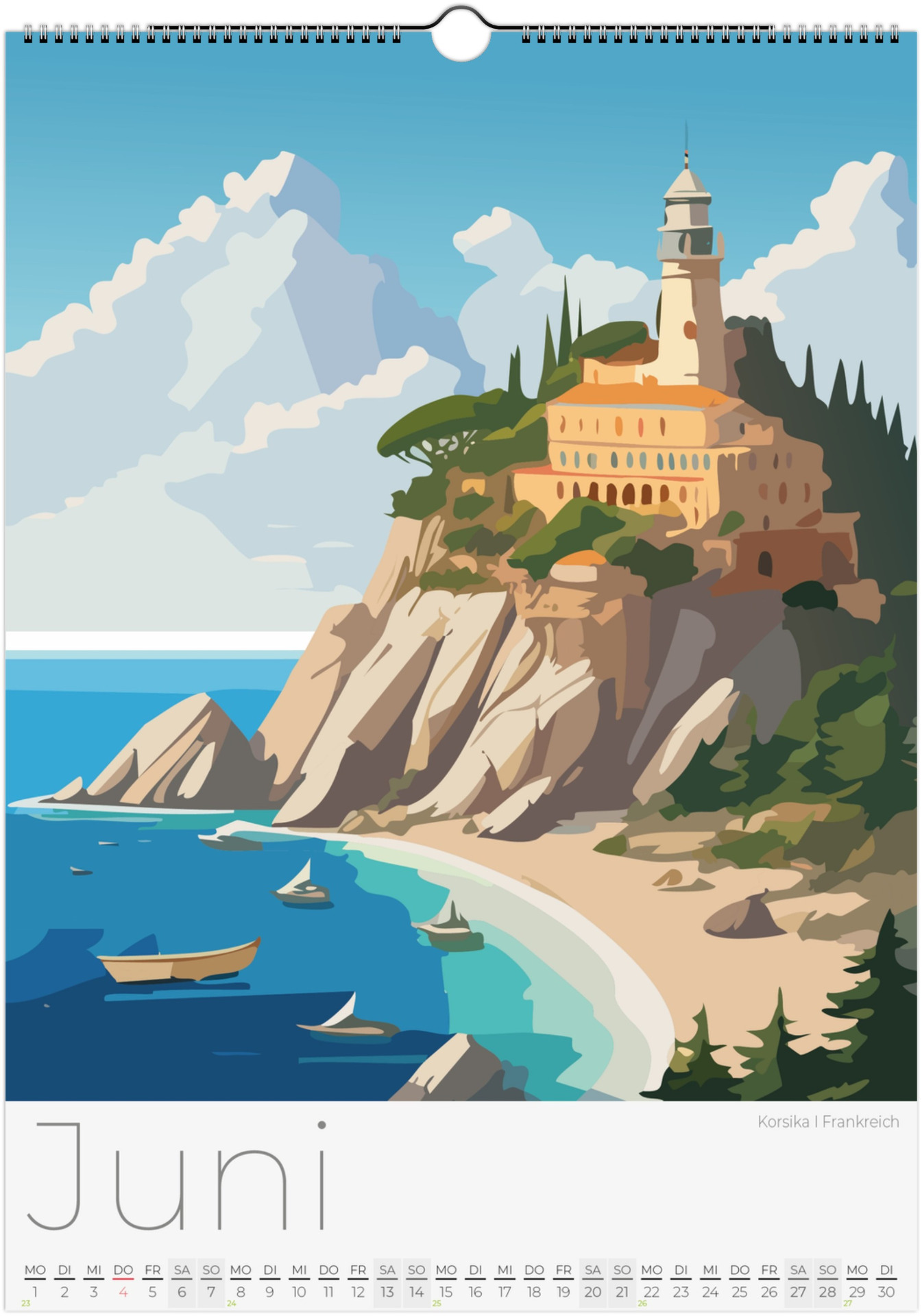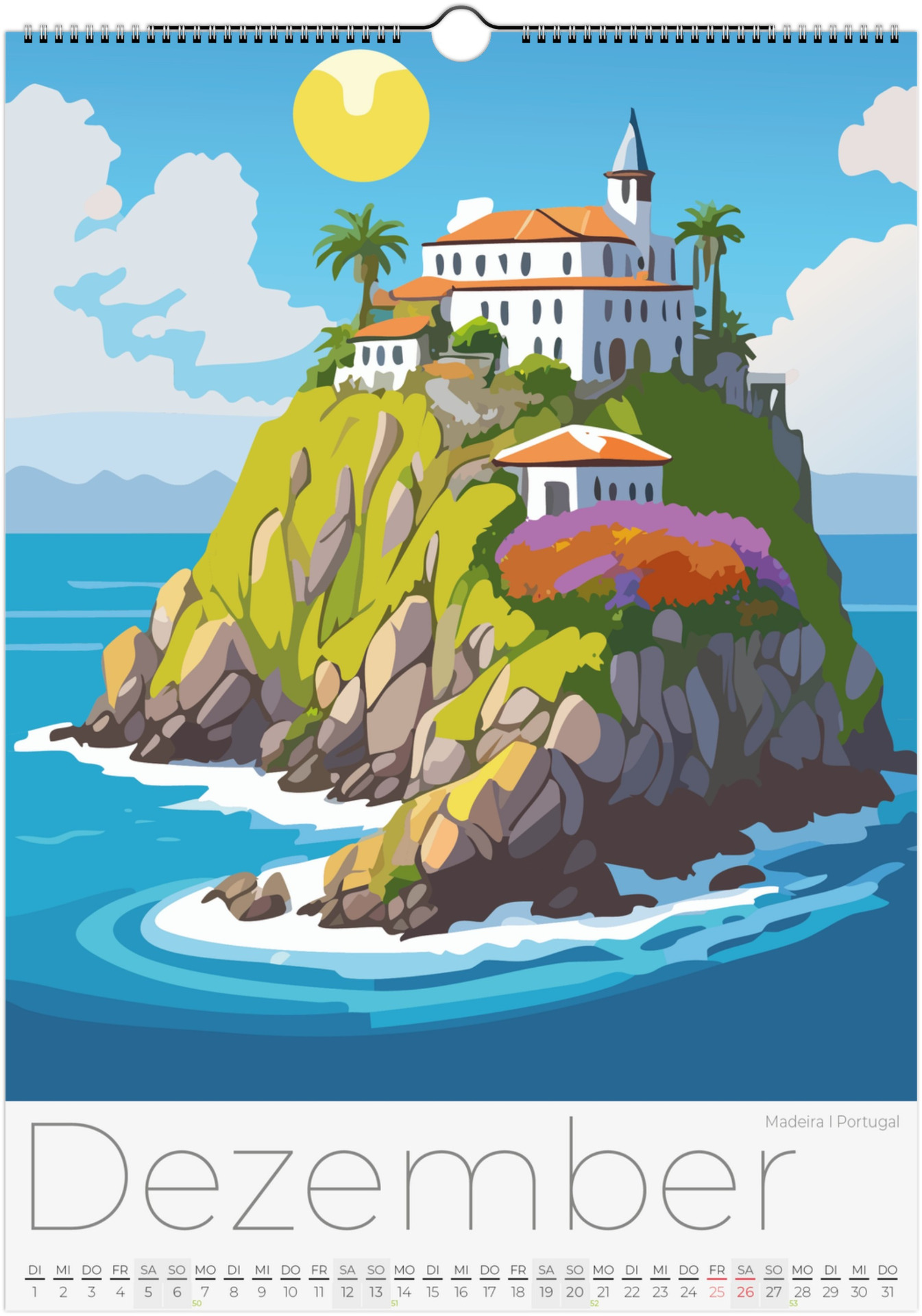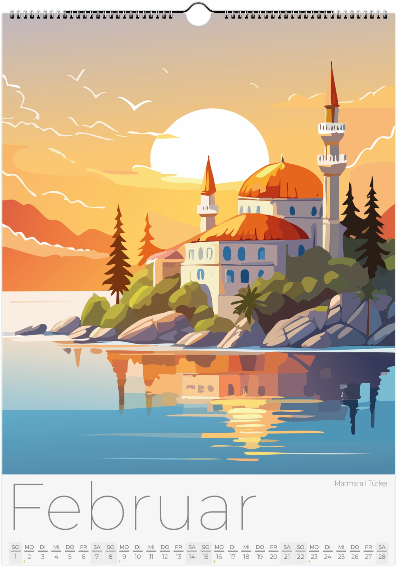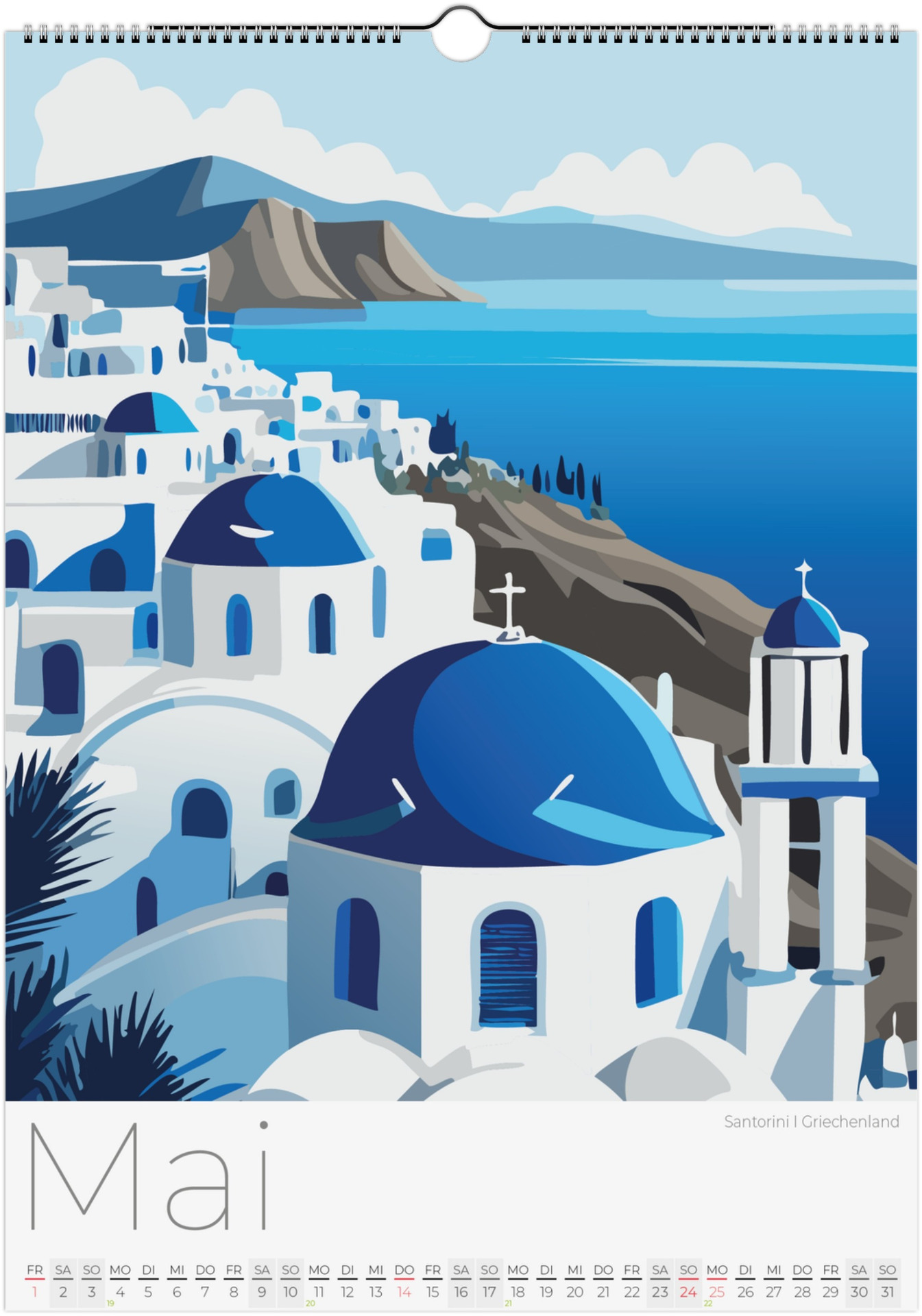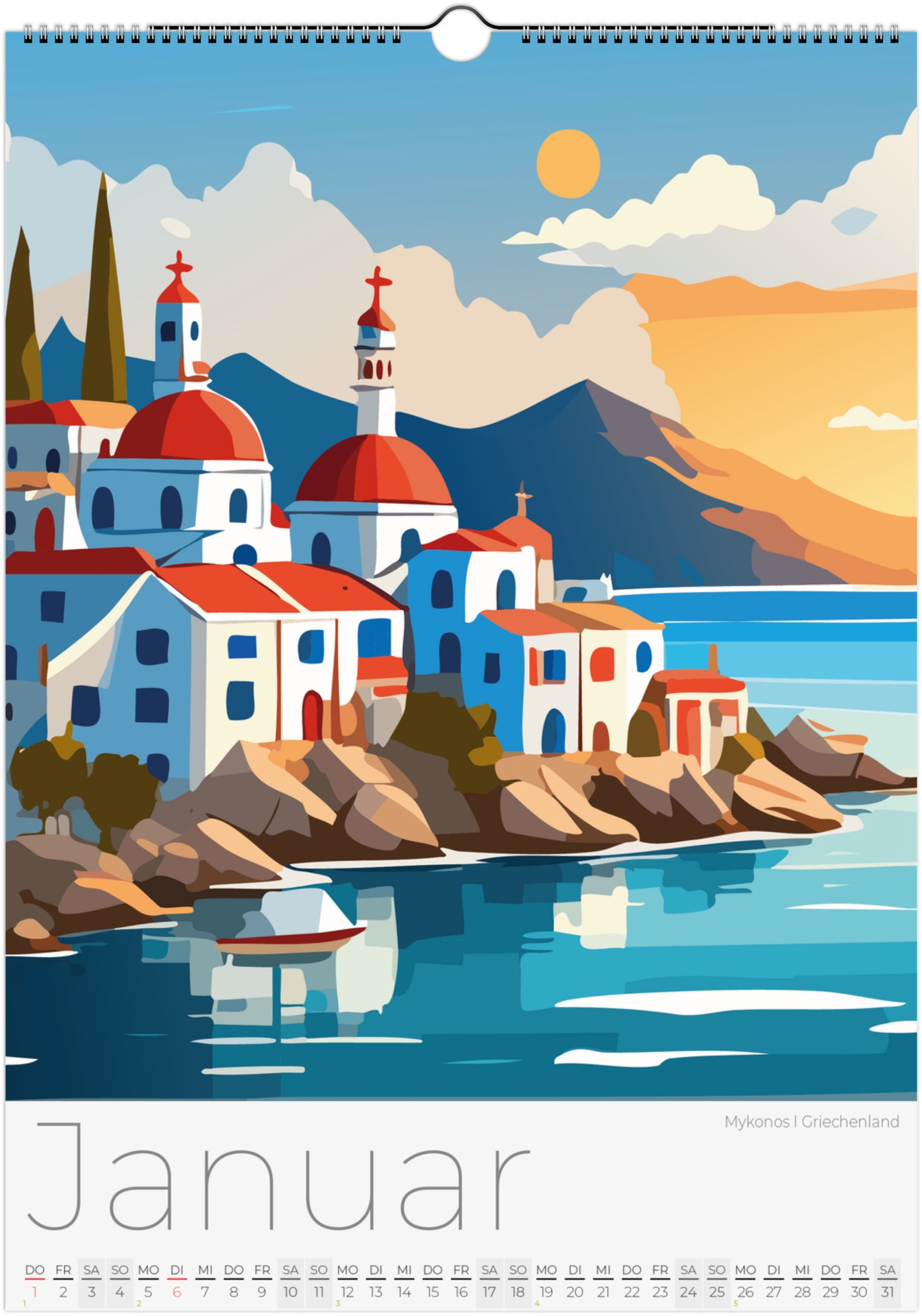 Der Trauminseln Kalender 2026 zeigt 12 wunderschöne Illustrationen tropischer und mediterraner Inseln – perfekt für Reisefans, Sommerfreunde und Meer-Liebhaber.