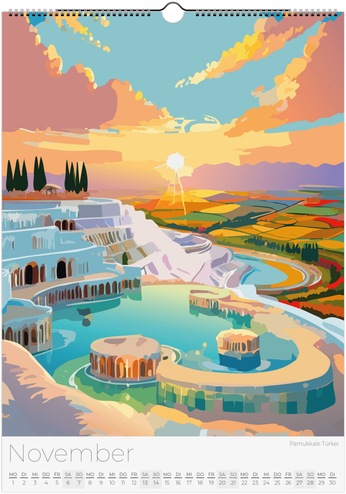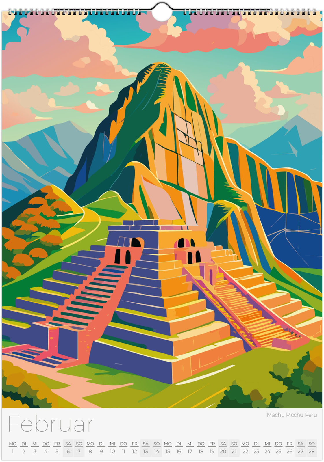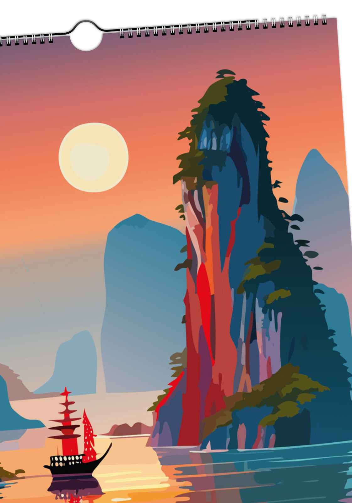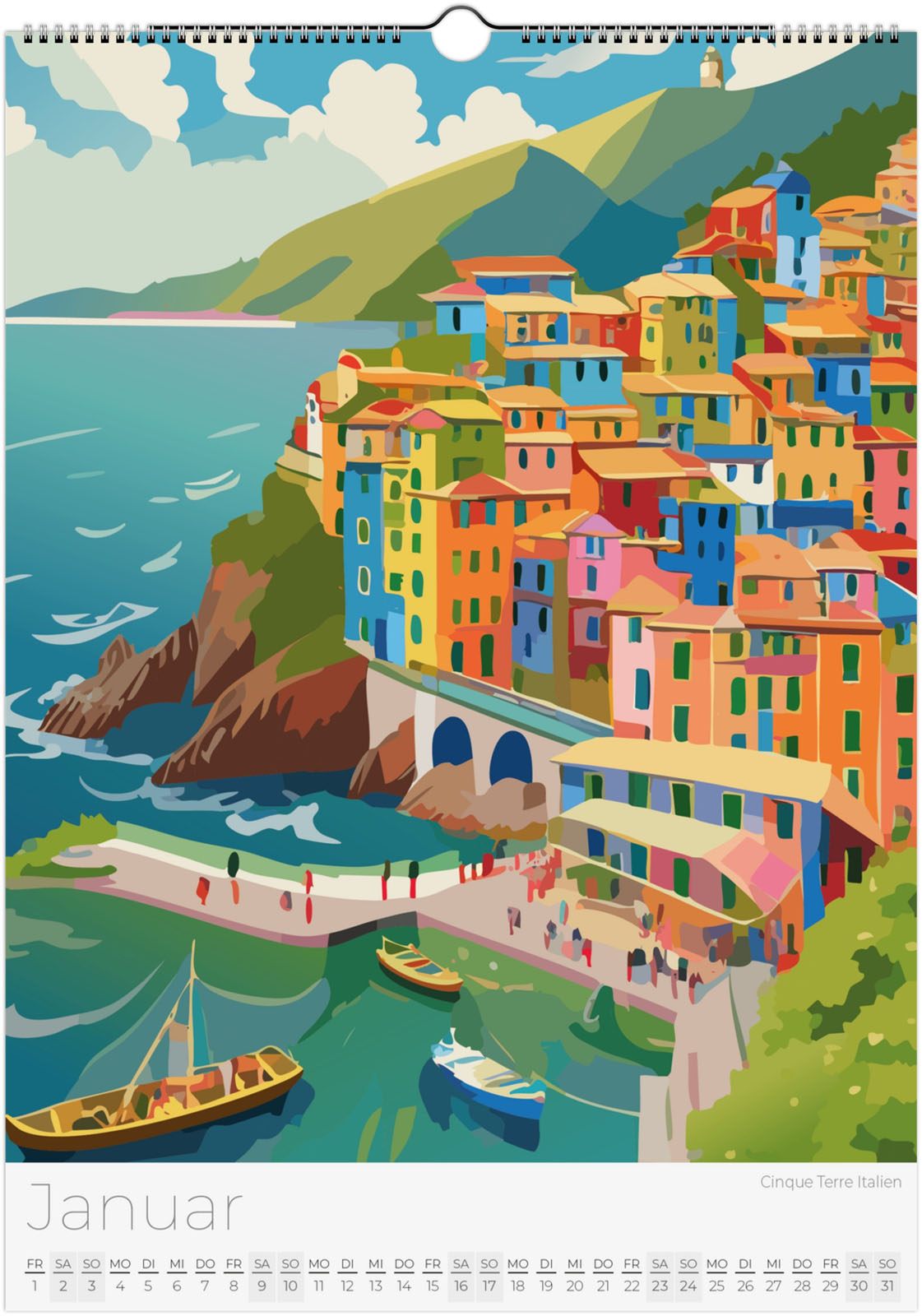 Der Traumziele Kalender 2027 zeigt 12 detailreiche Illustrationen inspirierender Reiseziele – perfekt für Weltenbummler, Abenteurer und Fernweh-Geplagte.