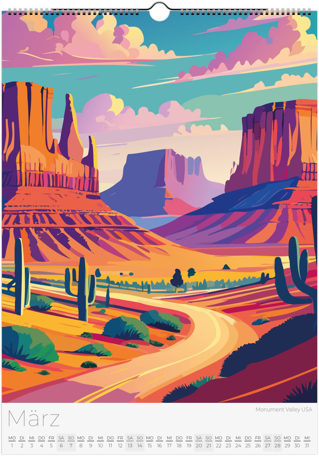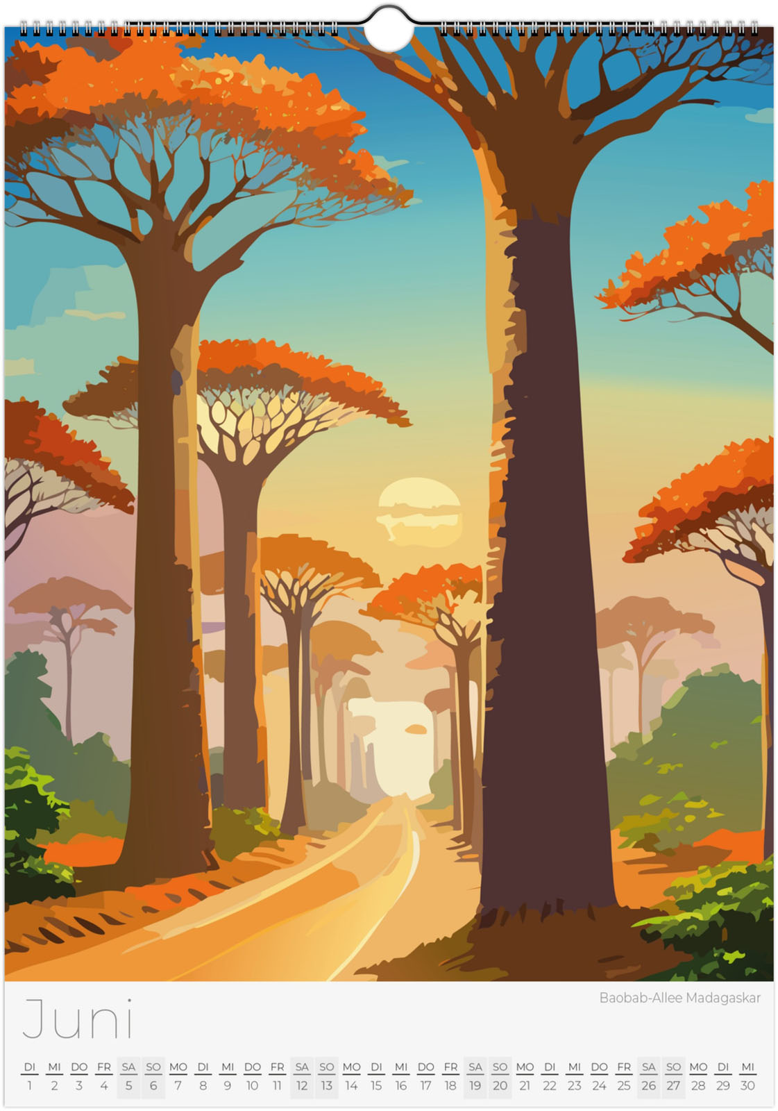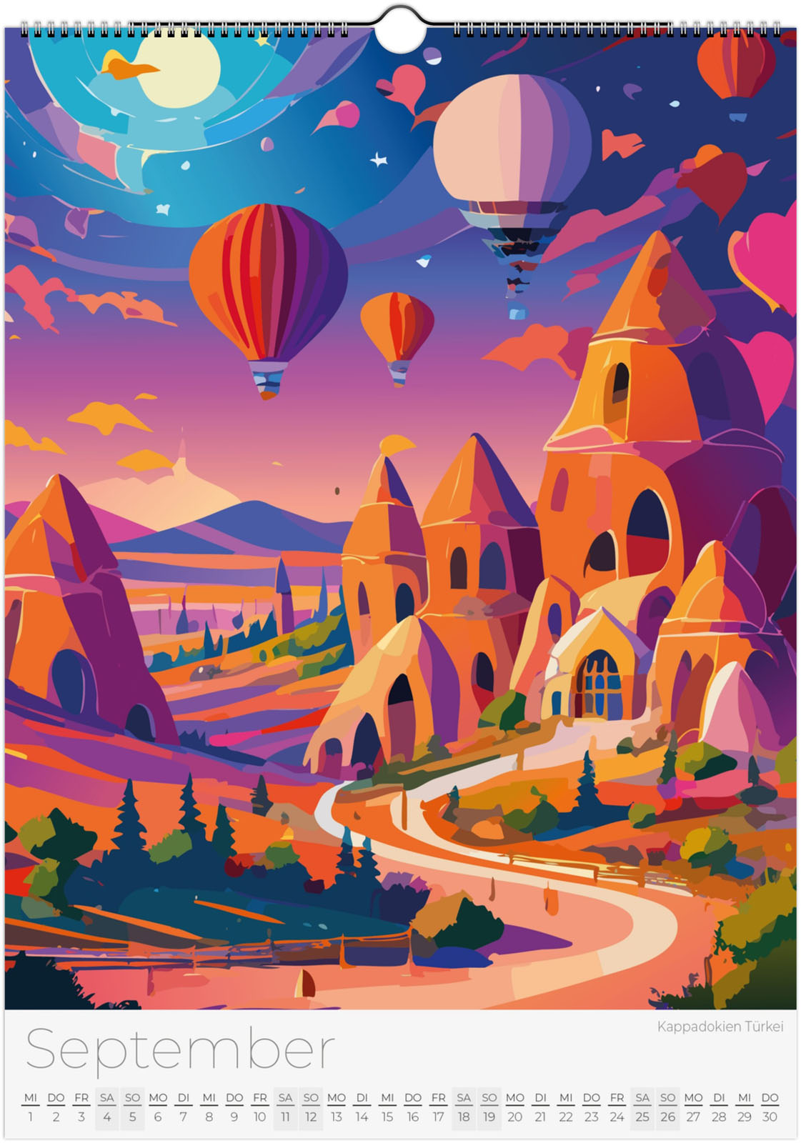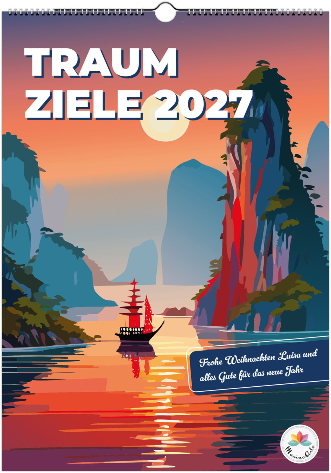 Der Traumziele Kalender 2027 zeigt 12 detailreiche Illustrationen inspirierender Reiseziele – perfekt für Weltenbummler, Abenteurer und Fernweh-Geplagte.