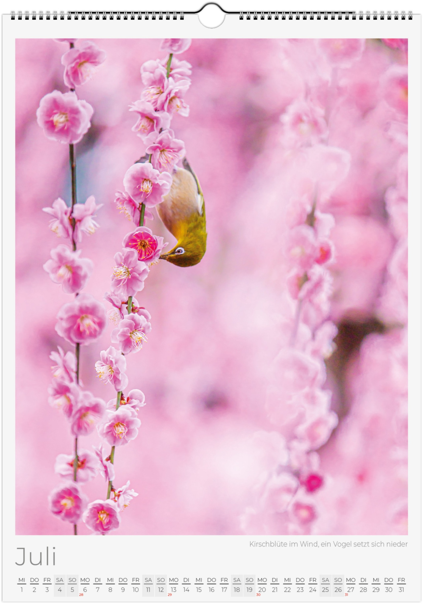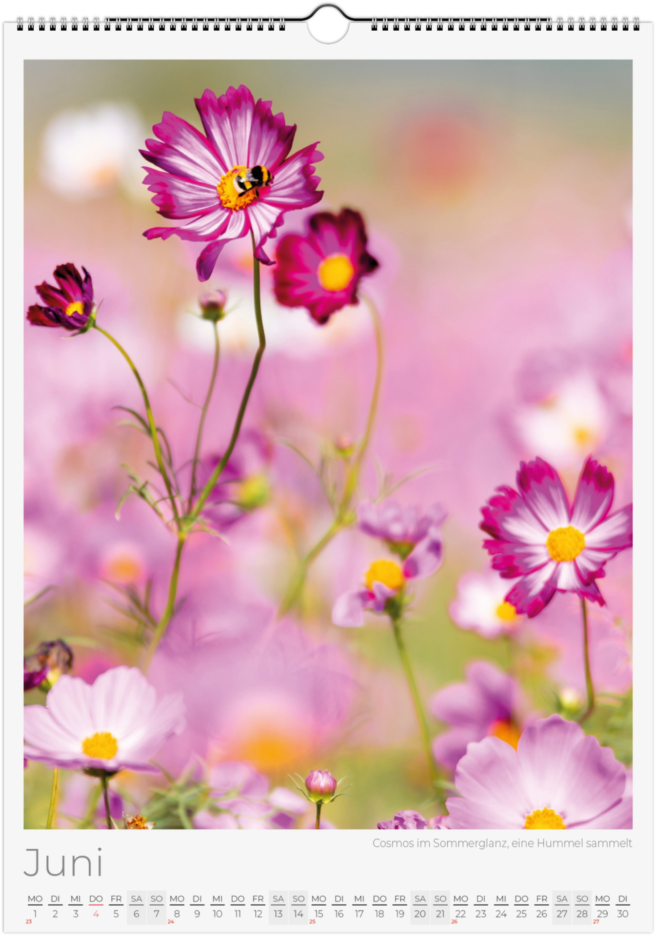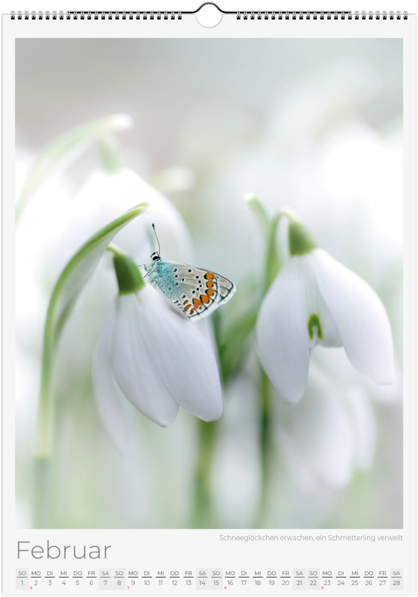12 Monate voller blühender Farben und kleiner tierischer Begleiter. Jeder Monat zeigt eine sorgfältig gestaltete Blumen-Illustration mit einem charmanten Tier, das die Szene lebendig macht.