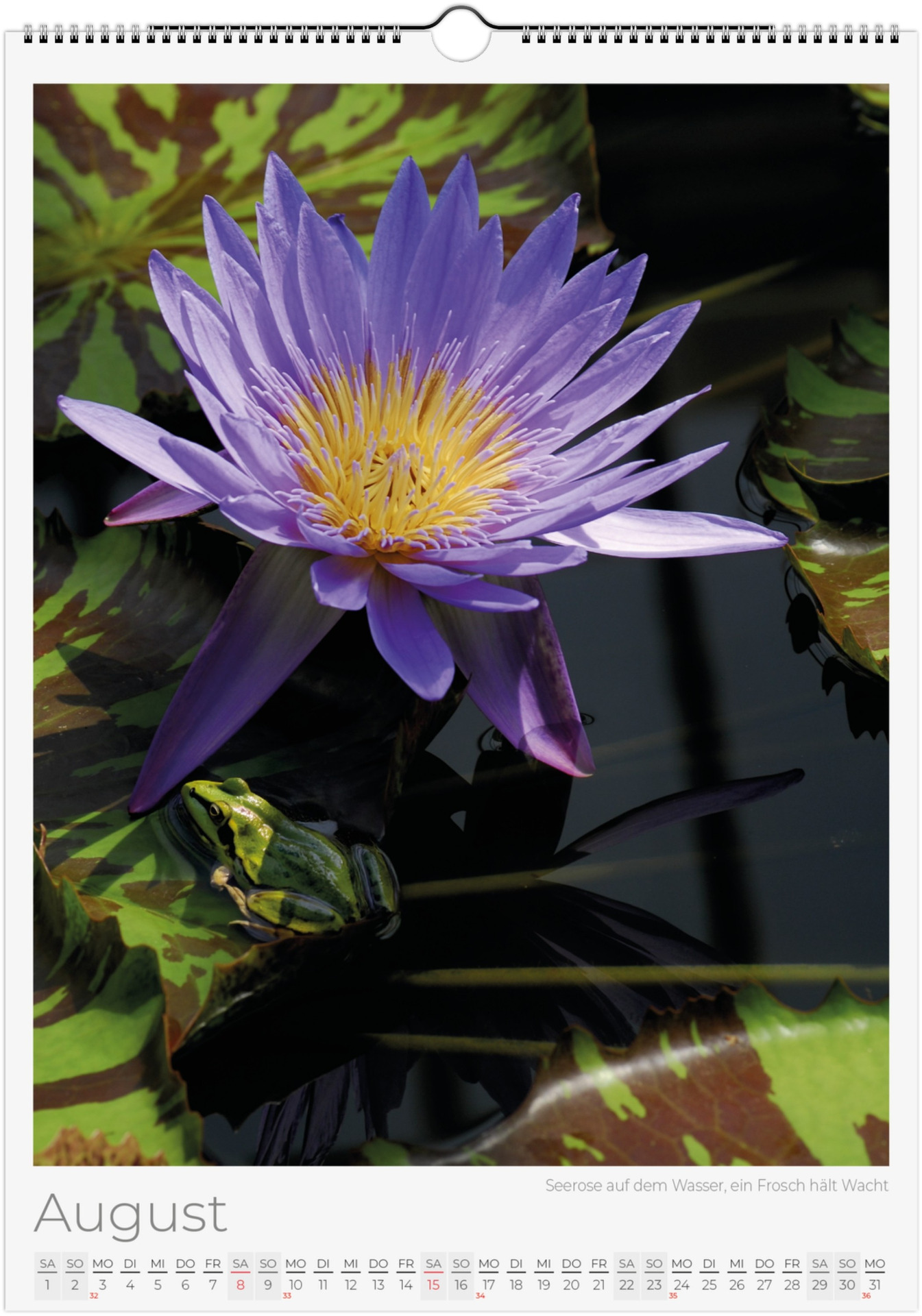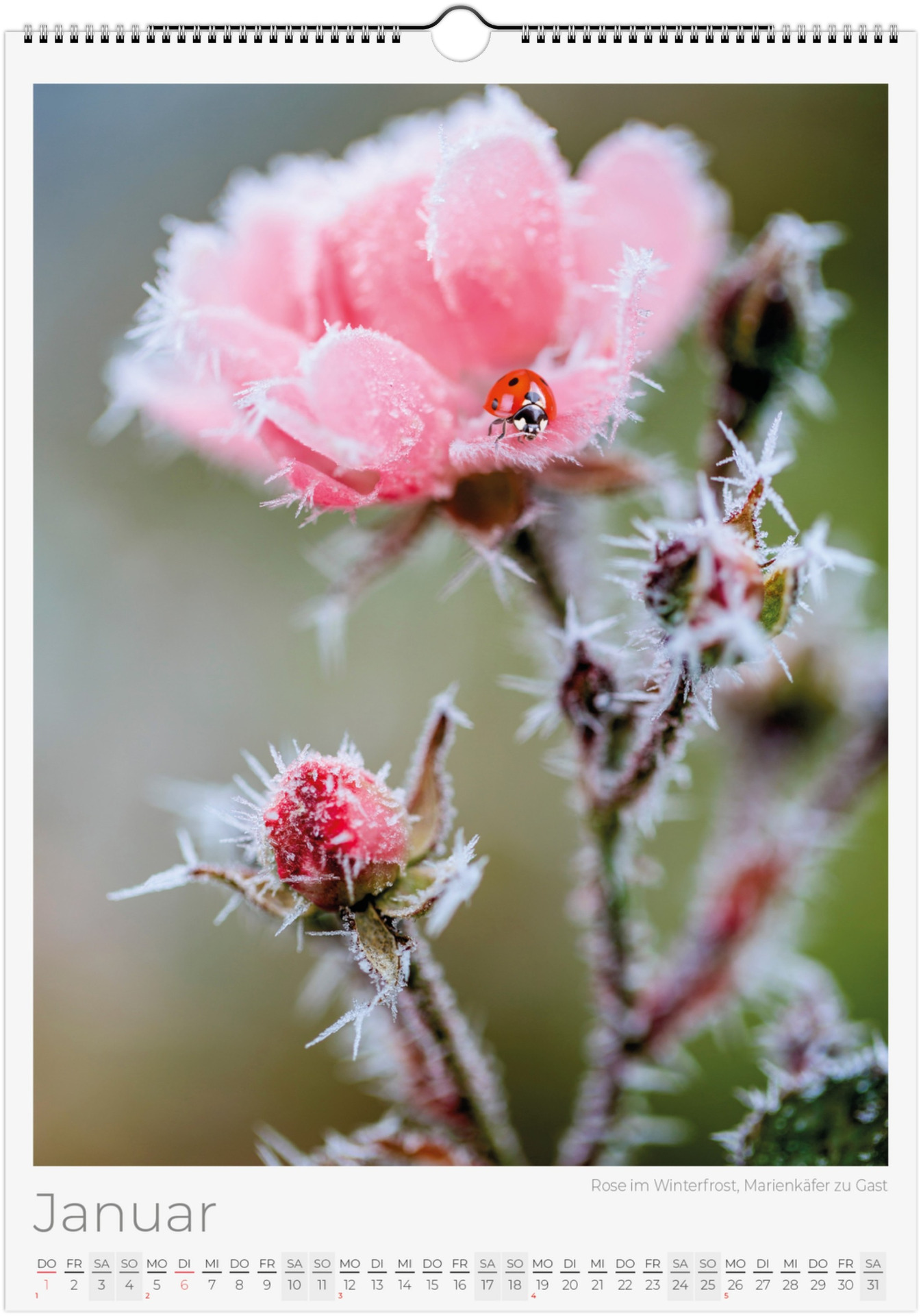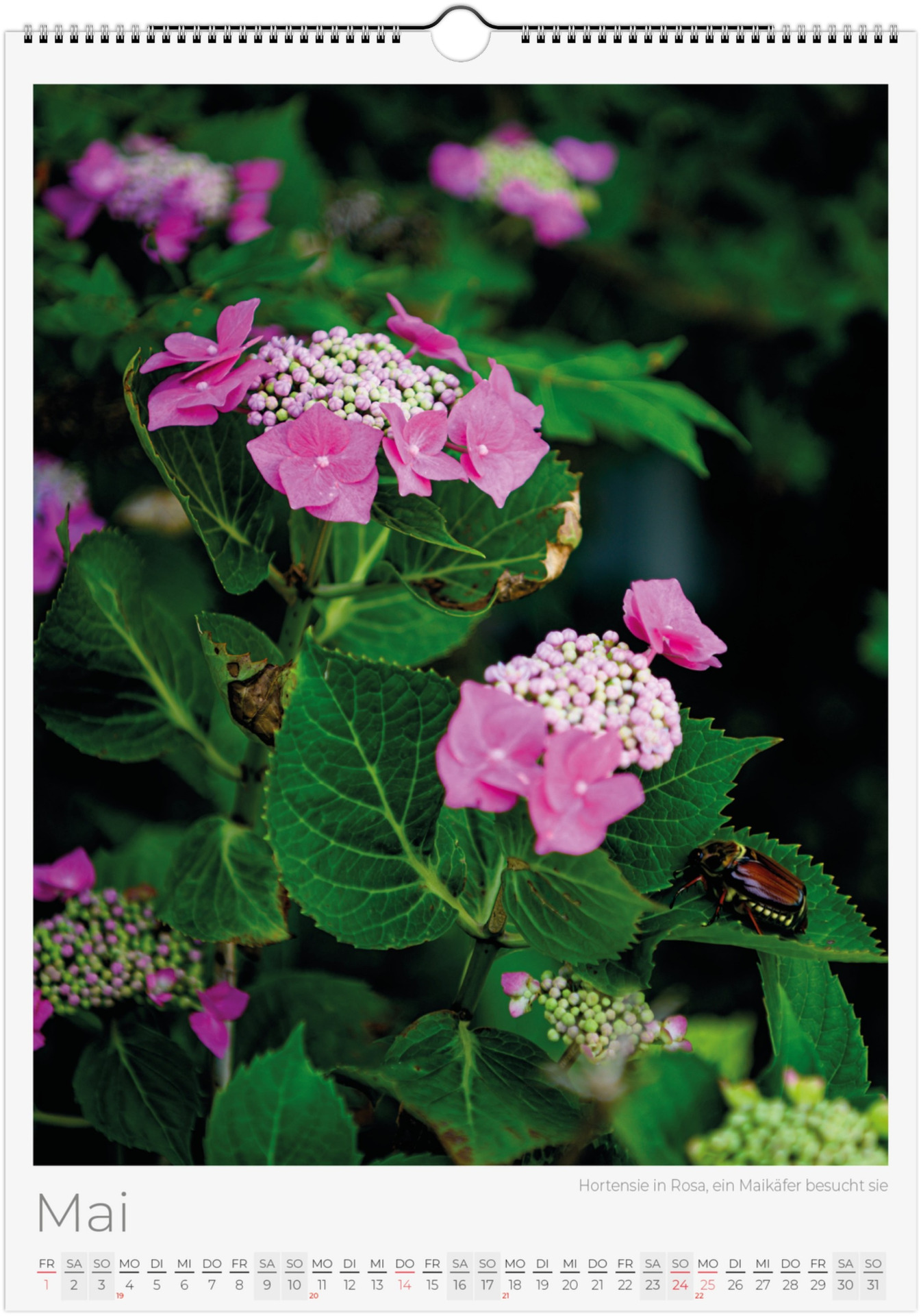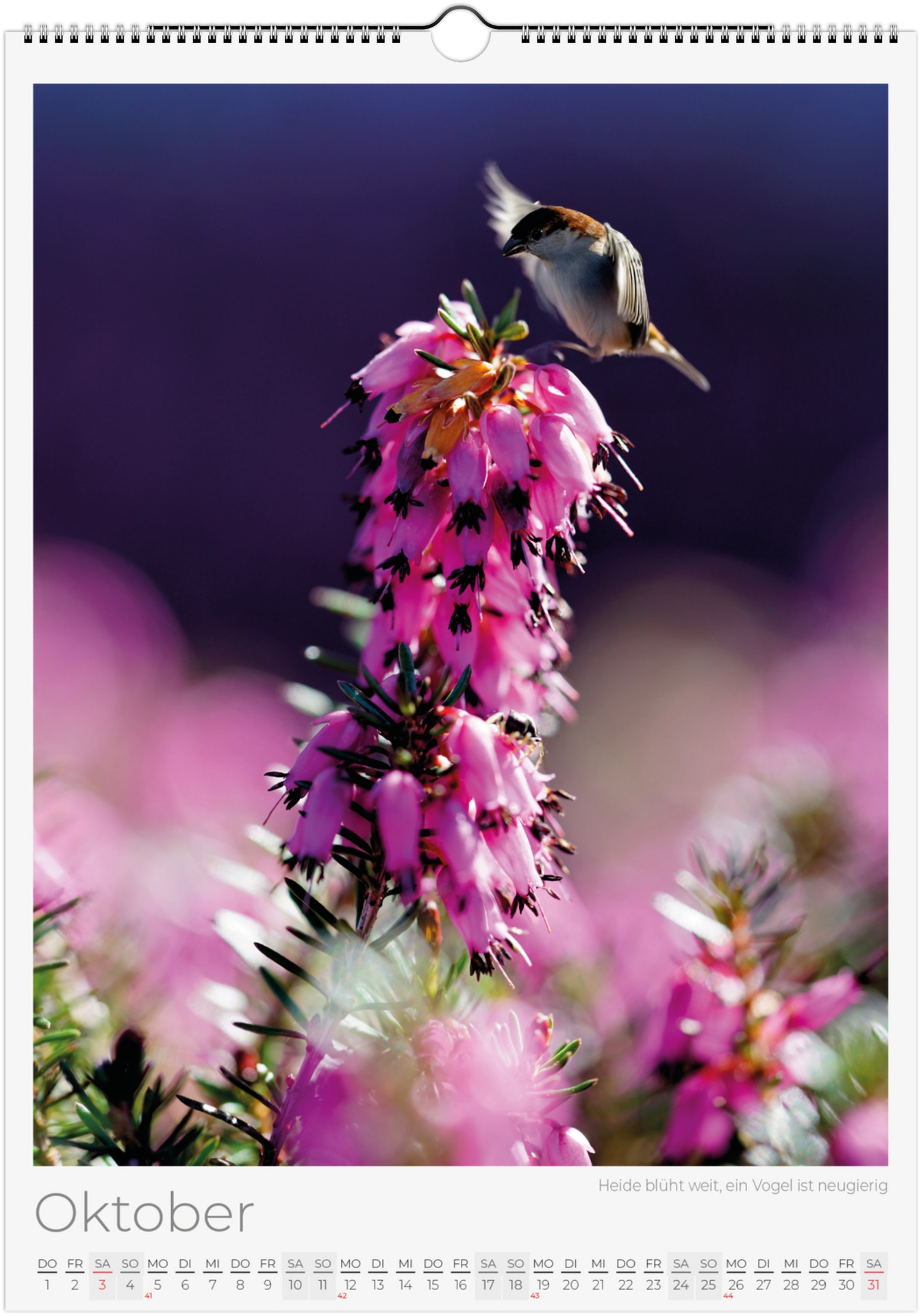 12 Monate voller blühender Farben und kleiner tierischer Begleiter. Jeder Monat zeigt eine sorgfältig gestaltete Blumen-Illustration mit einem charmanten Tier, das die Szene lebendig macht.