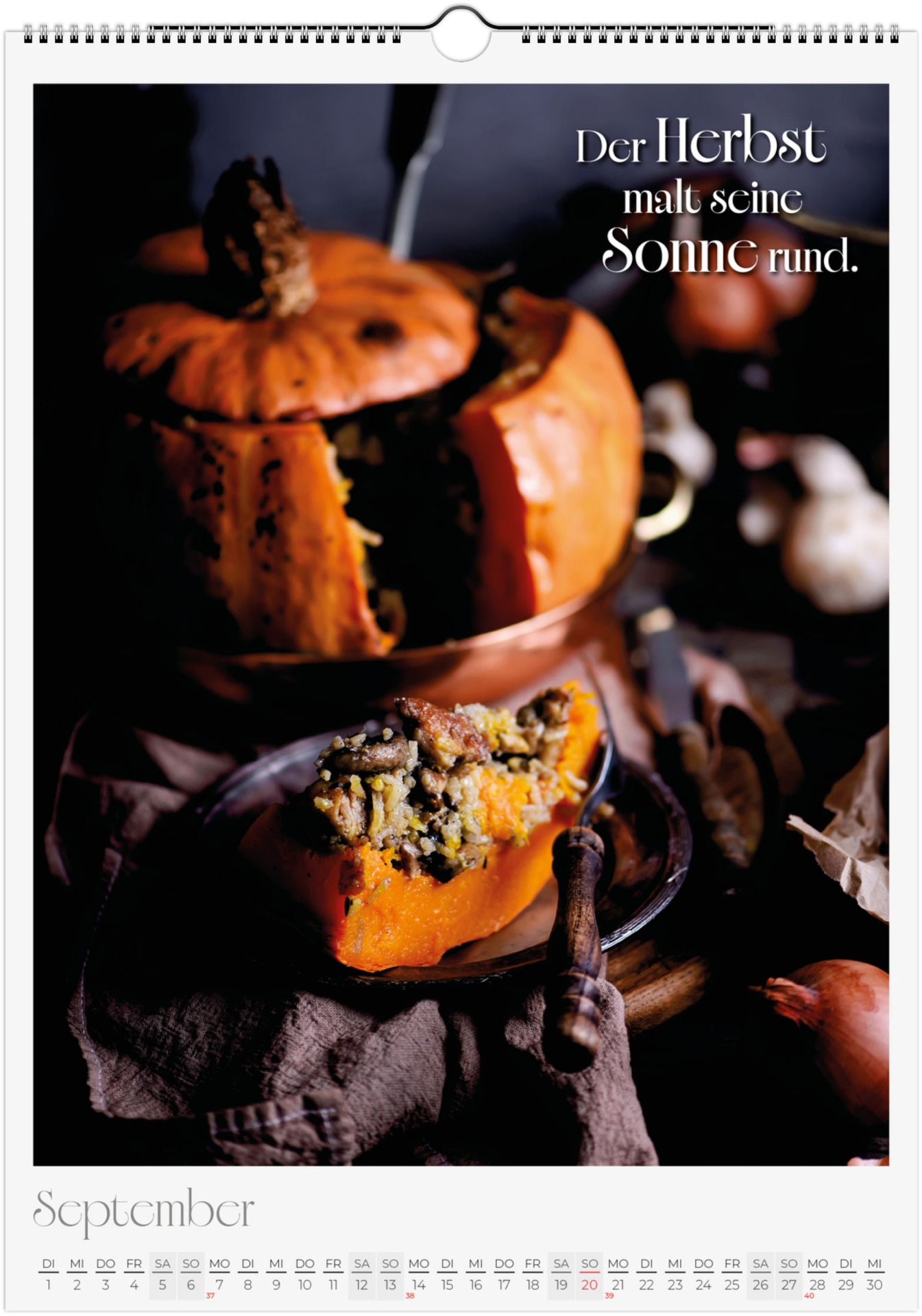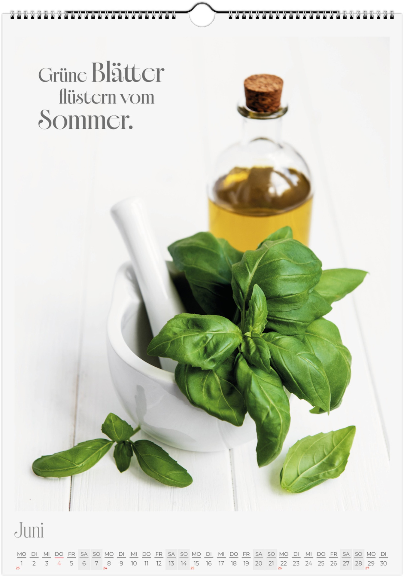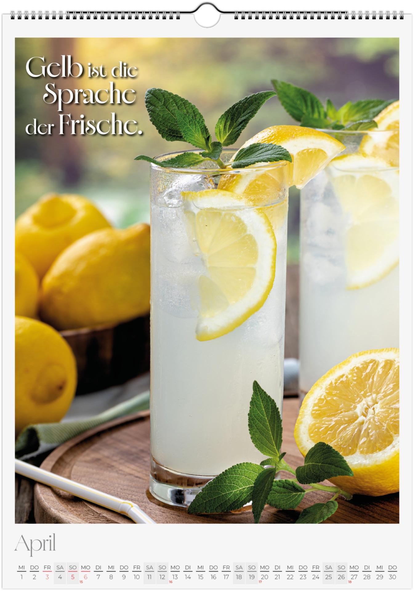 12 Monate voller kulinarischer Vielfalt und poetischer Sprüche. Jeder Monat zeigt ein liebevoll gestaltetes Food-Motiv – von Basilikum, Chili und Zitronen bis hin zu Kaffee, Käse oder Trüffel.