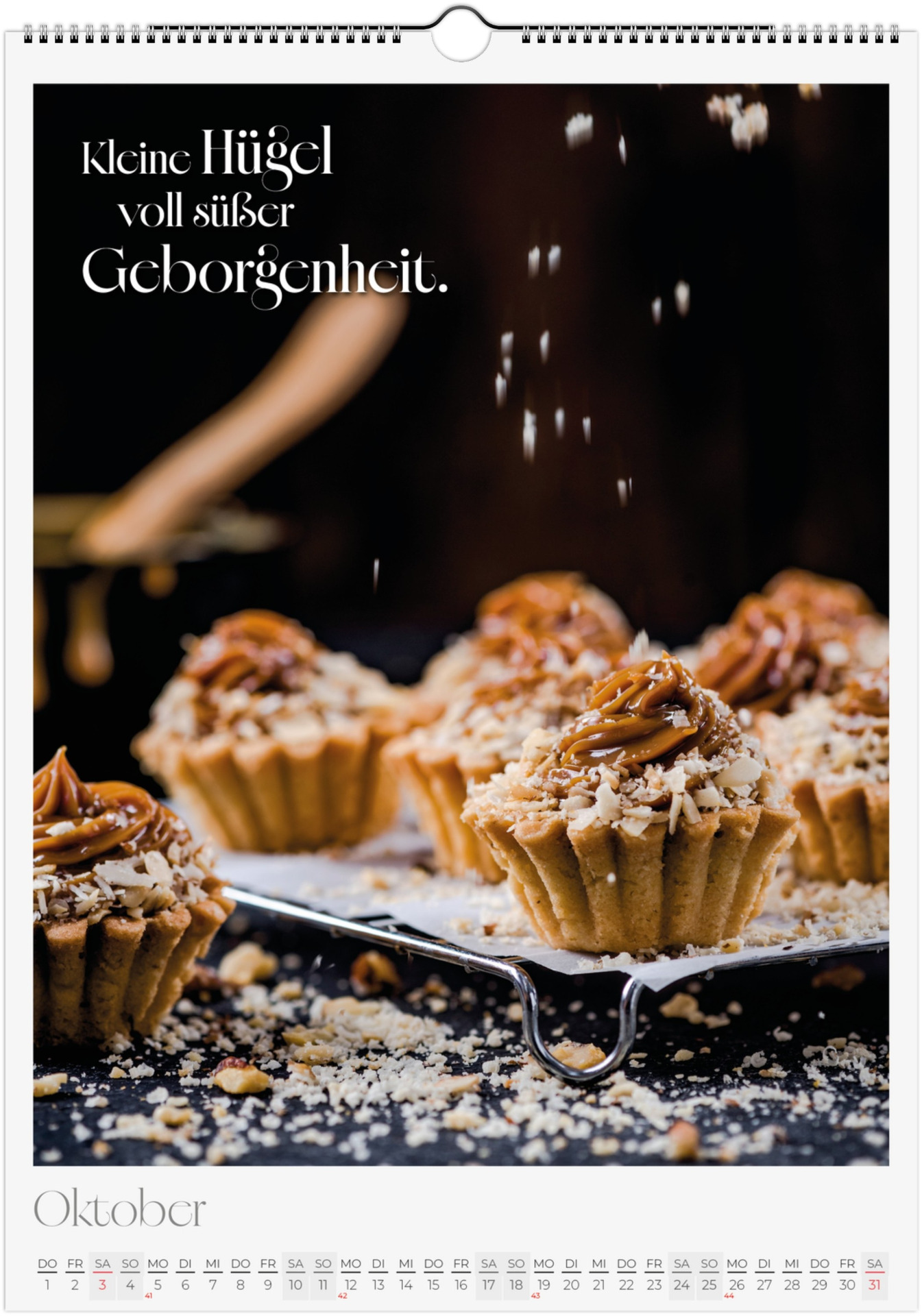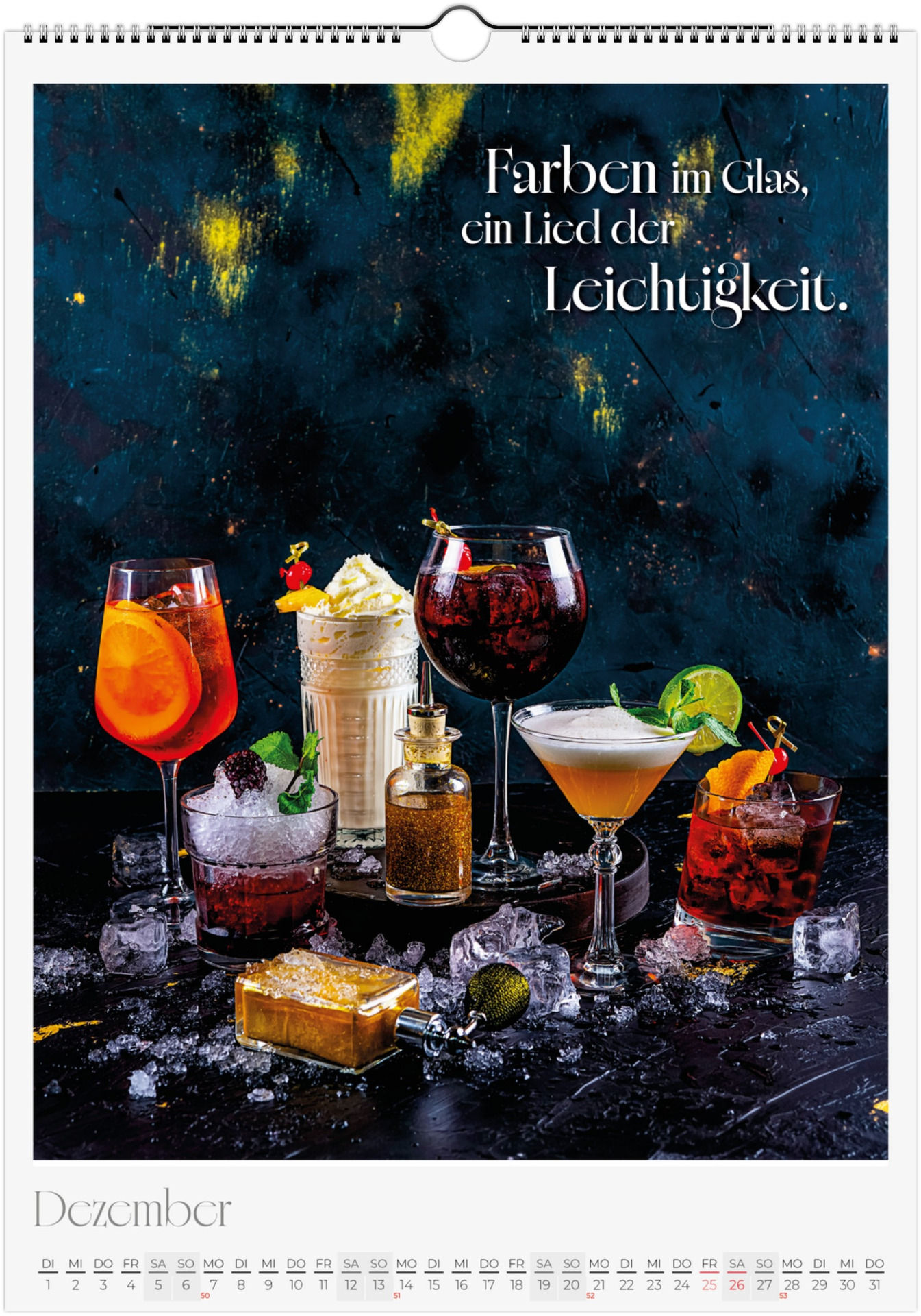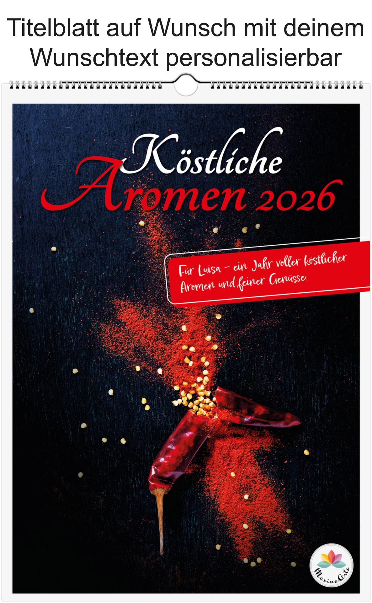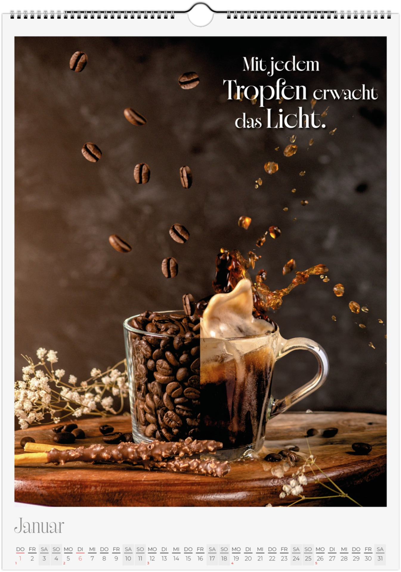 12 Monate voller kulinarischer Vielfalt und poetischer Sprüche. Jeder Monat zeigt ein liebevoll gestaltetes Food-Motiv – von Basilikum, Chili und Zitronen bis hin zu Kaffee, Käse oder Trüffel.