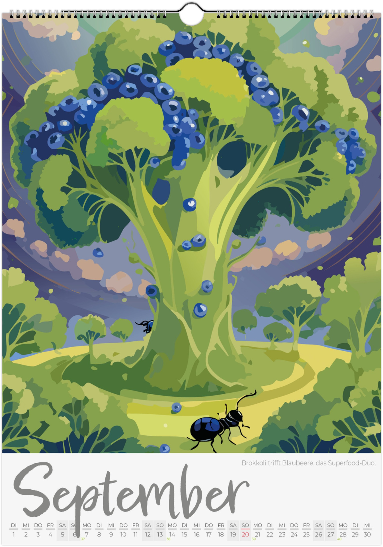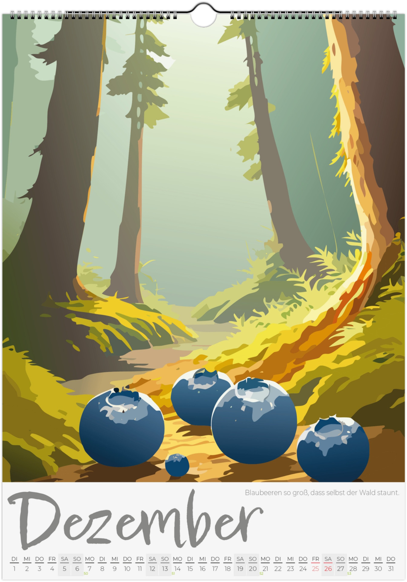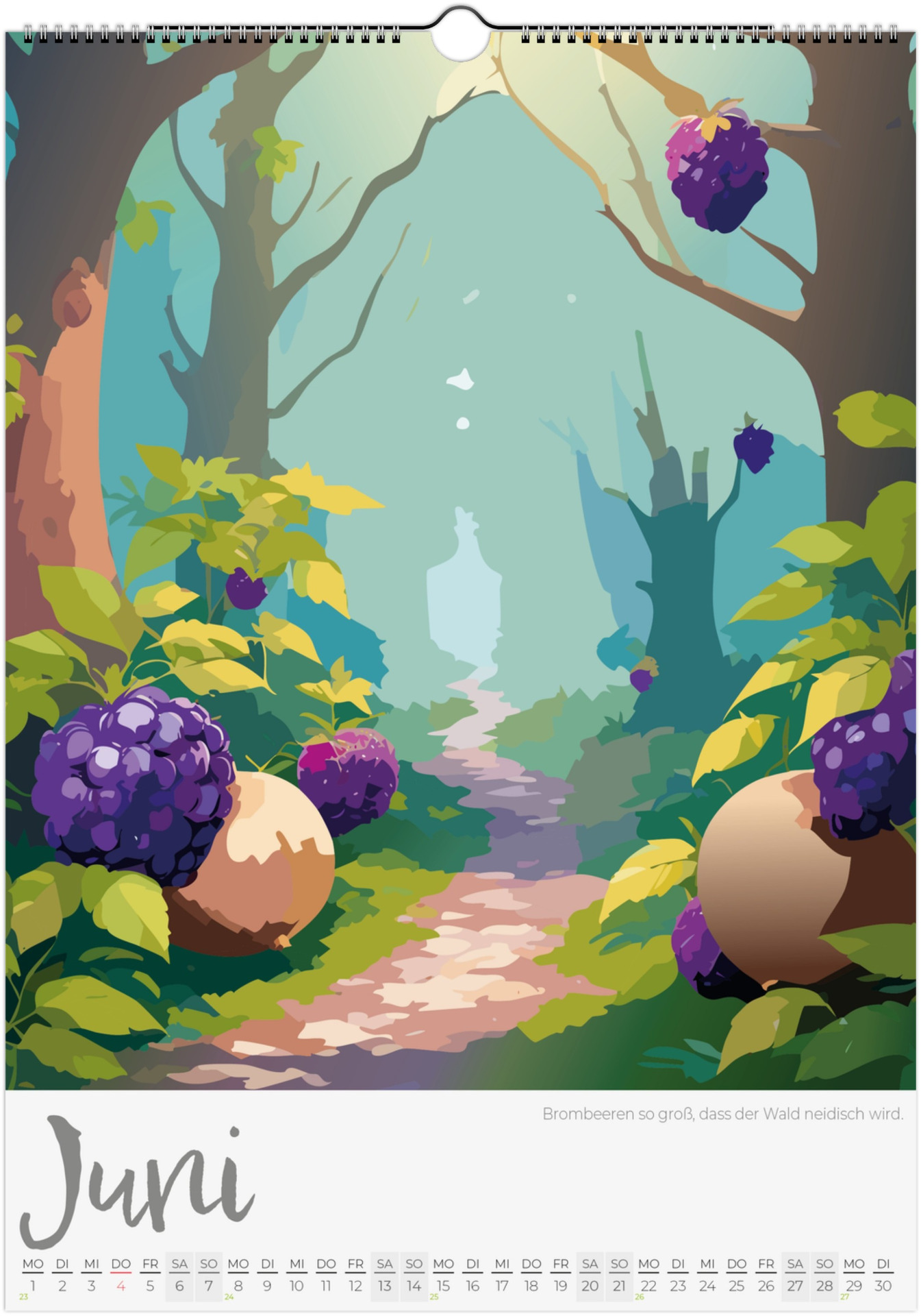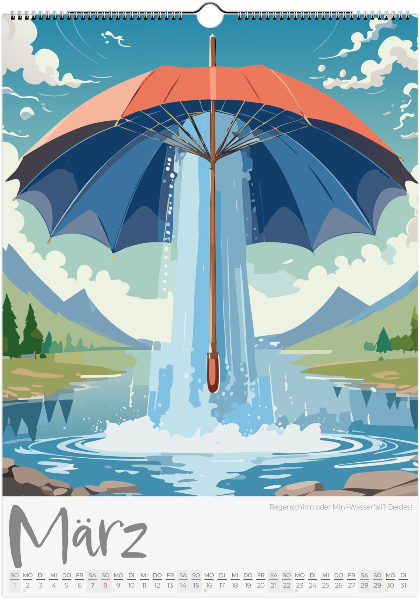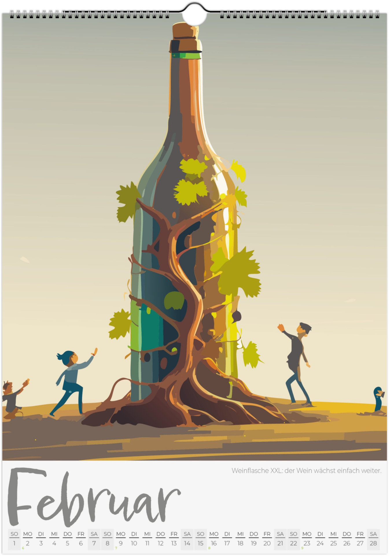 Der Wunder Welten Kalender 2026 zeigt 12 surrealistische Illustrationen mit Riesenfrüchten, absurden Szenen und künstlerischem Witz – ein echter Hingucker an jeder Wand.