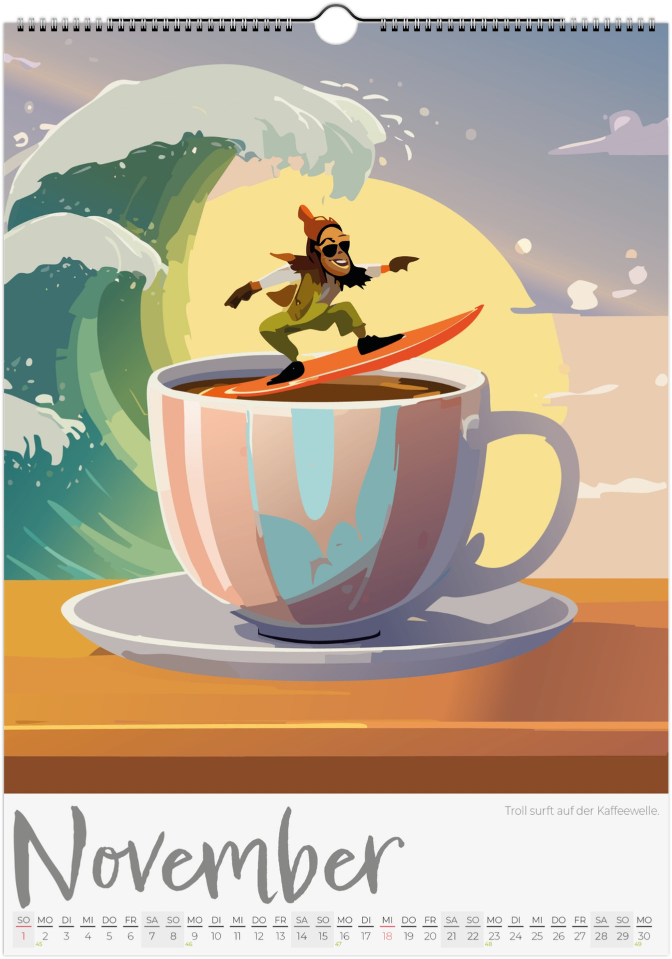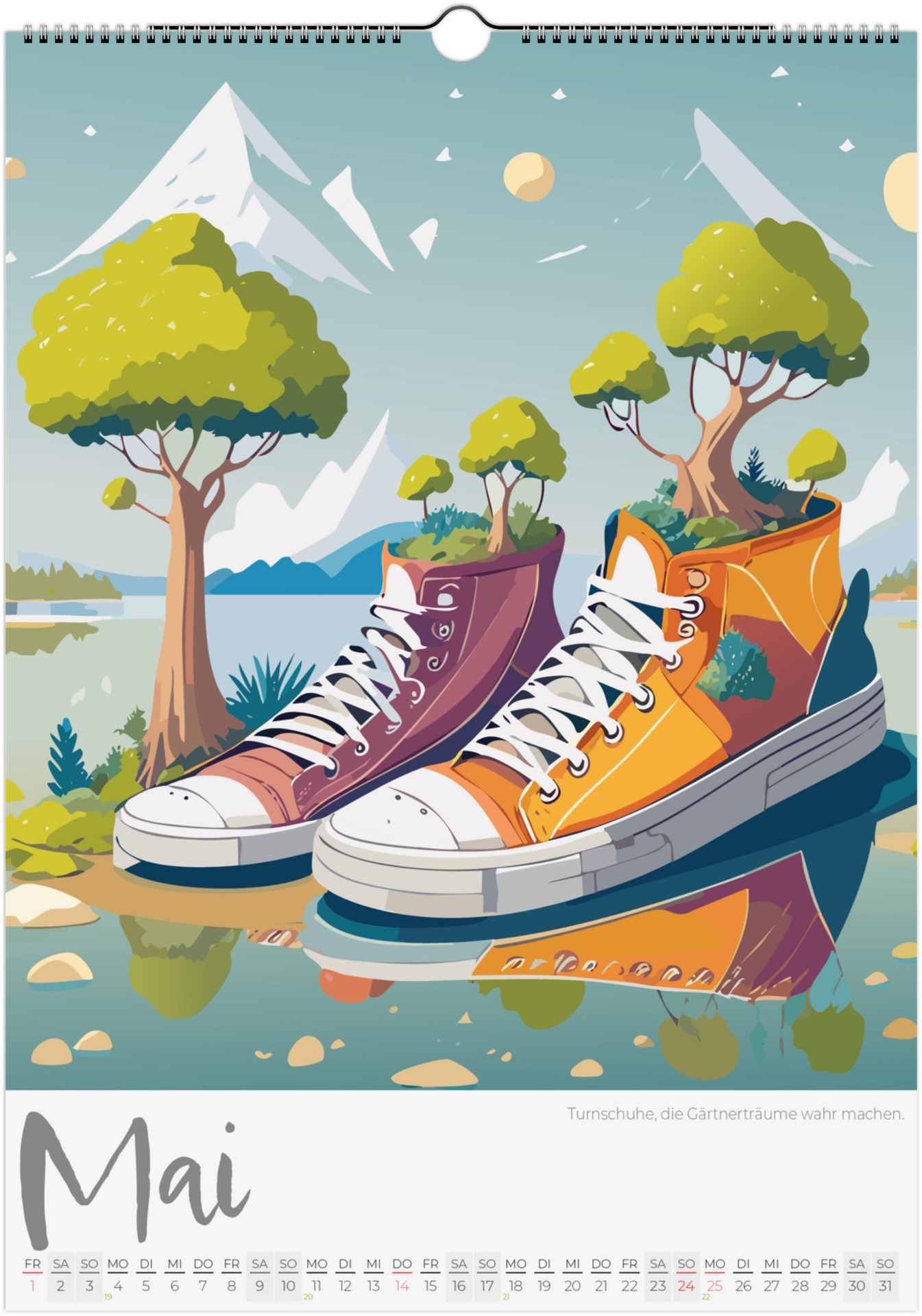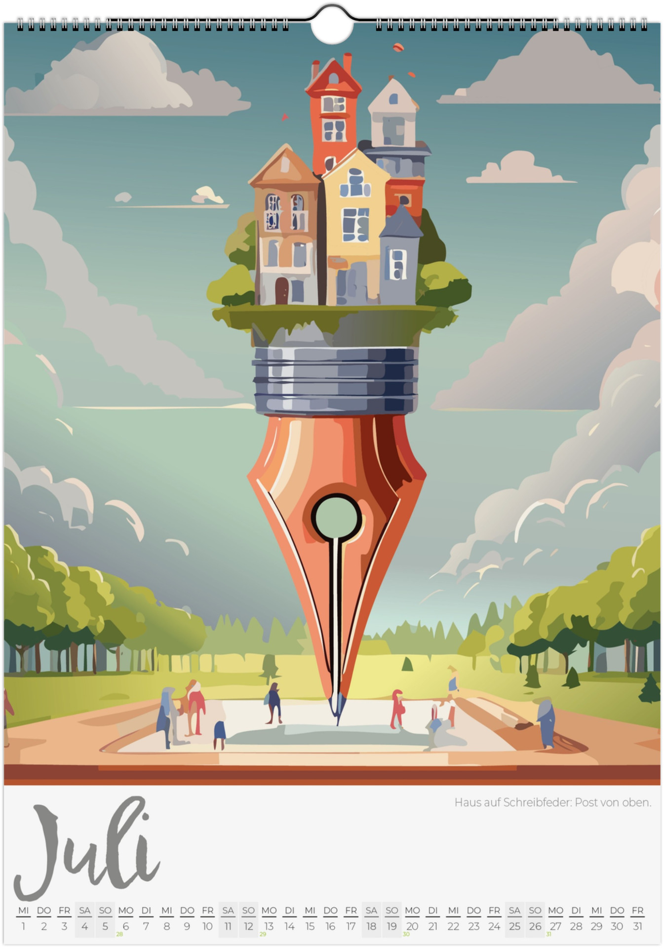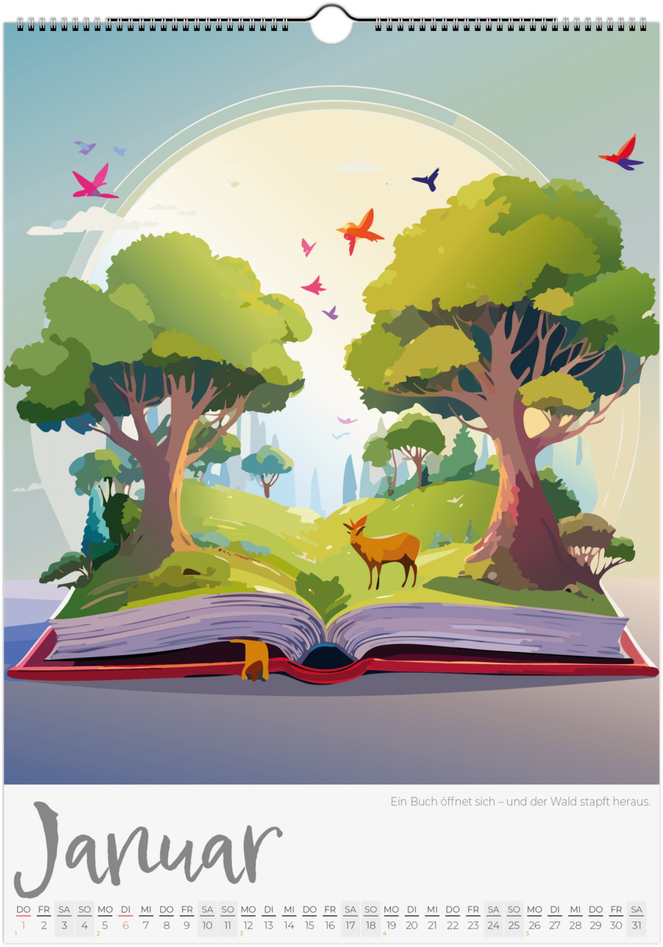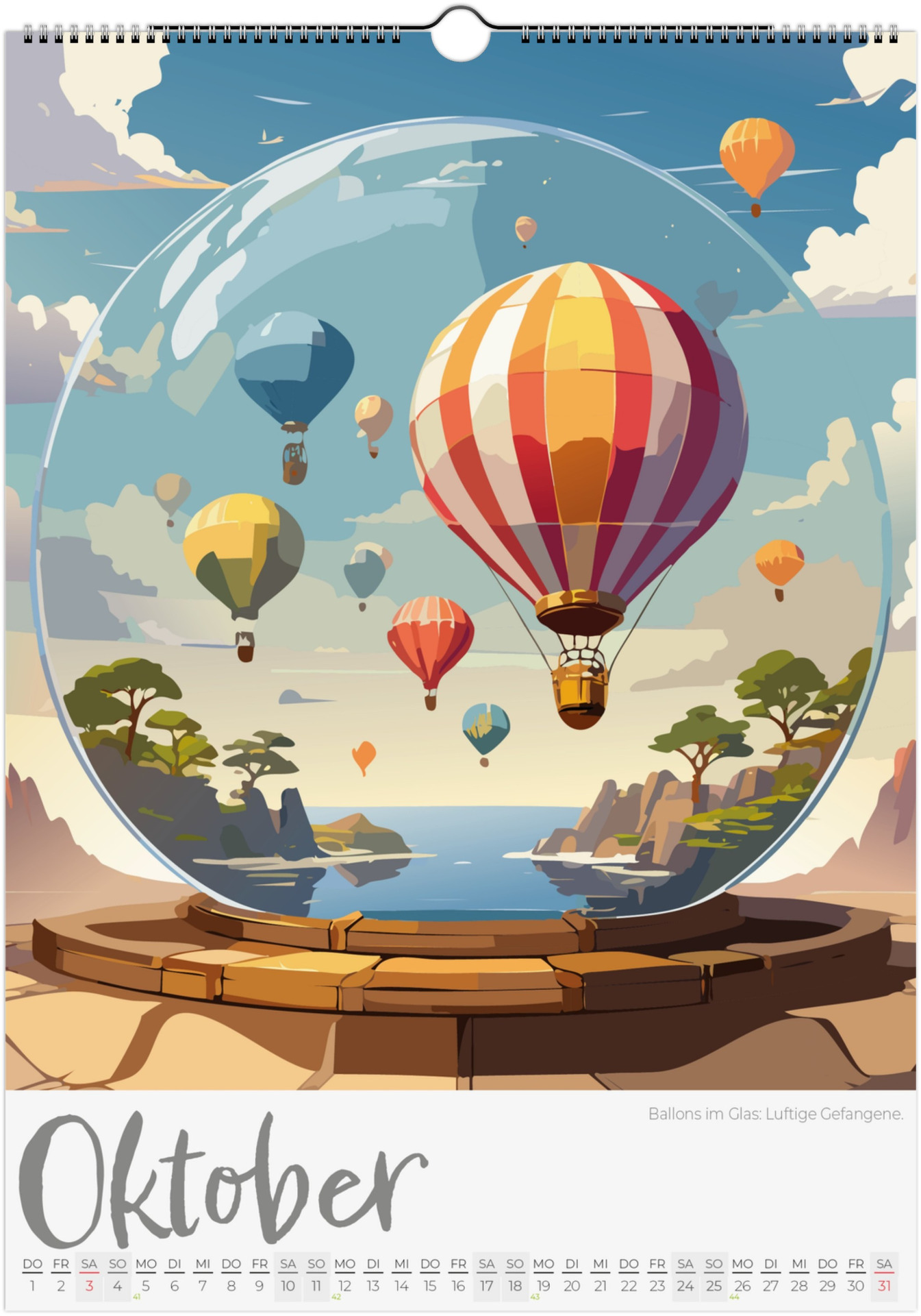 Der Wunder Welten Kalender 2026 zeigt 12 surrealistische Illustrationen mit Riesenfrüchten, absurden Szenen und künstlerischem Witz – ein echter Hingucker an jeder Wand.